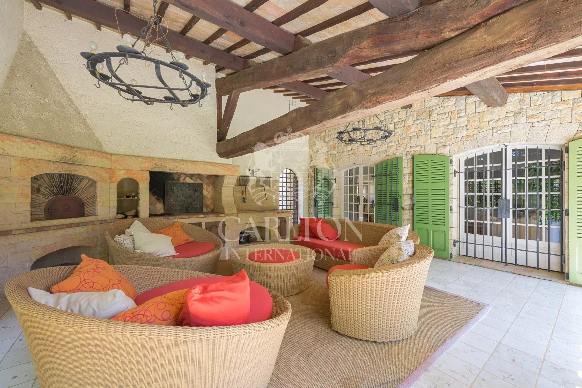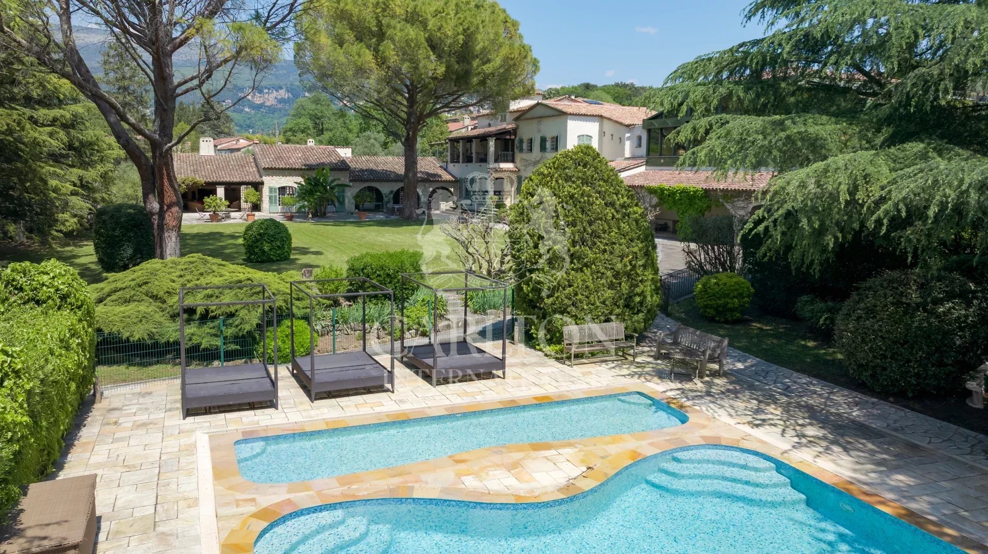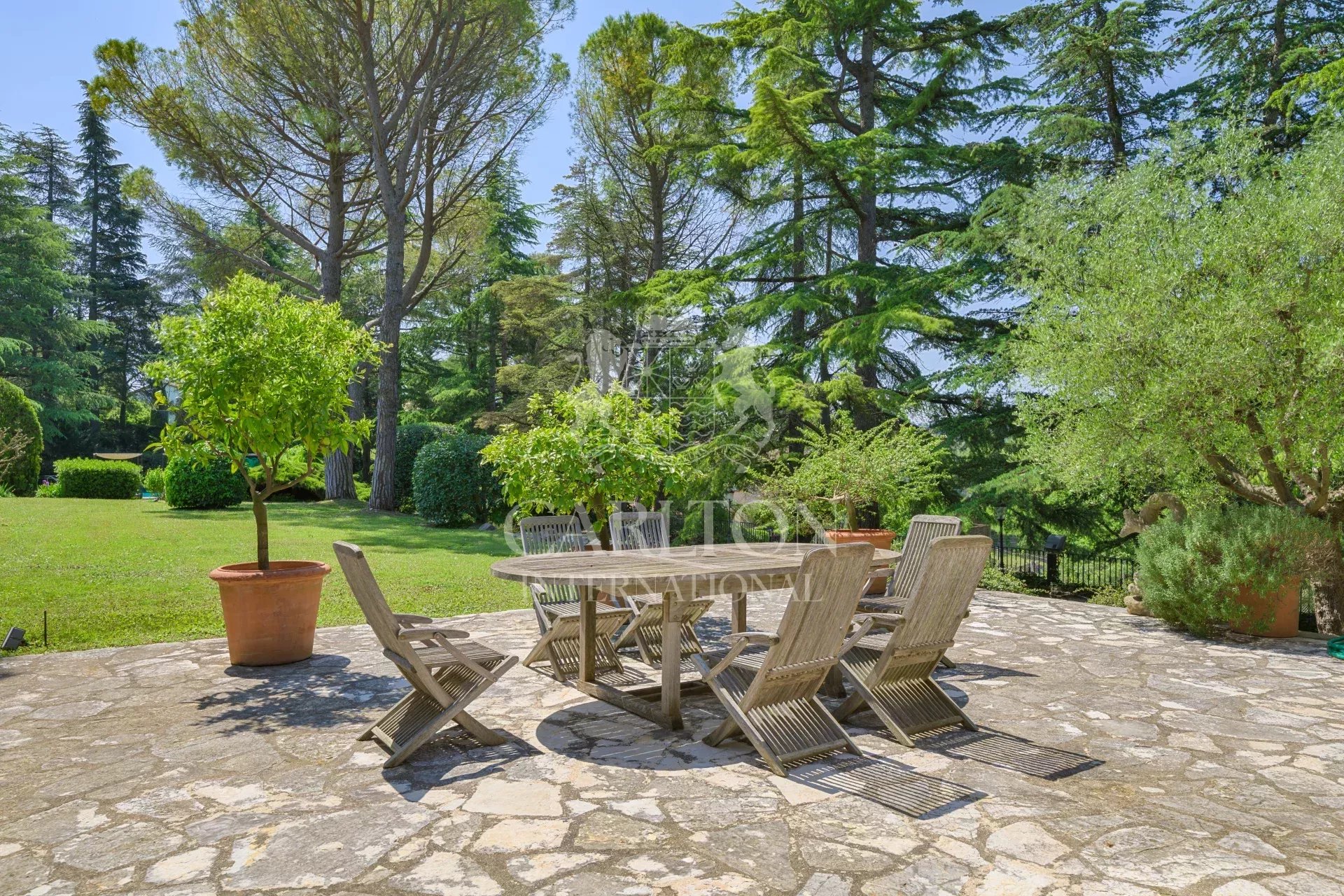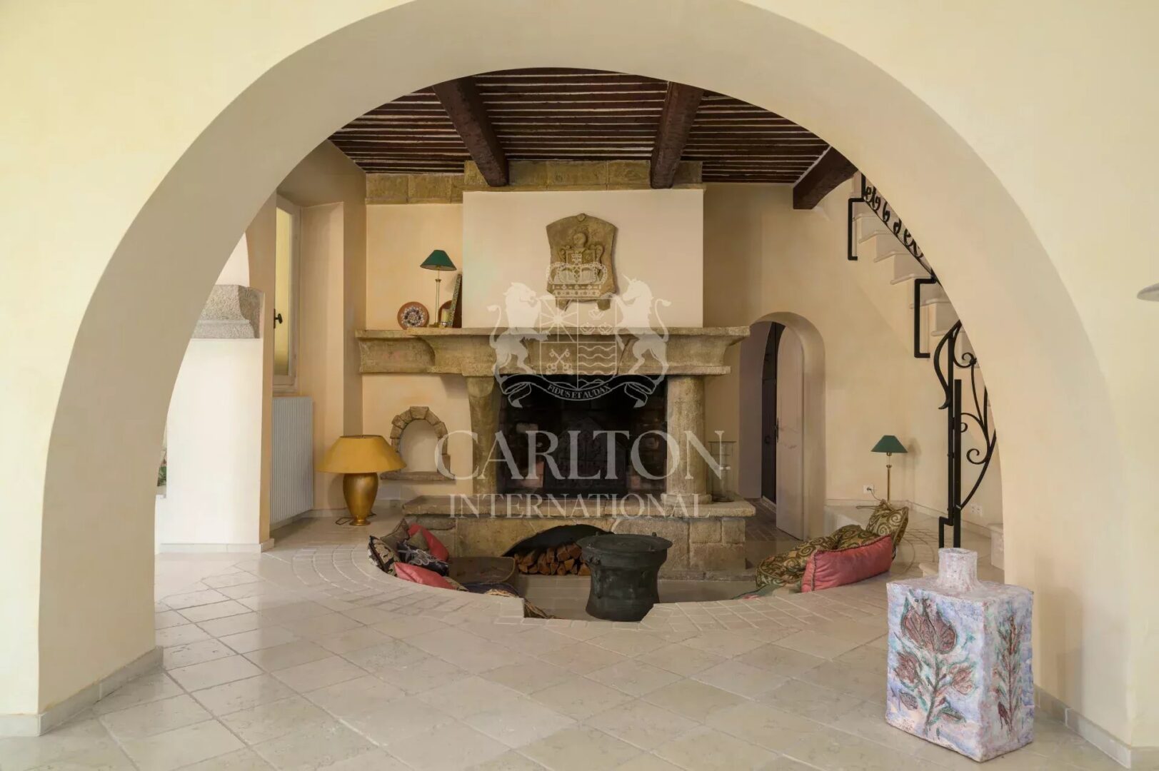 The main residence of approx. 650 m² opens onto an entrance hall with fireplace, leading to a kitchen, wine cellar, utility room, lounge and dining room with mezzanine. A covered terrace with summer kitchen completes this convivial living space. Two staircases lead up to the first floor, where there is a large orangery with kitchen, an indoor swimming pool, a sauna, a master suite with terrace, three further bedrooms and two bathrooms. The second floor has a bedroom and bathroom.