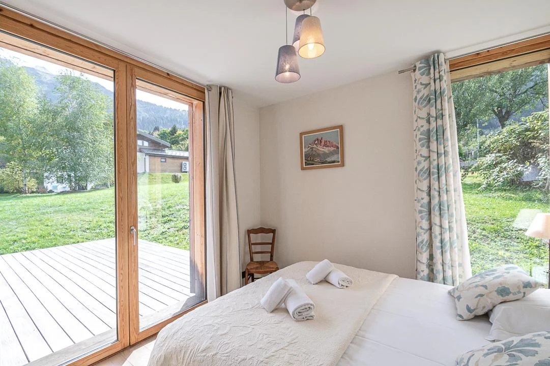 Very nice contemporary chalet, located at only 200 meters away from the Prarion slopes, in the resort of Les Houches. Its large garden of 1 500sq.m with terrace offers you a splendid view on the Mont-Blanc chain.