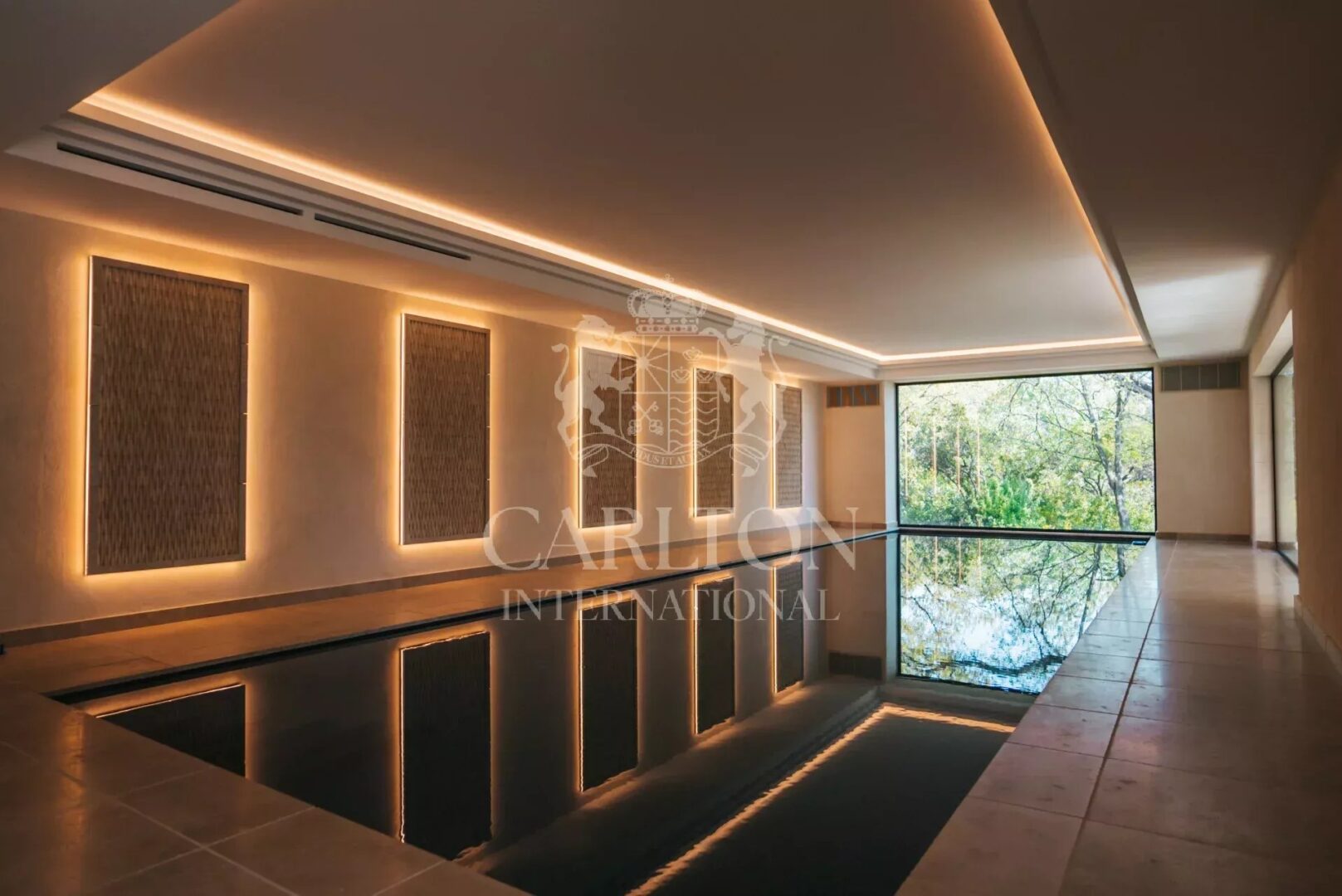 This unique estate is located in a quiet residential area close to the village of Saint Paul de Vence, in the heart of a 4-hectare park with views as far as the sea. The property is just 15 minutes by car from Nice airport, and 35 minutes from Monaco and Cannes. Accommodating up to 14 guests, the property has 7 comfortable bedrooms, including 2 master suites. Built on 3 levels, the property has been fully renovated with luxurious features and offers its guests top-of-the-range amenities such as an incredible heated indoor swimming pool, a cinema room, etc. The reception rooms open onto a vast, fully landscaped garden; staircases lead up to an imposing swimming pool, the pool house, its summer kitchen and the tennis court. A couple of janitors living in an adjoining house will be on hand to provide dedicated service and make your stay unforgettable. Ref 794