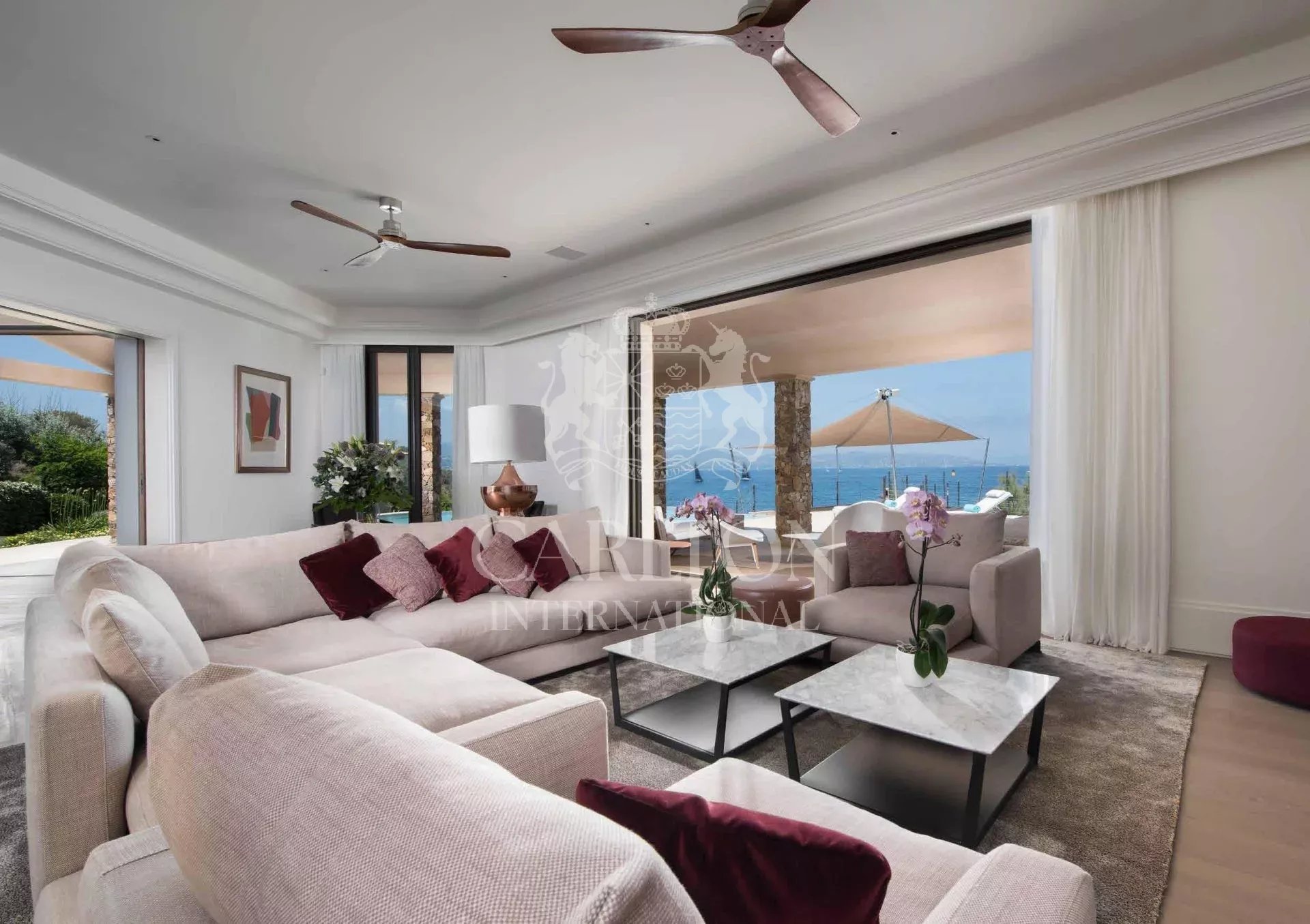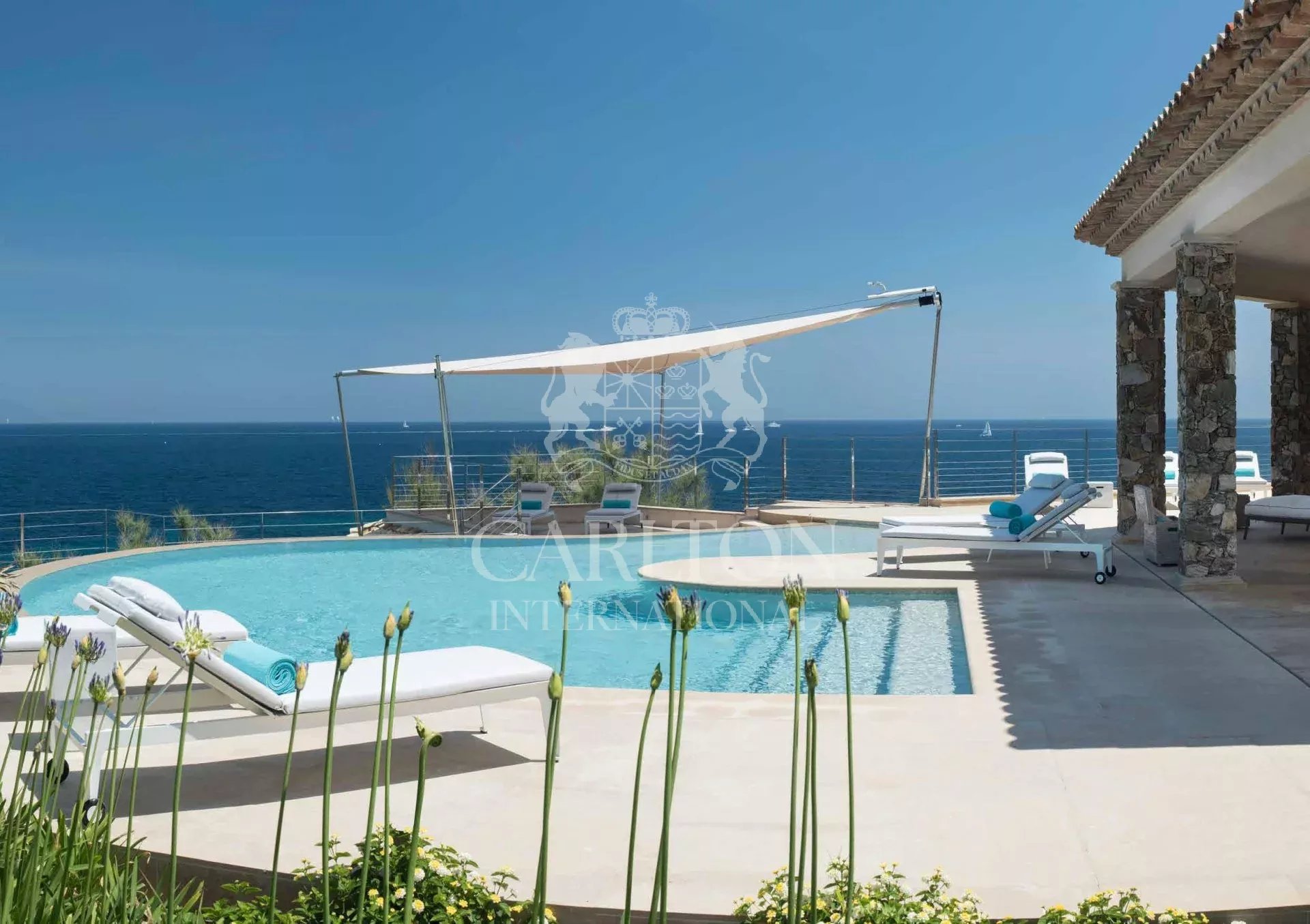 Saint Tropez’s stunning new water front property located in Saint Tropez’s most prestigious private domain, Les Parcs, and is complete with a designer kitchen, bespoke furniture and fine art. This alluring and entrancing villa is designed with only the most luxurious of materials and boasts extensive covered terraces, breathtaking views, a heated infinity swimming pool, direct access to the sea and state of the art security.
