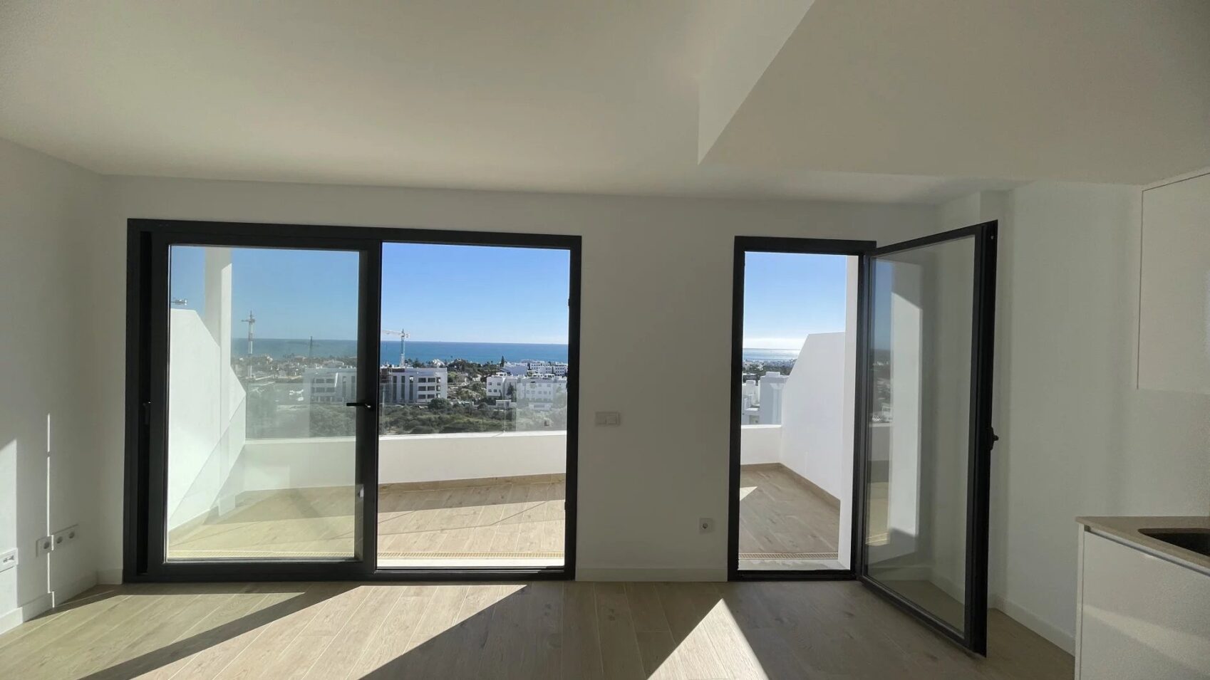 Step into your new home in the exclusive One80 Suites development in La Gaspara, Estepona West, where every corner of this first-floor, 3-bedroom, 2-bathroom apartment offers a view to take your breath away. From the moment you enter, you’ll be drawn to the open-plan living and dining area, flooded with natural light and flowing seamlessly onto a spacious terrace that overlooks the Mediterranean Sea—a perfect setting for morning coffee, sunset drinks, or entertaining friends.