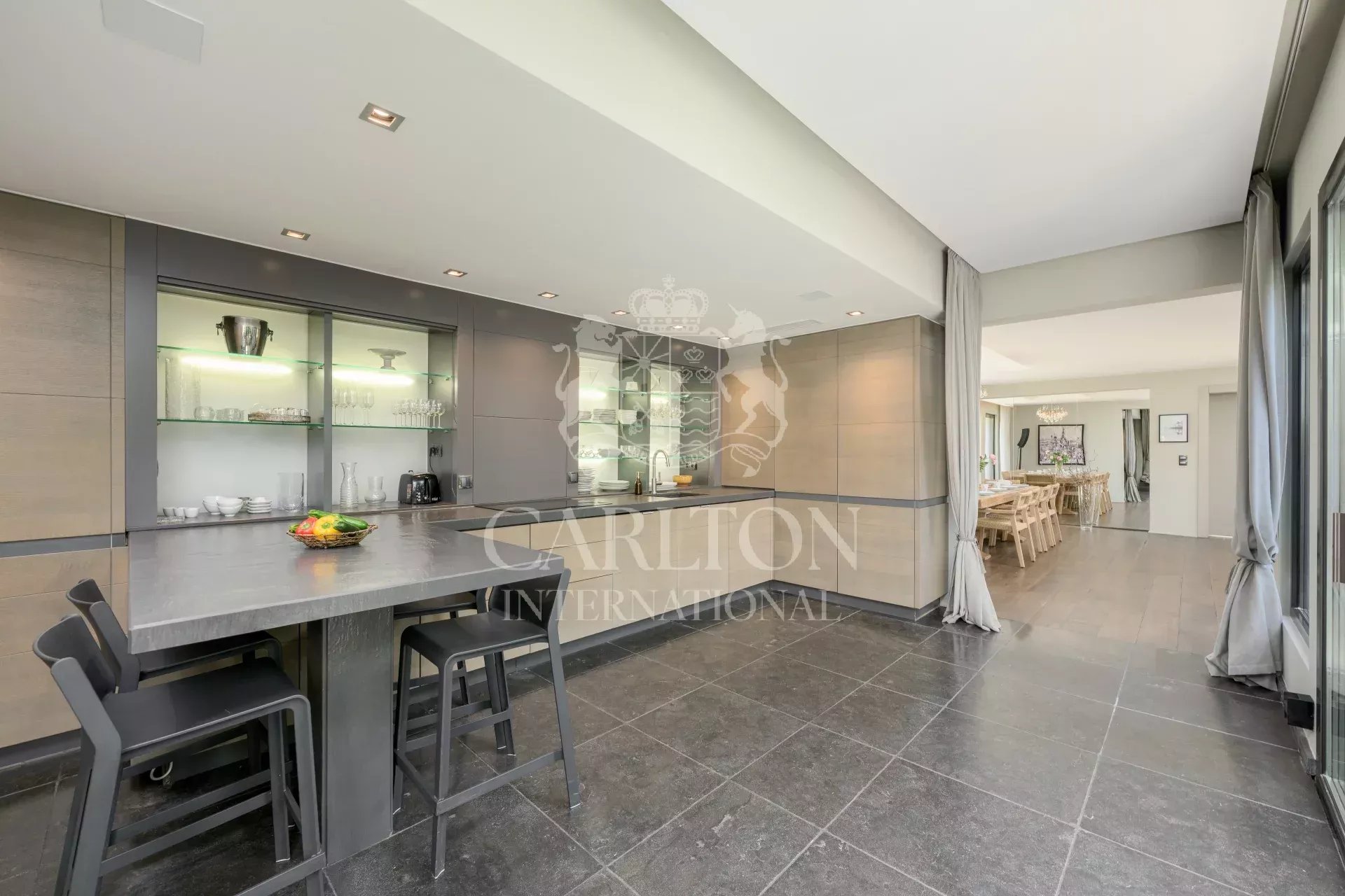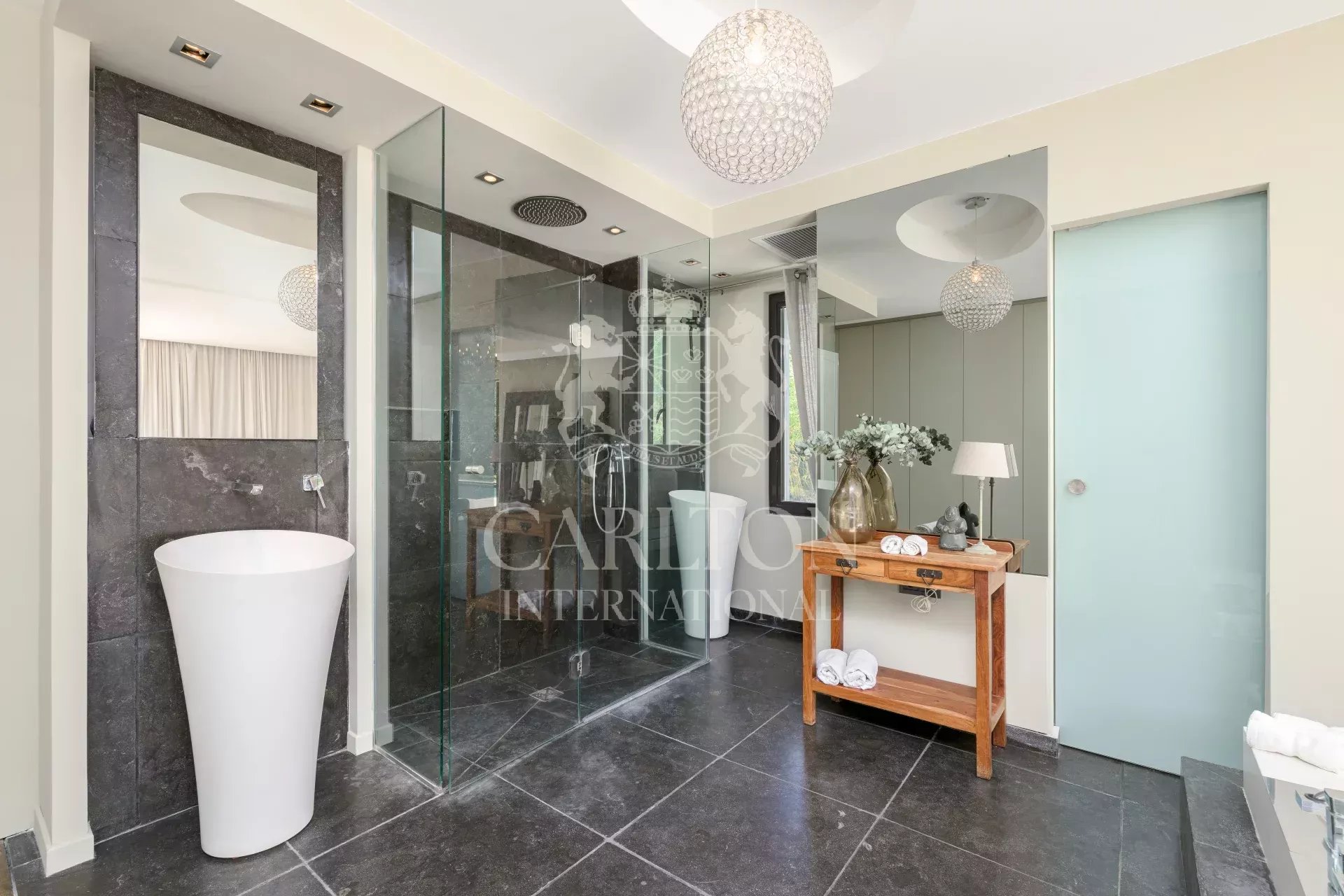 Covering an area of 300 m², this generously proportioned villa features a vast, light-filled living room with open-plan kitchen, and four bedrooms, each with its own private shower room. One of the bedrooms, on the first floor, opens onto a terrace. Nestled in 1,538 m² of landscaped grounds, this property combines elegance and comfort for an incomparable living experience on the Côte d’Azur.