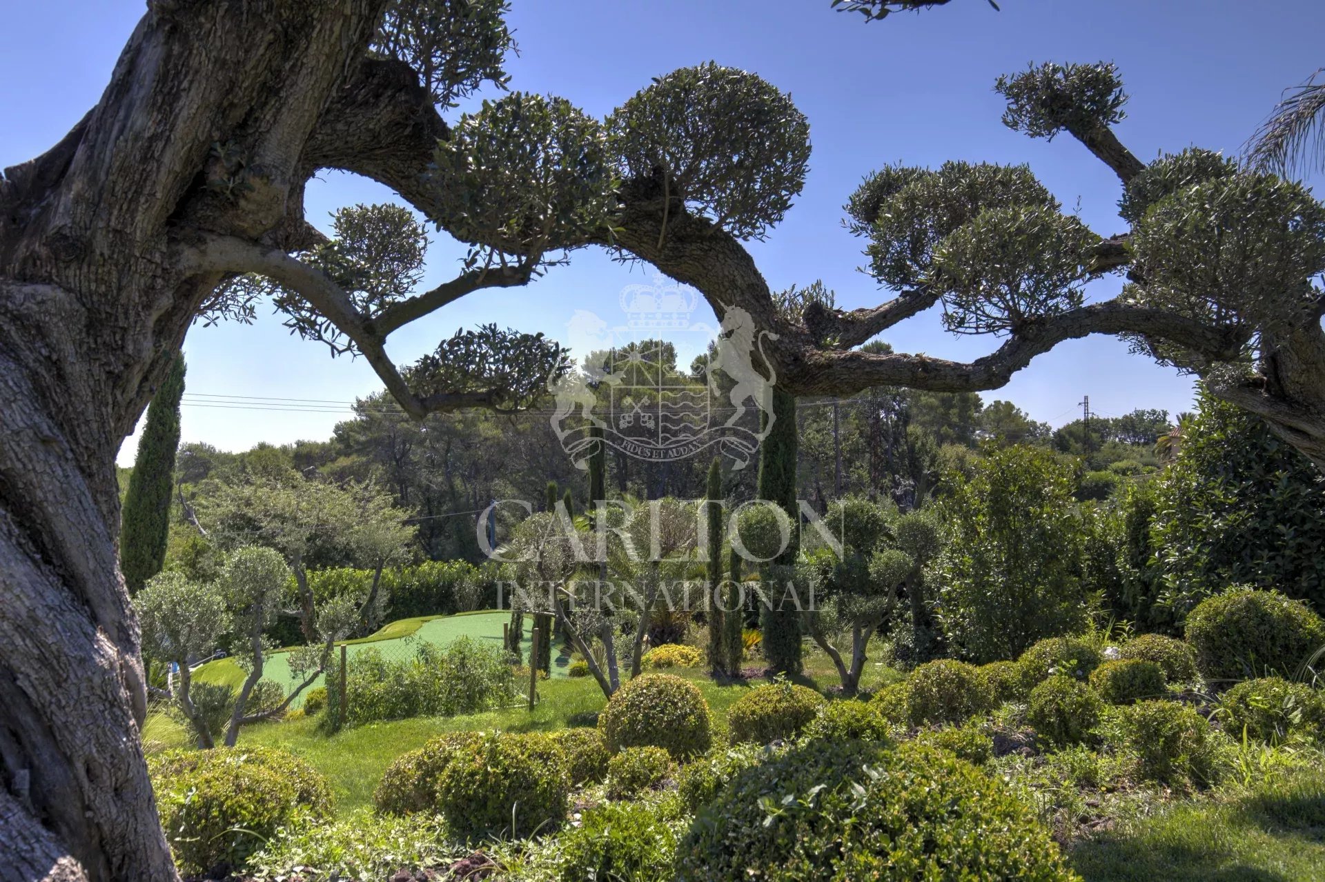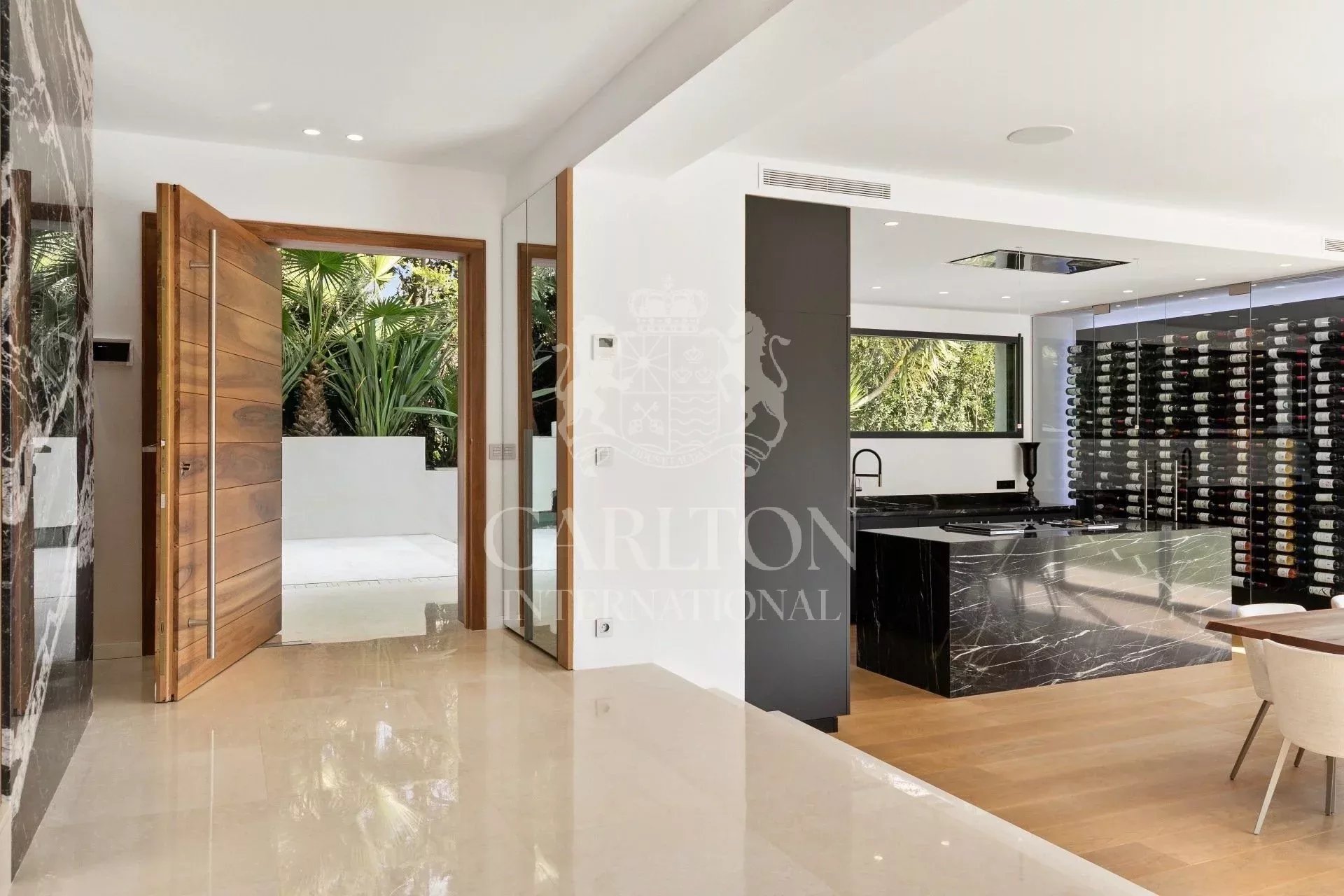 In the heart of one of Mougins’ most sought-after areas, set in a quiet, leafy setting, this magnificent 550 m2 property boasts spacious rooms, a top-of-the-range kitchen with wall-mounted wine cellar, a spacious living room, 5 ensuite bedrooms with dressing rooms and marble bathrooms. There’s also a gym with hammam and sauna, a cinema room, a janitor’s apartment and a large garage.