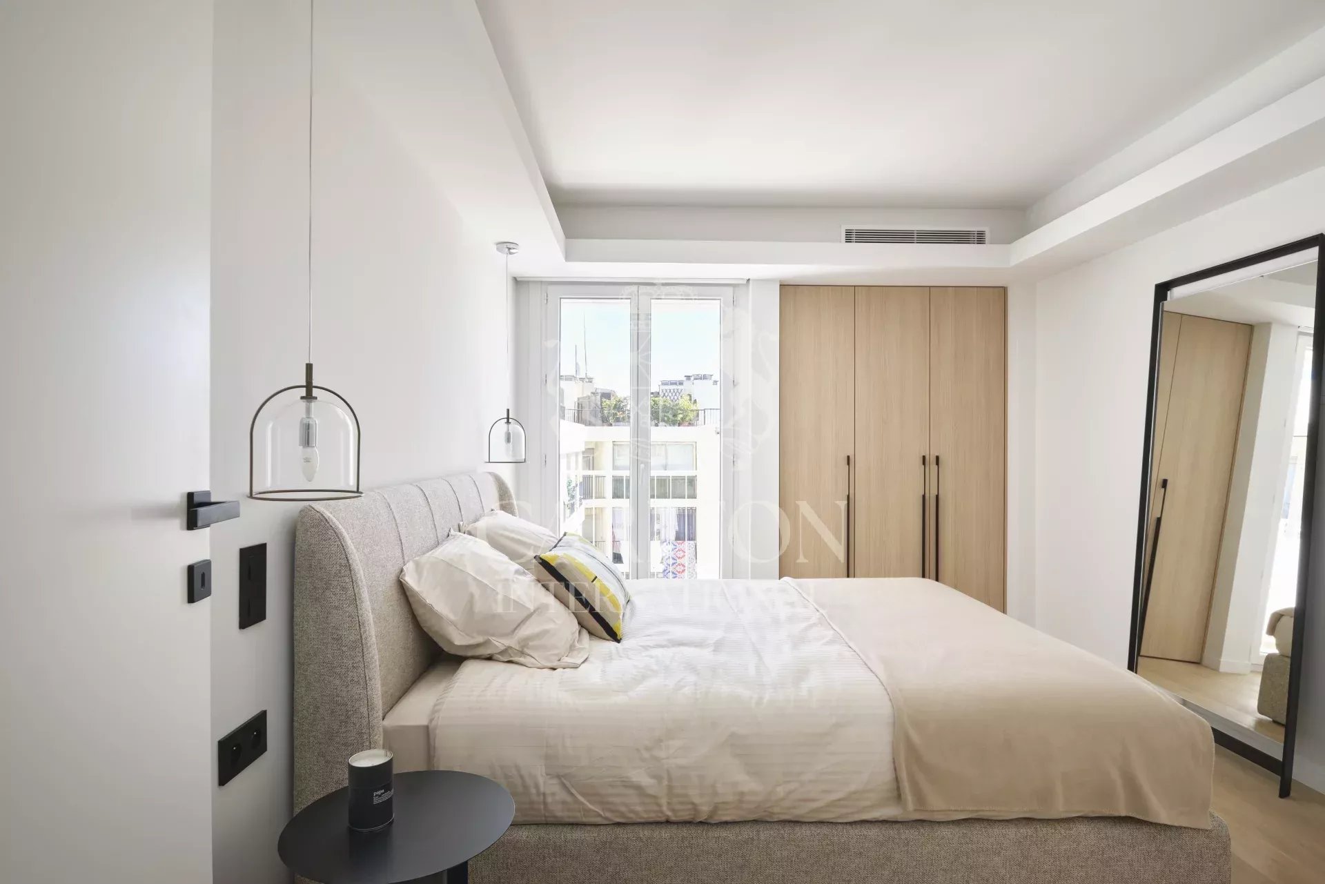 In a luxury residence on the Croisette, near Port Canto, this superb 4-room flat of around 110m2 has been completely refurbished with high-end materials and offers a superb panoramic view over the bay of Cannes to the Esterel.