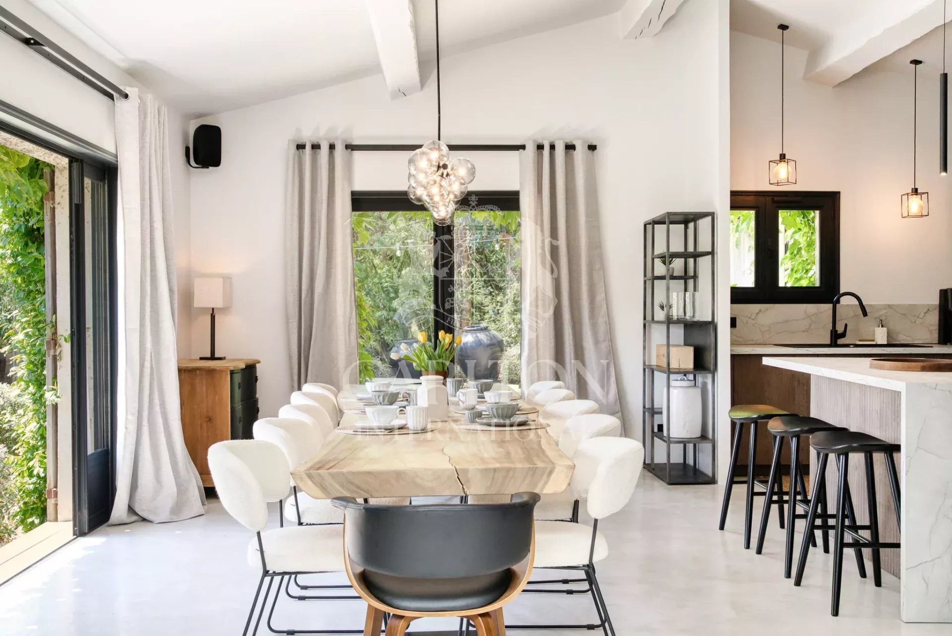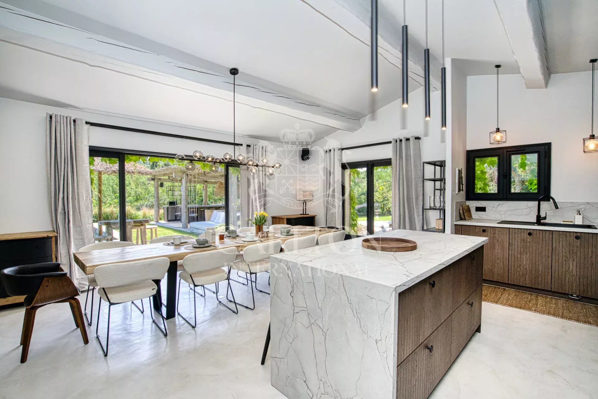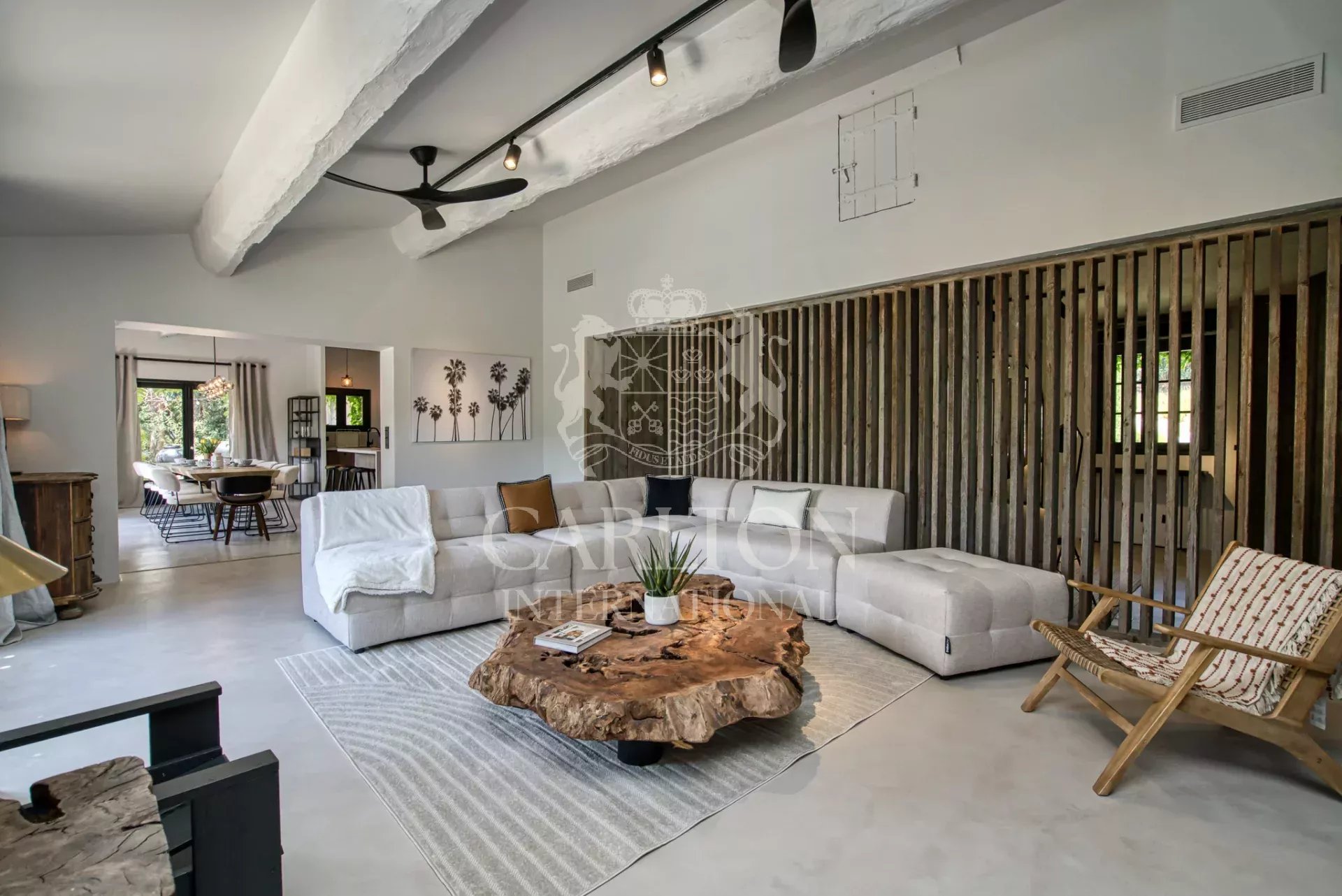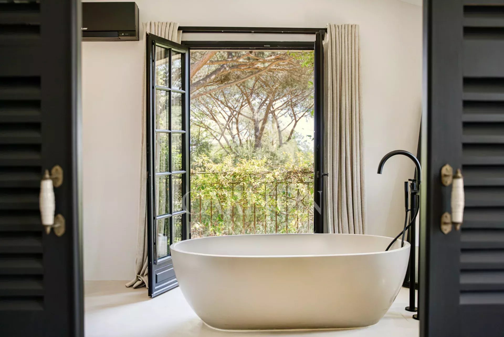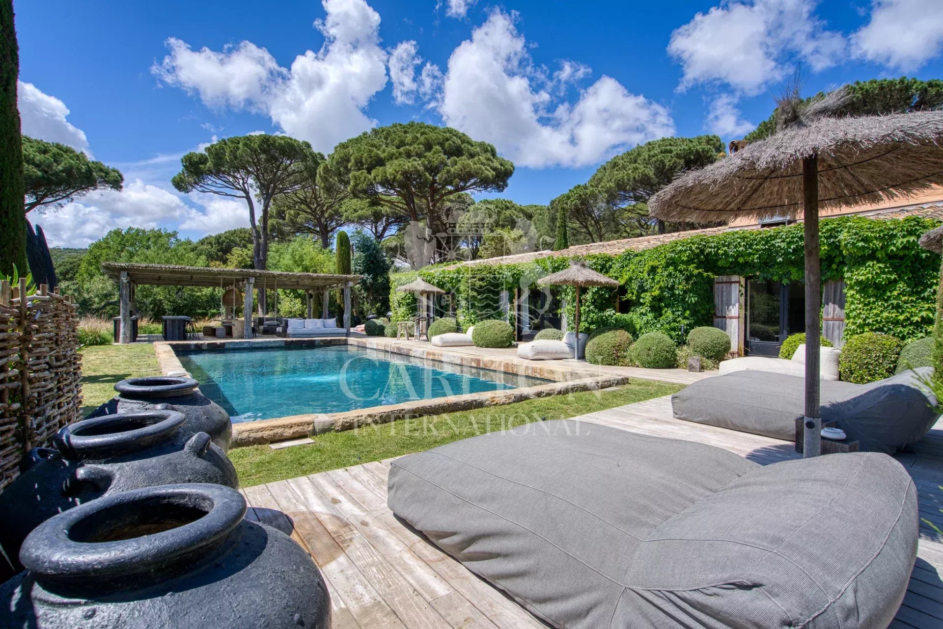 Ramatuelle – Nestled between vineyards and hills, this beautifully decorated 350 m² villa is set in 6,000 m² of landscaped grounds.