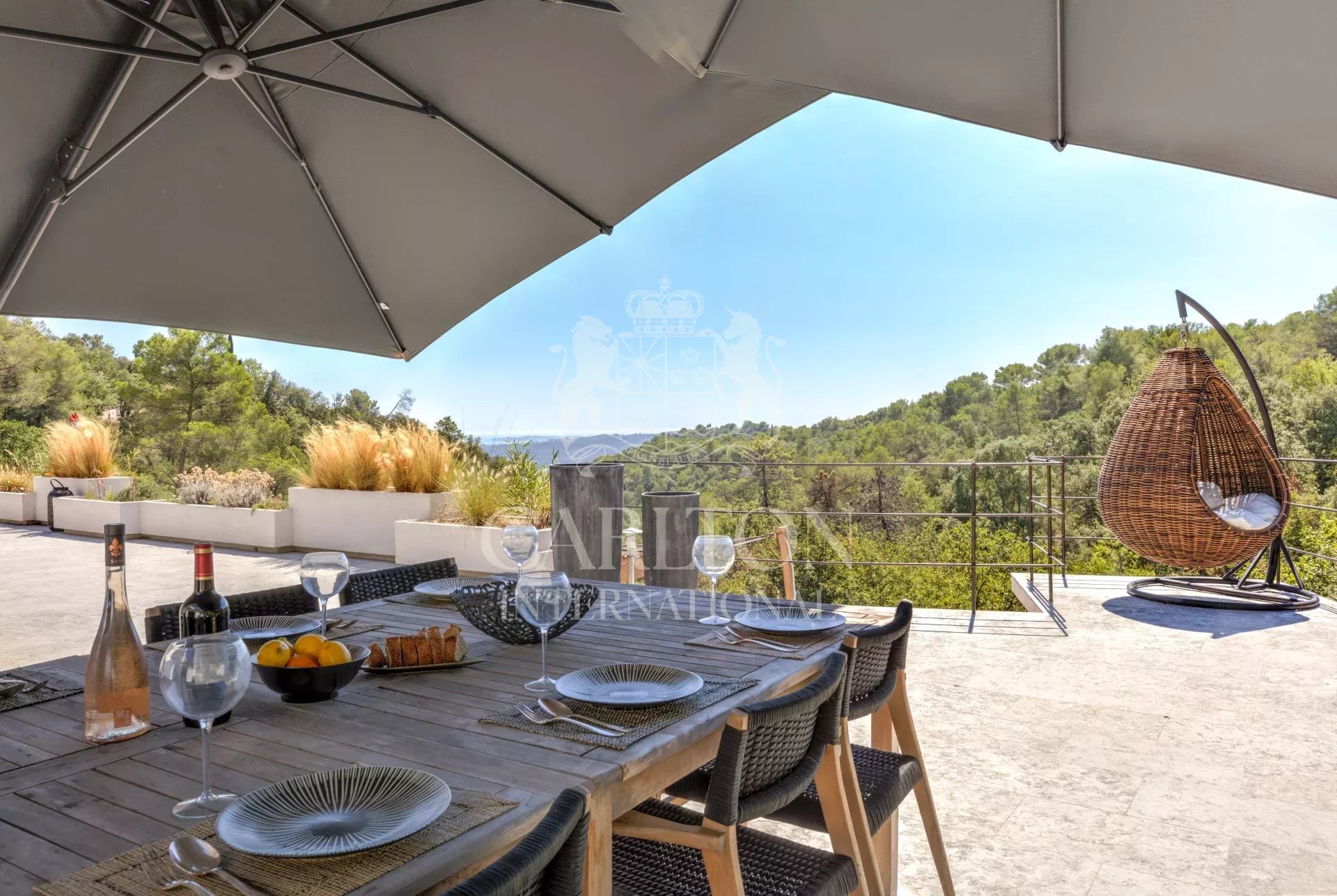 A true haven of peace, this 300m2 neo-Provençal-style villa nestled between sea and forest offers a breathtaking and enchanting visual spectacle. It has 5 bedrooms and can accommodate up to 10 guests in a setting that pays tribute to the exceptional cultural environment that surrounds it. REF 912