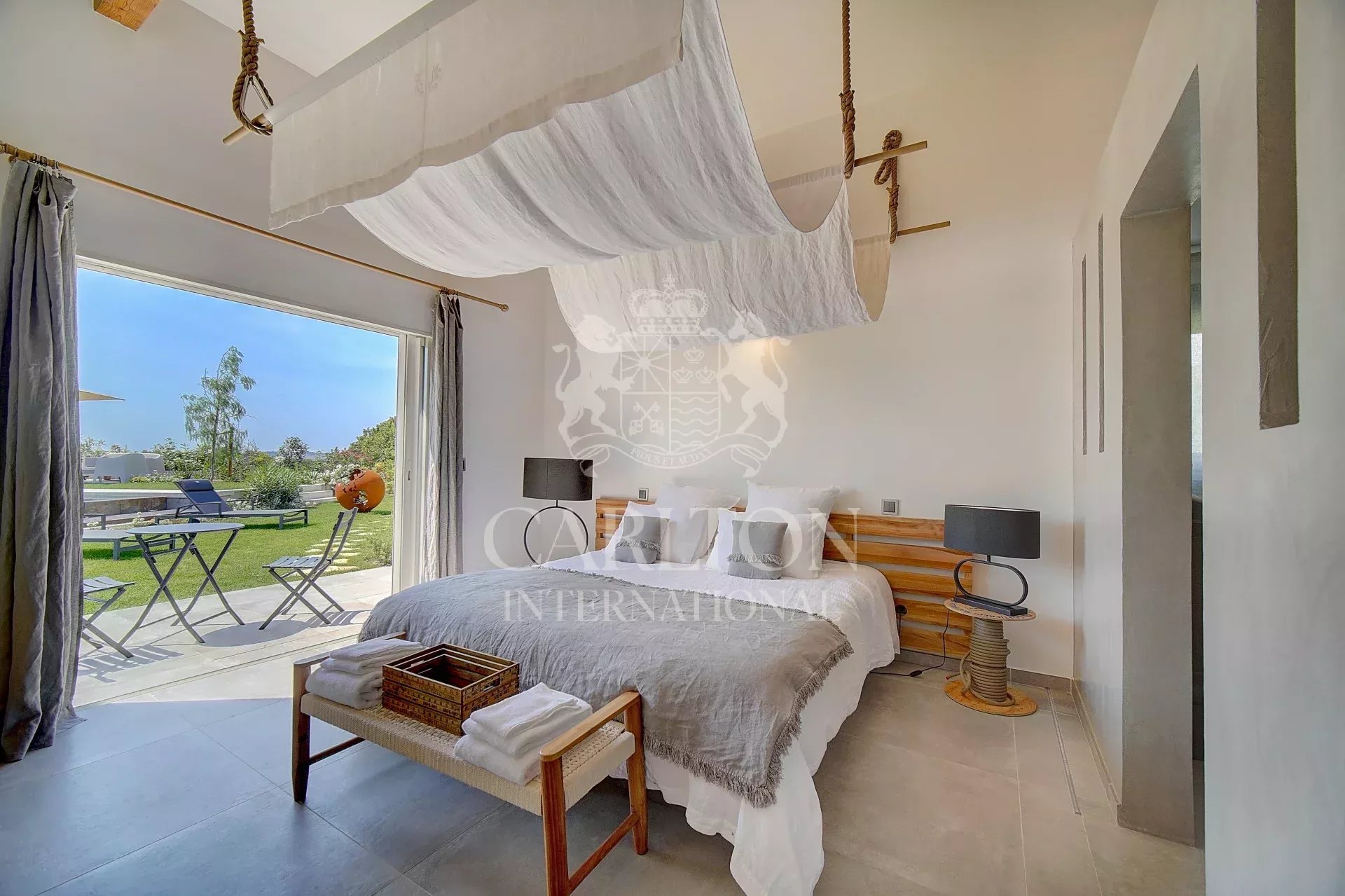 – Bedroom 4: Master suite (180 cm bed), with large dressing room, TV, shower room and WC, opening onto a private terrace with panoramic views of the sea, mountains and village.
