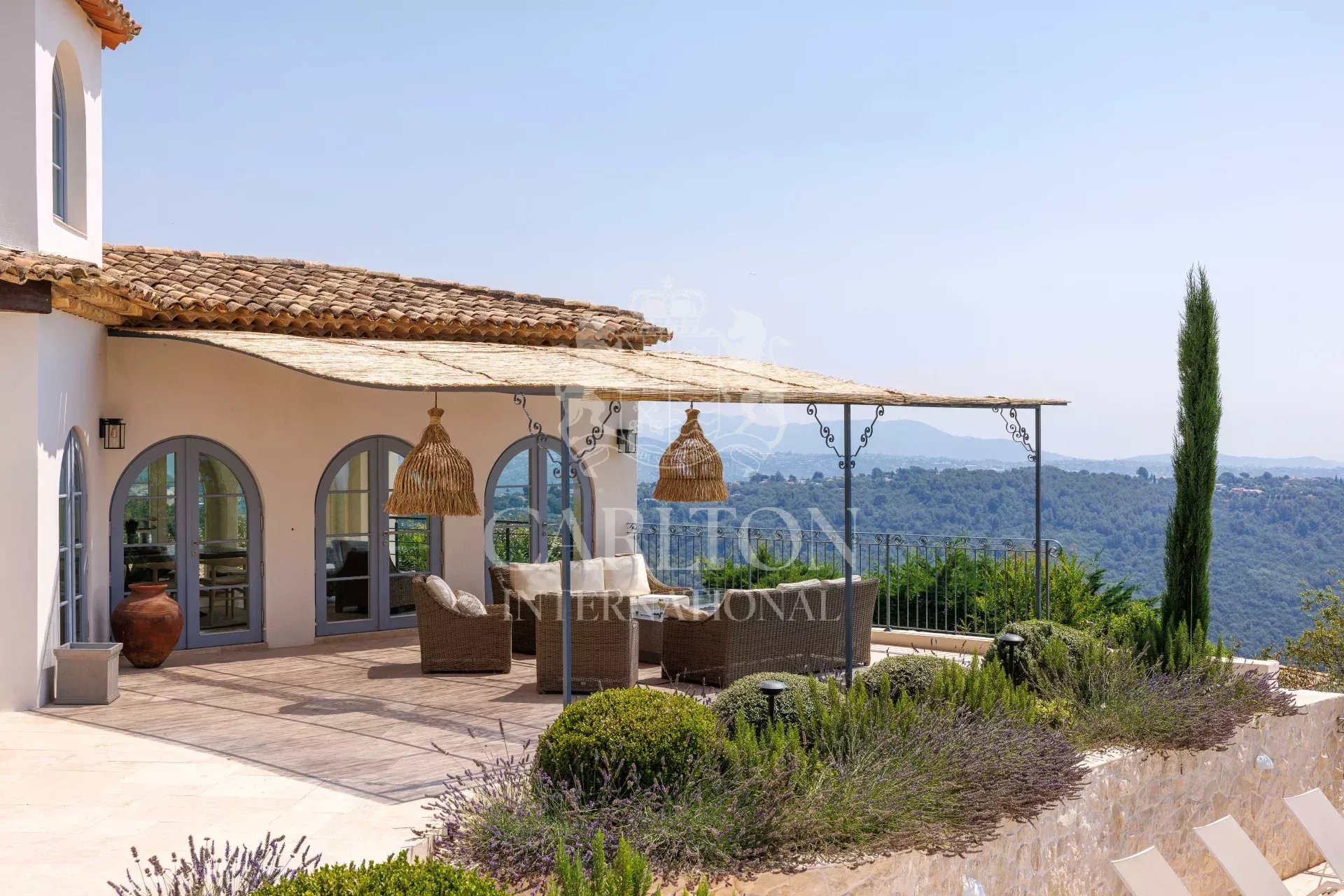 Perfectly designed to accommodate up to 12 guests, the villa offers 6 elegantly decorated bedrooms, some with terraces boasting panoramic views of the sea and mountains. This villa embodies an exclusive and peaceful lifestyle in the heart of the French Riviera.