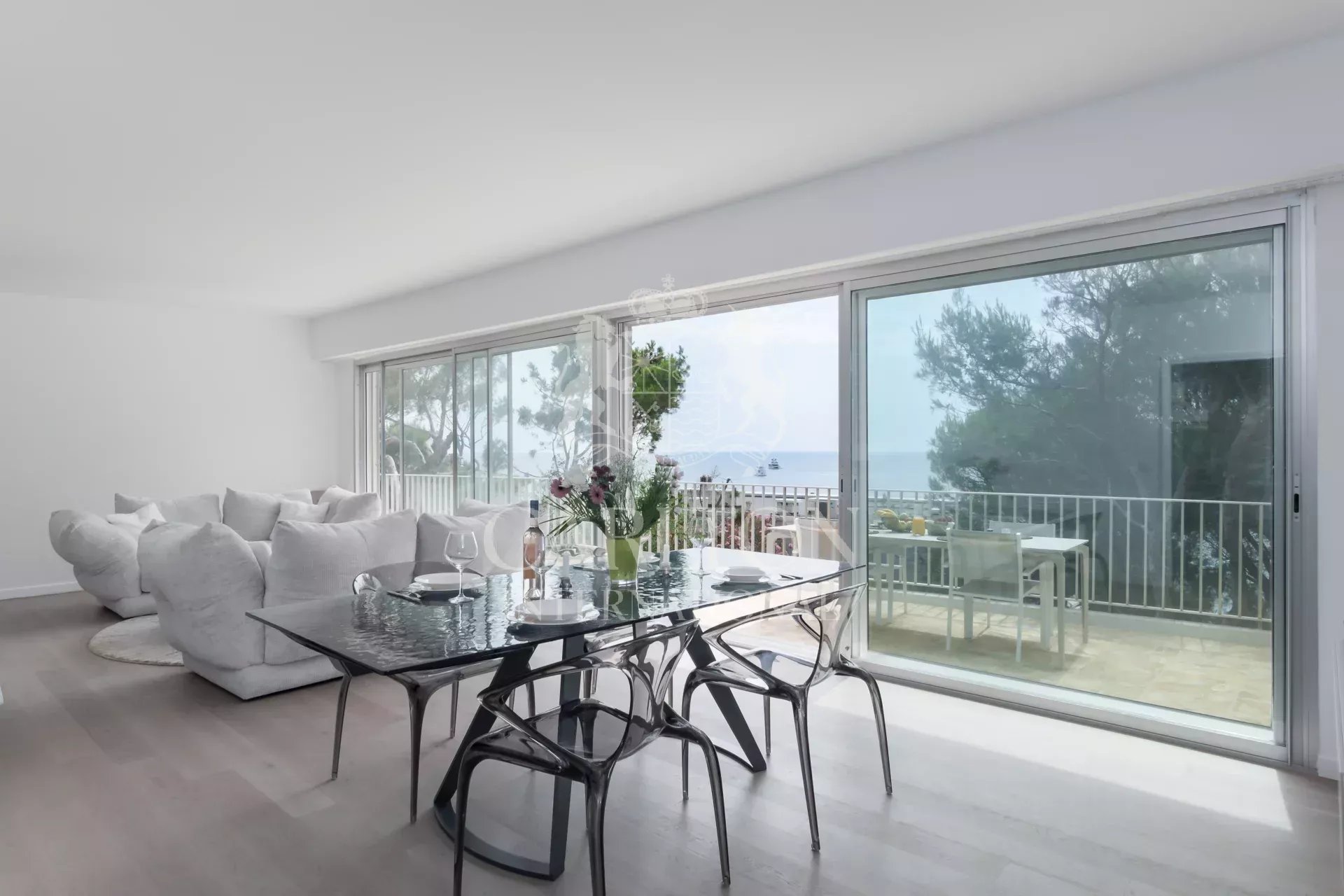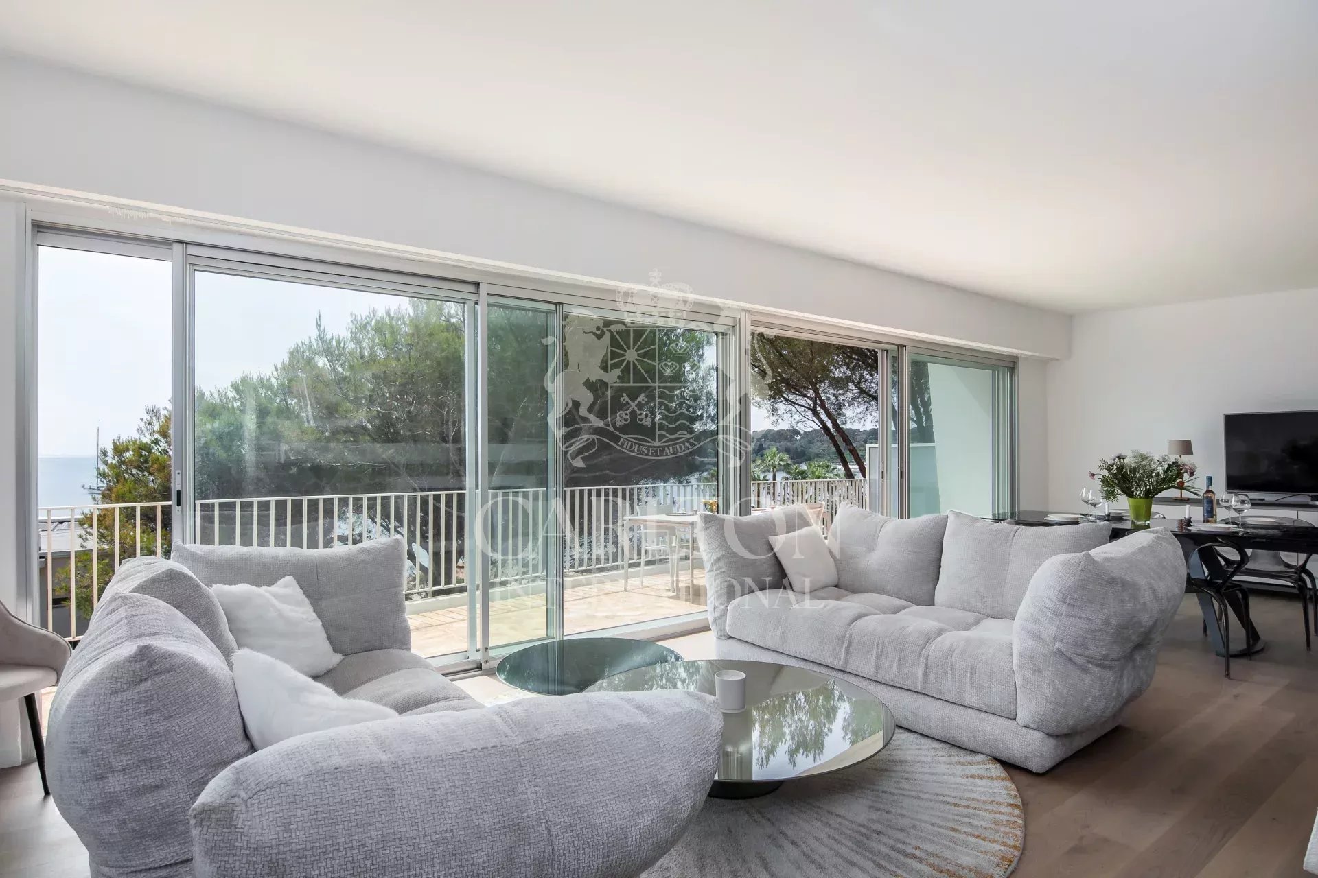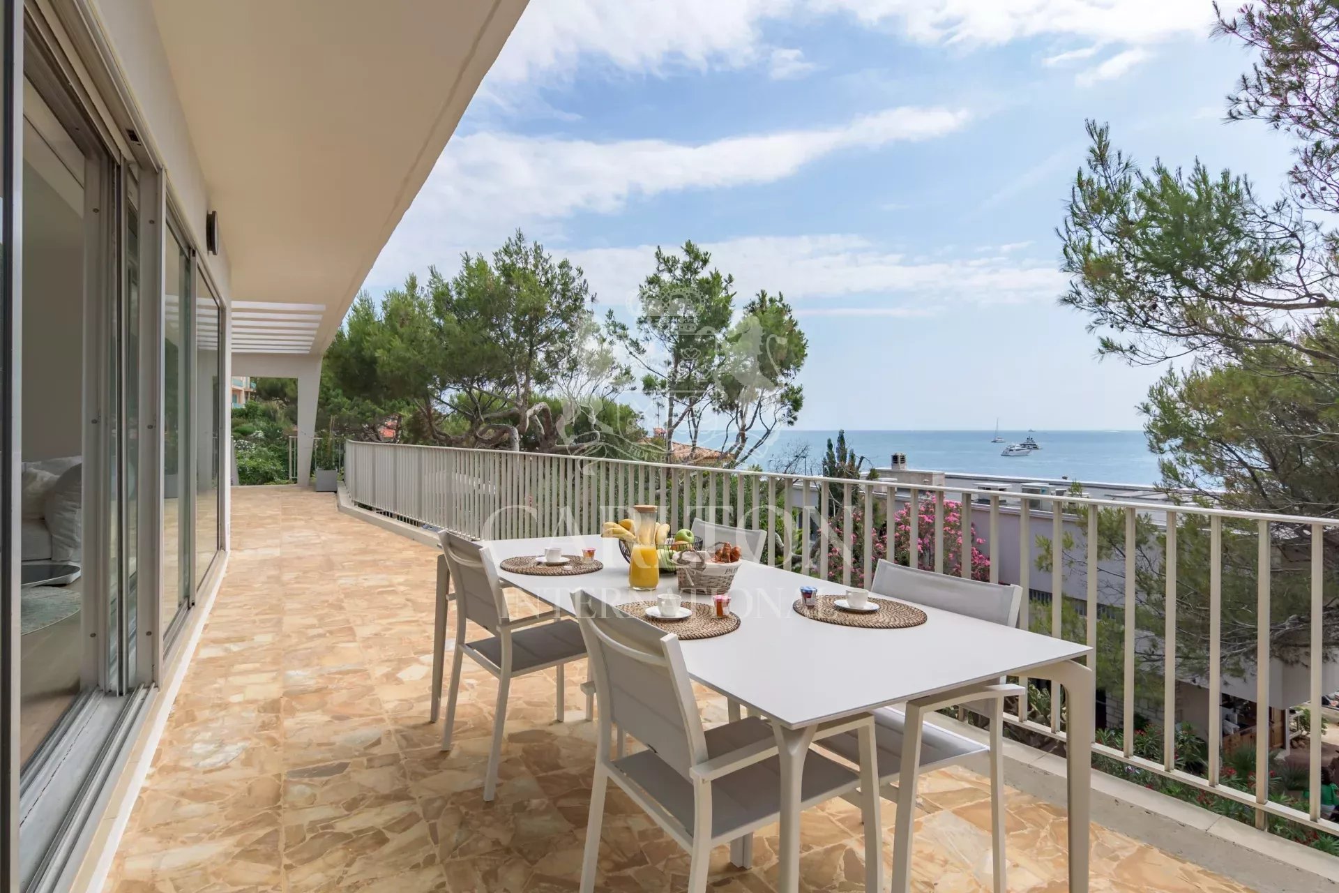 Las salas de recepción se abren a magníficas terrazas de 50 m², que ofrecen un punto de vista ideal para admirar el ballet de veleros, y proporcionan el refugio perfecto para sus vacaciones en la Costa Azul. REF 882