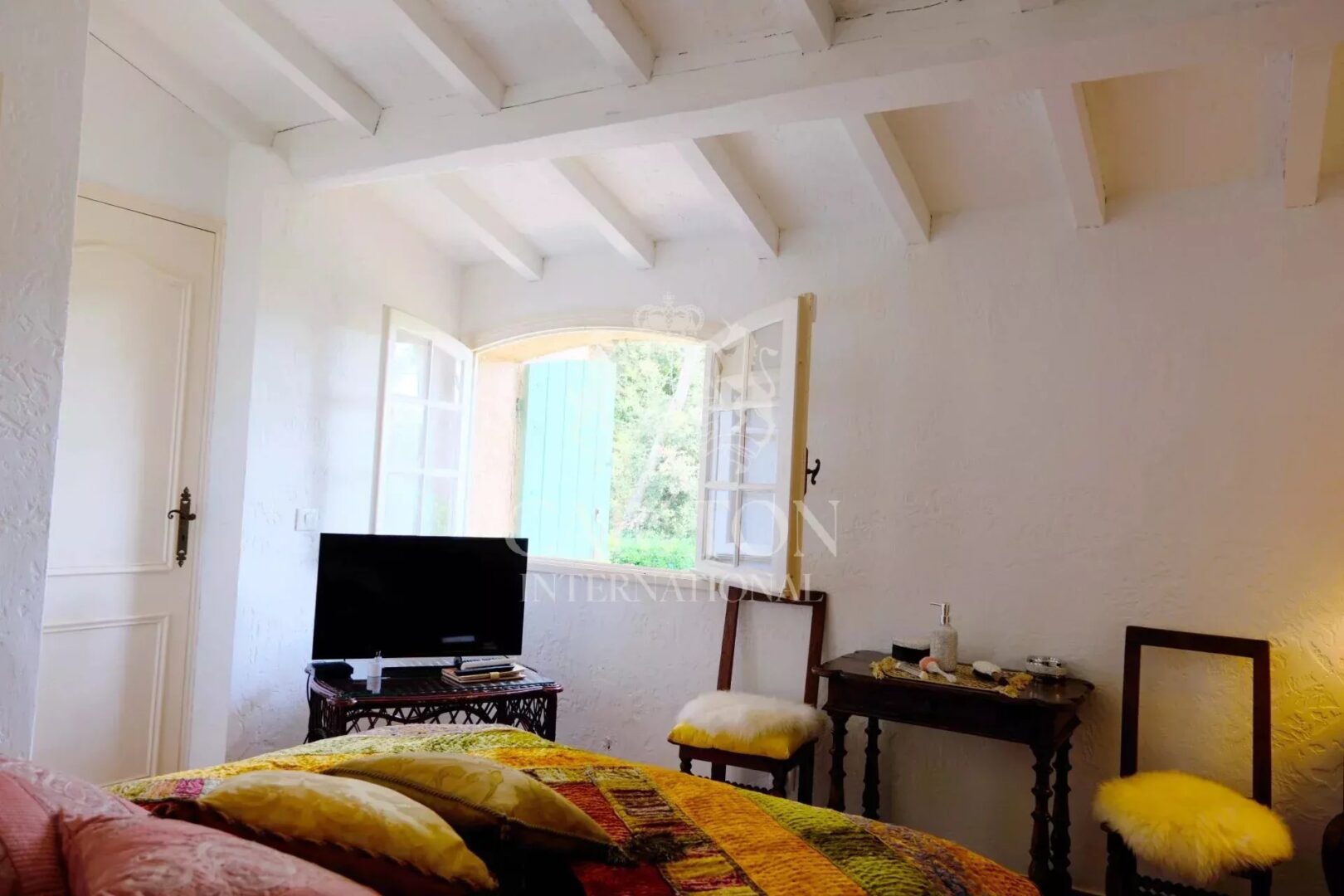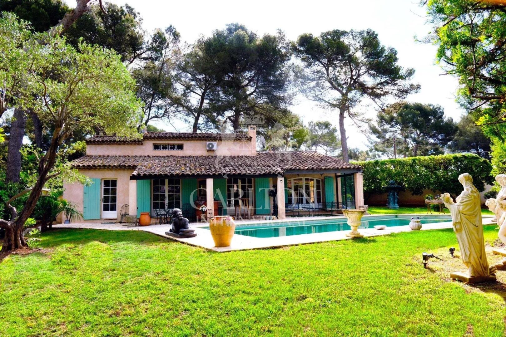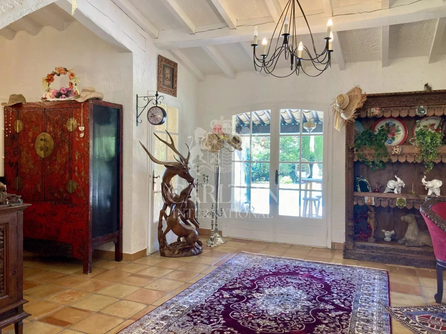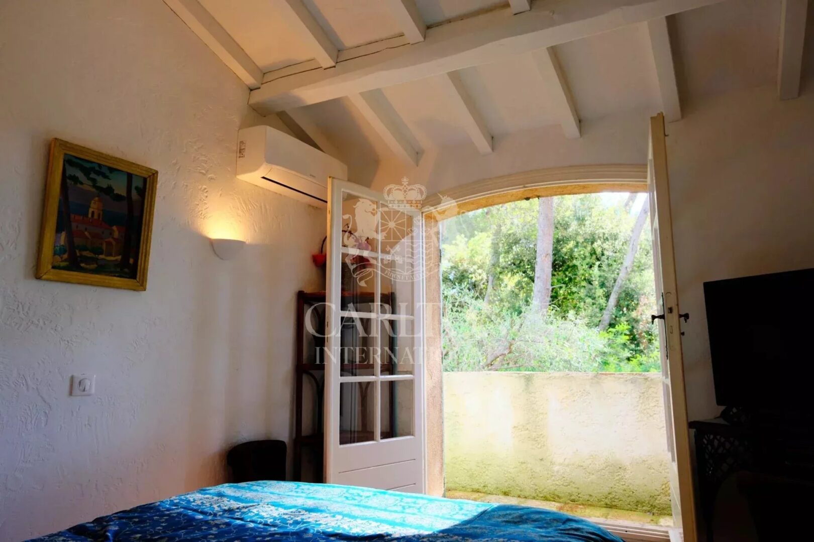 Enclavada en un entorno verde, esta elegante villa ofrece un amplio y luminoso salón, una cocina americana, tres dormitorios, uno de ellos en la planta baja, y un ambiente acogedor gracias al aire acondicionado y la chimenea.