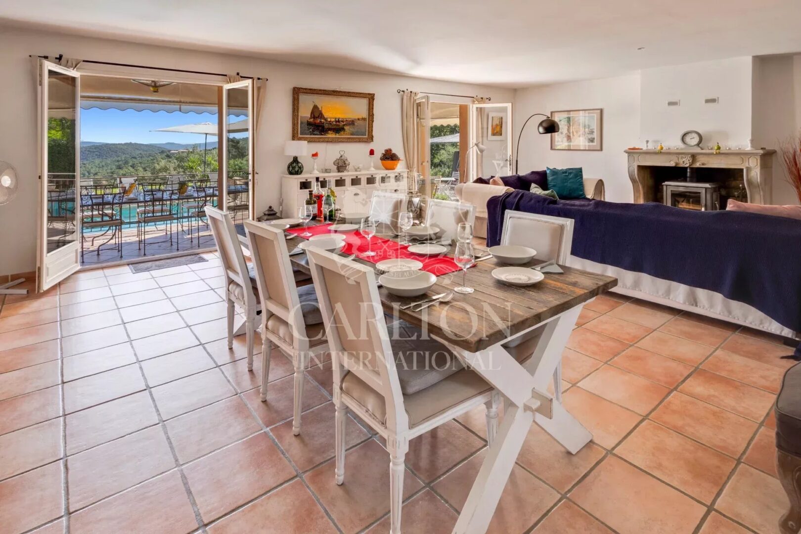 Designed for relaxation and socializing, the sparkling terraces and pool area provide an idyllic setting for long summer days in the South of France.