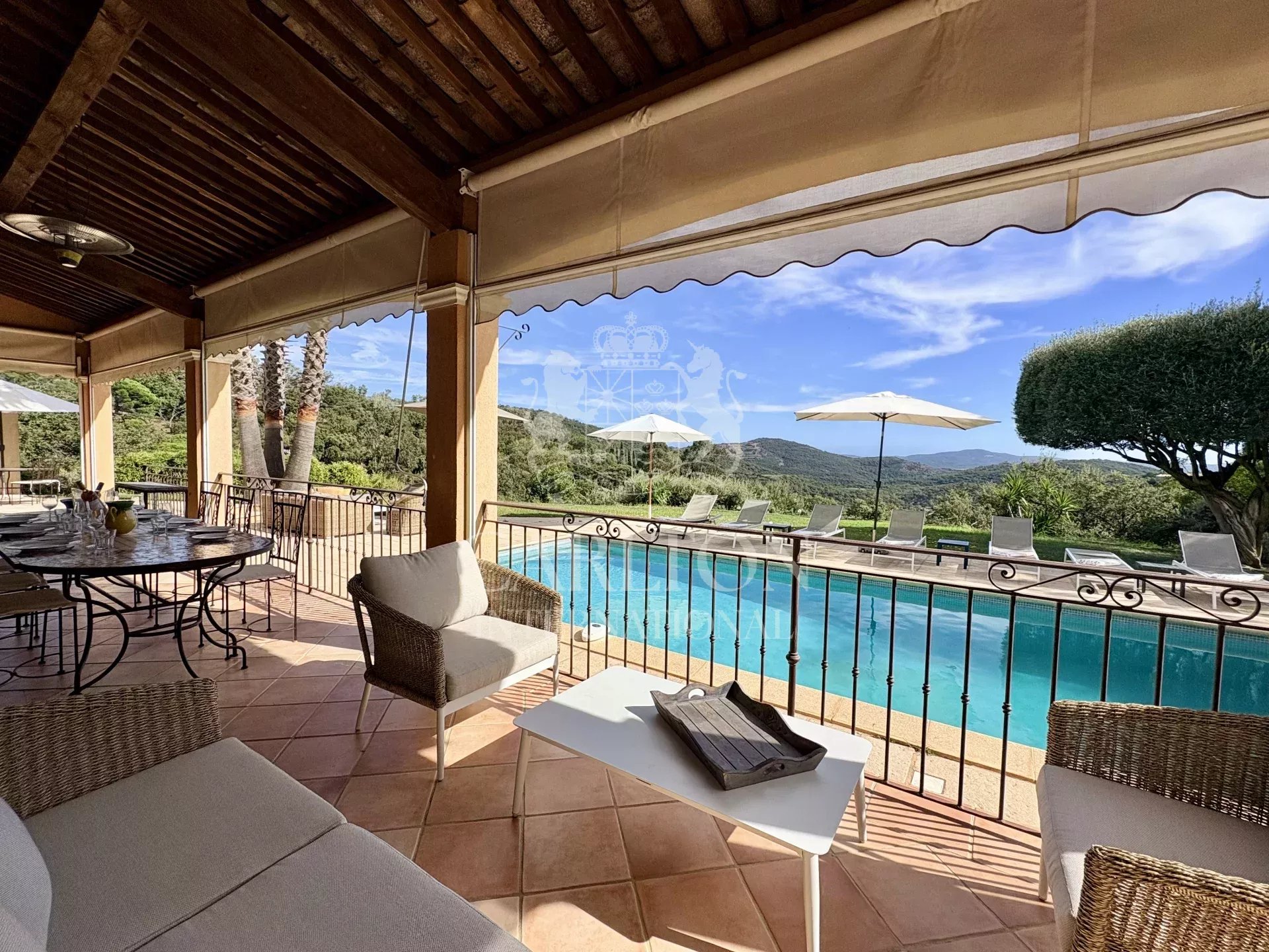 Nestled in La Garde-Freinet, this charming Provençal-style villa offers timeless elegance and breathtaking views of the surrounding countryside all the way to Grimaud Castle.