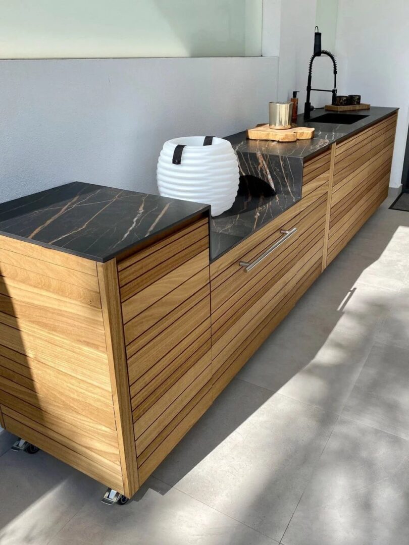 El diseño abierto y los grandes ventanales correderos ofrecen una conexión perfecta con la terraza y el jardín, creando un espacio acogedor para el relax y el entretenimiento.