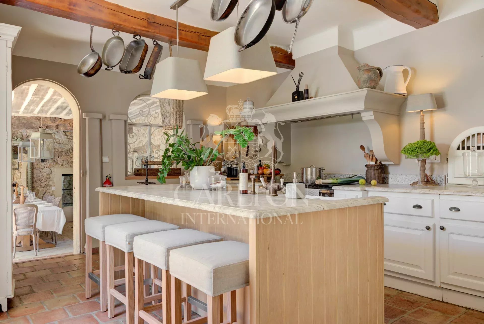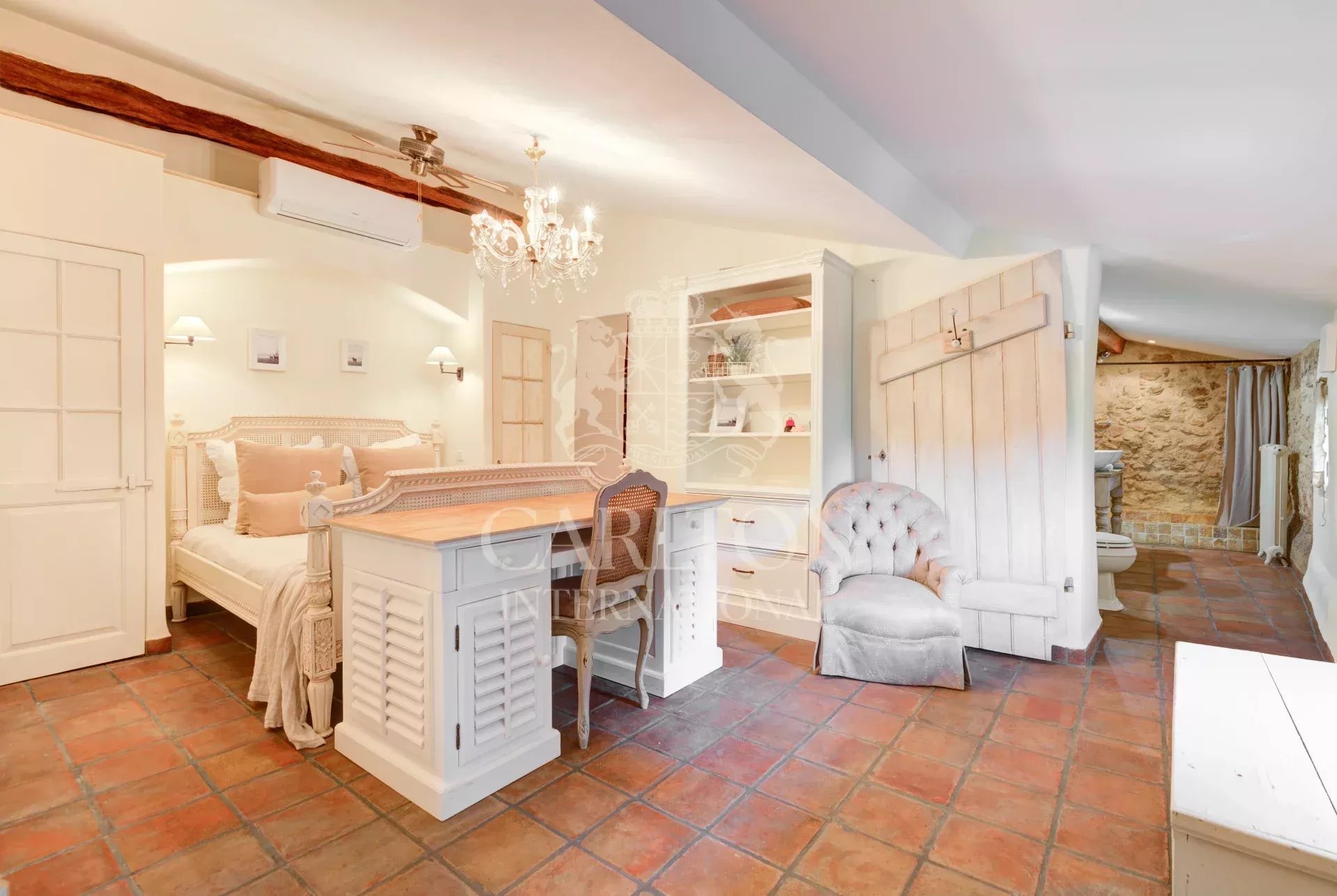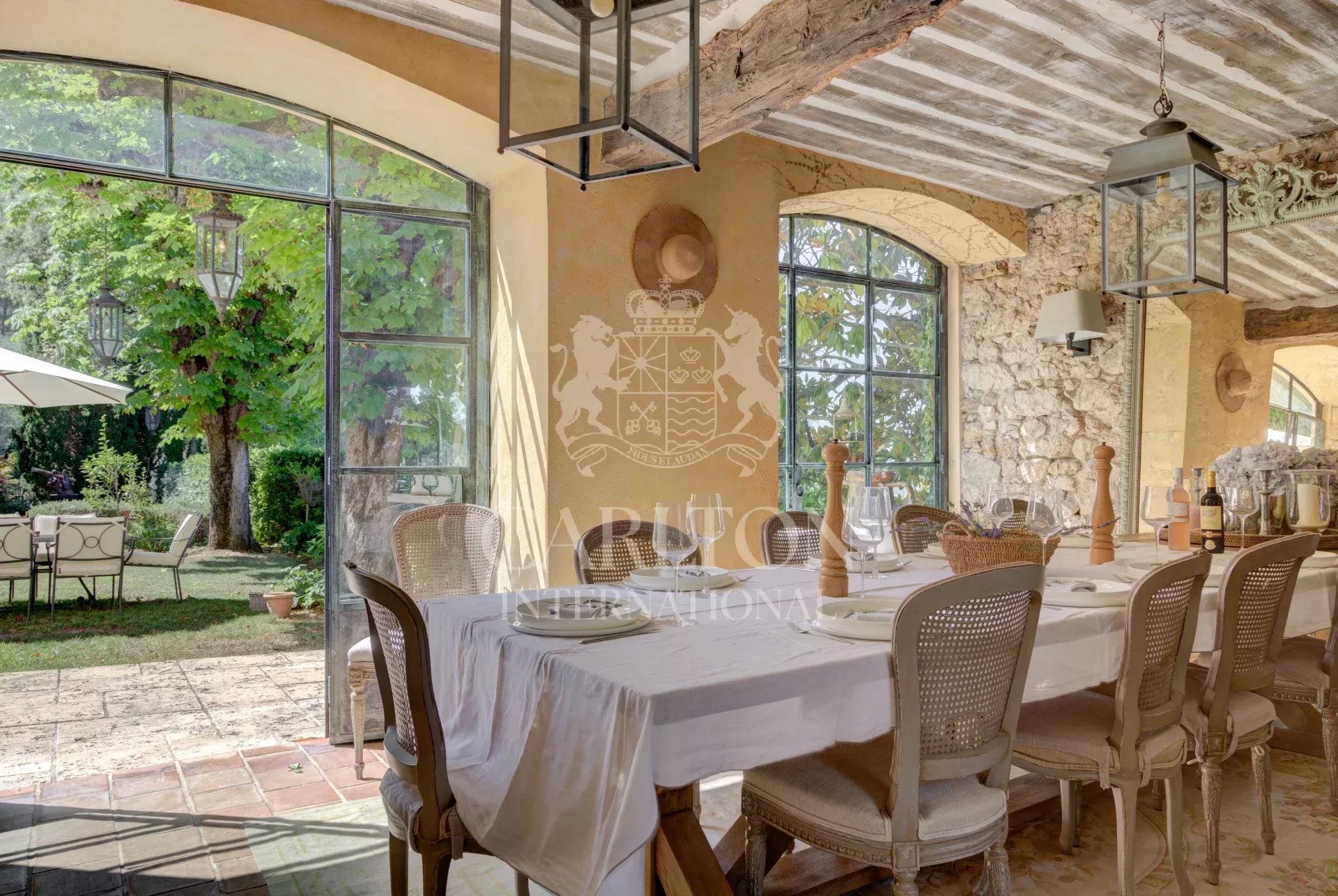 A sólo 5 minutos de Mougins, en una finca privada y apartada, esta Bastide rebosa encanto auténtico. Sus preciosas piedras rubias, orgullosamente expuestas, y sus vigas vistas le confieren un carácter único que seguro que le conquistará.