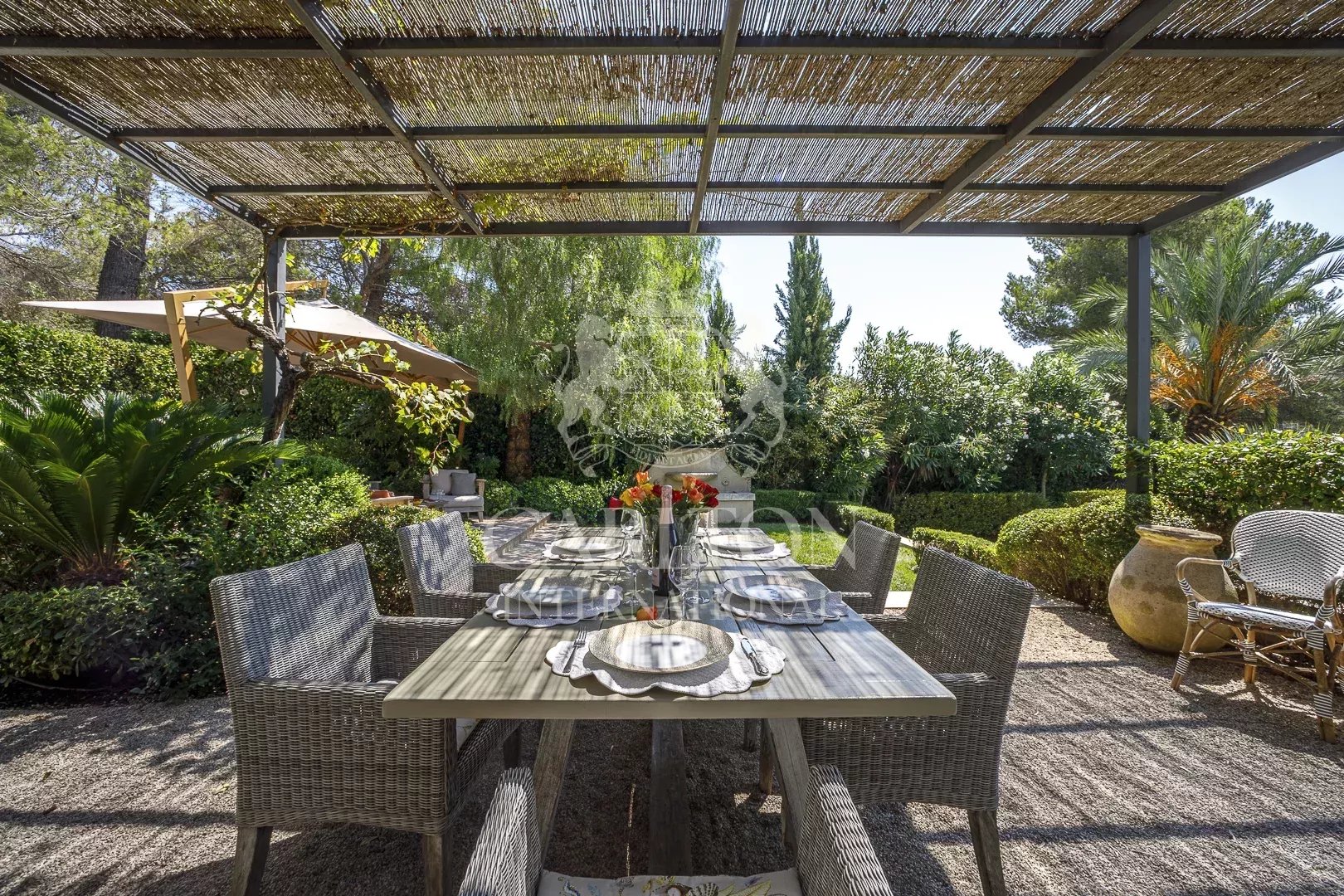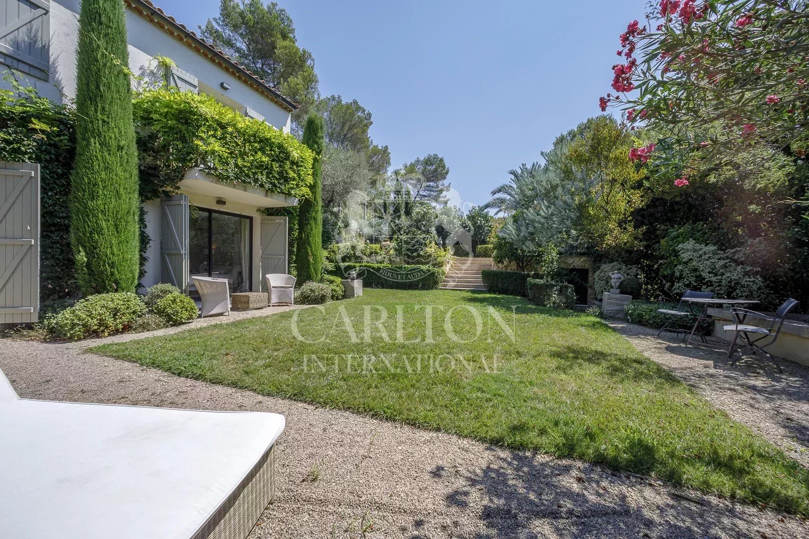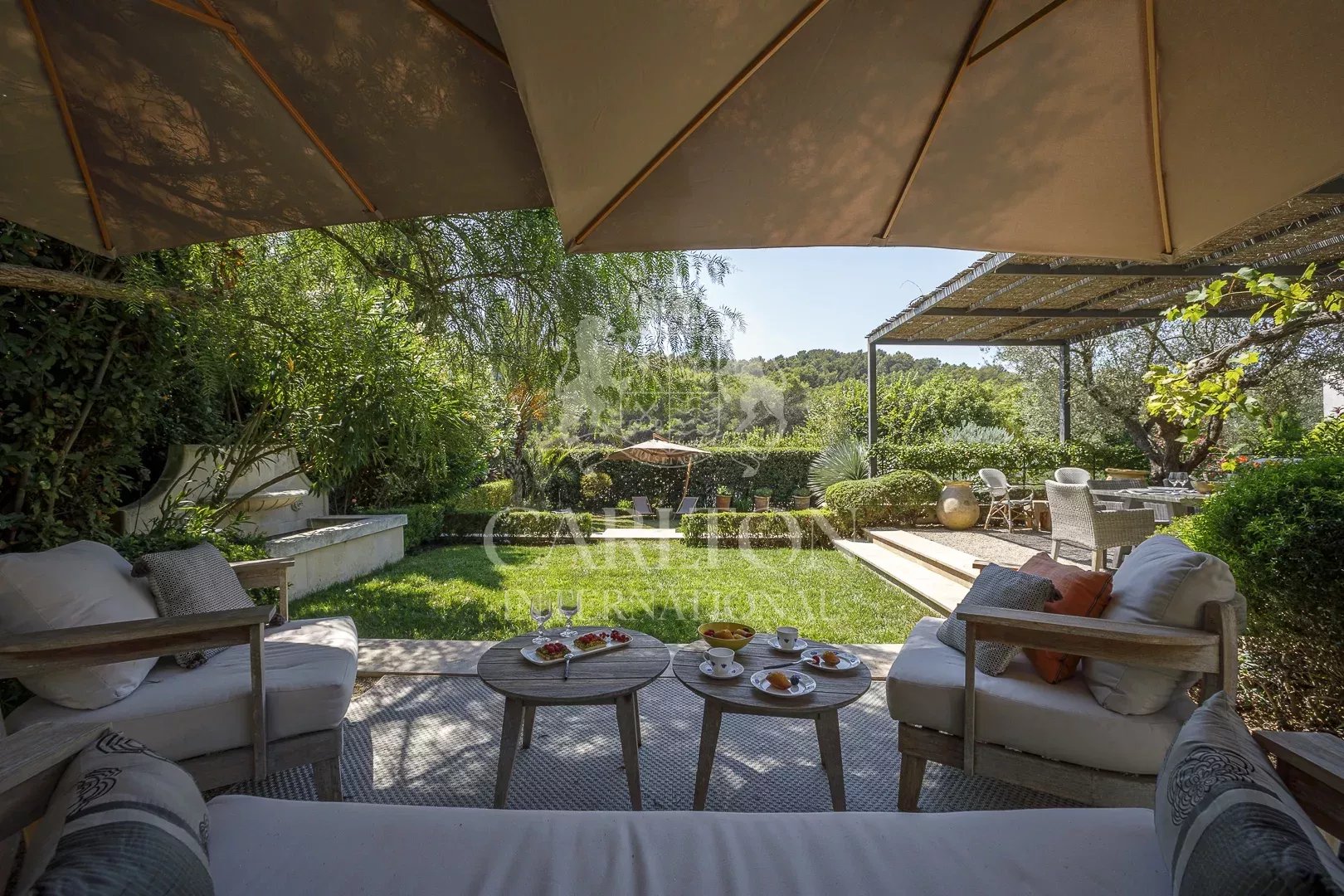Encantadora villa situada en un entorno bucólico, idealmente ubicada cerca del antiguo pueblo de Mougins, del campo de golf y de las hermosas playas de La Croisette.