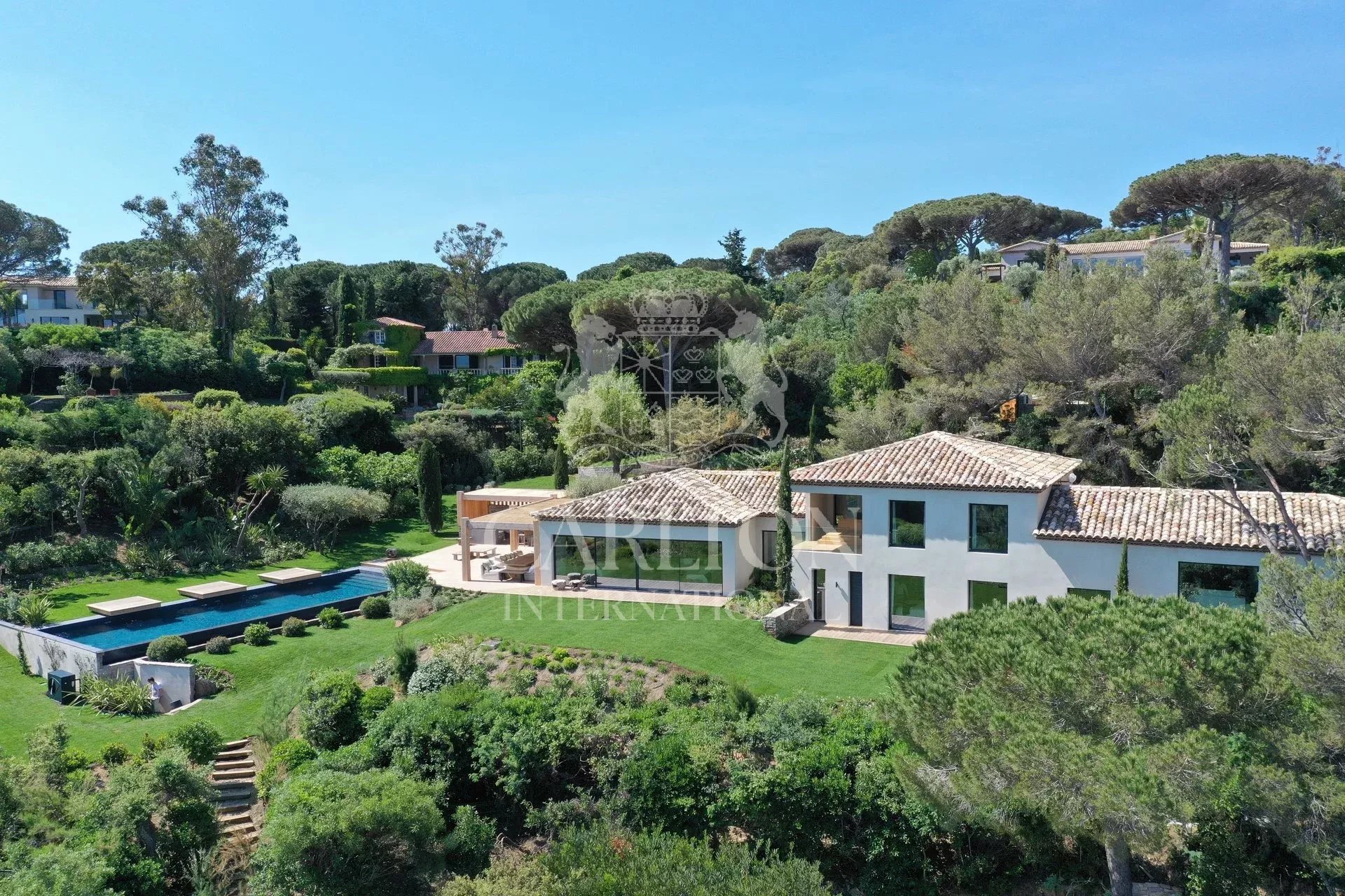 Saint Tropez – Superb new villa benefiting from a magnificent sea and hills view, located in the private domain of «Les Parcs de St Tropez»