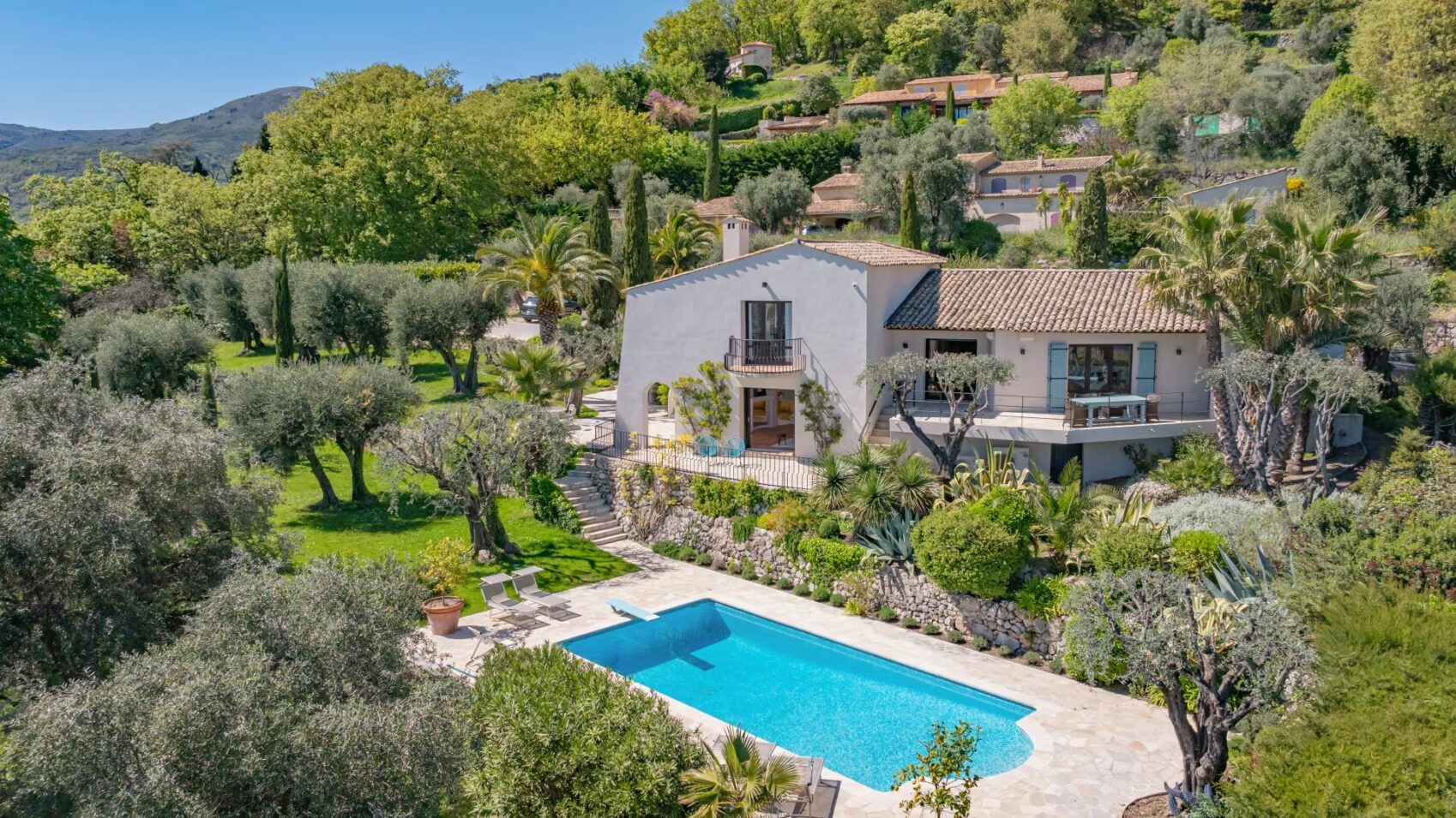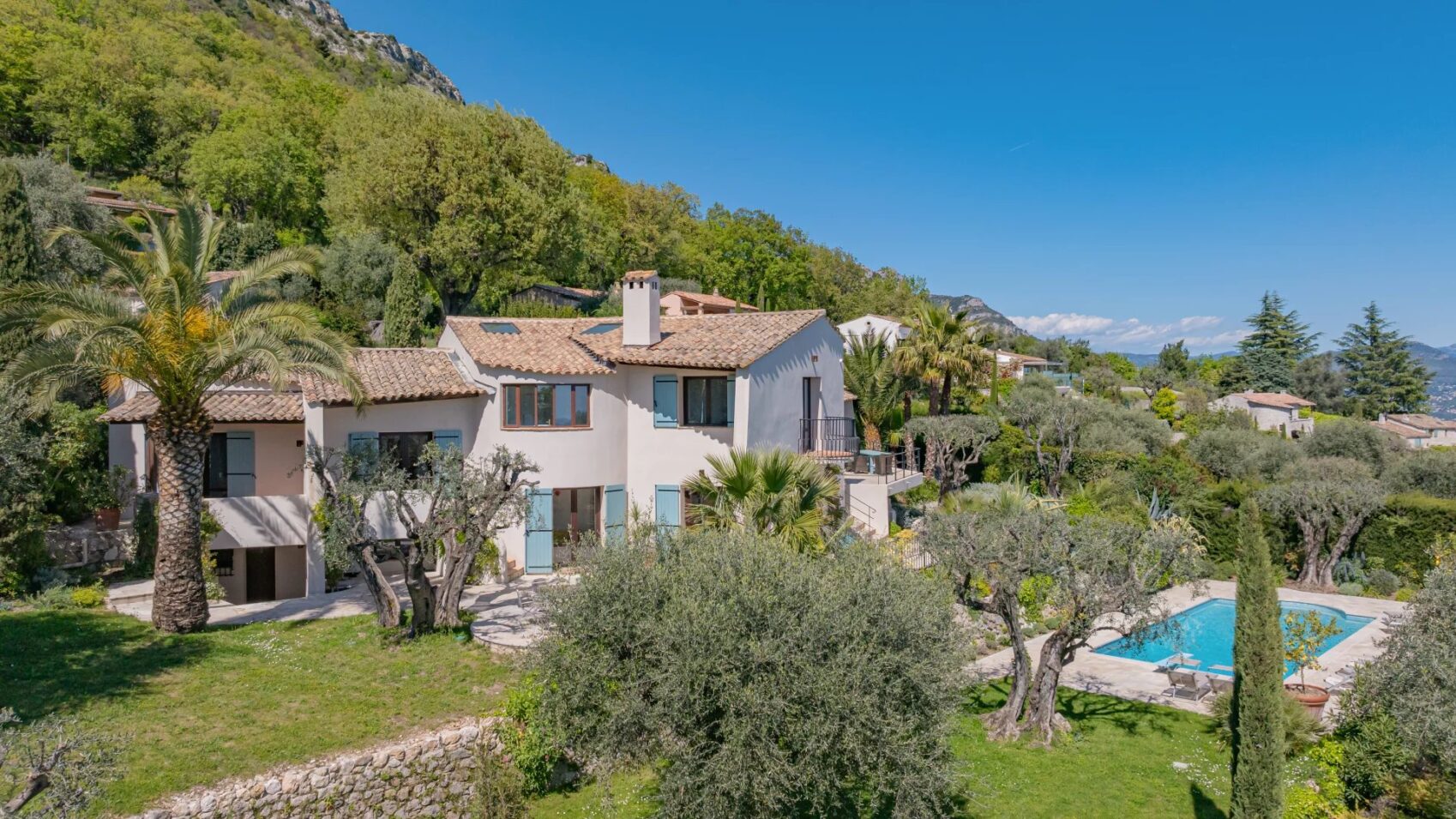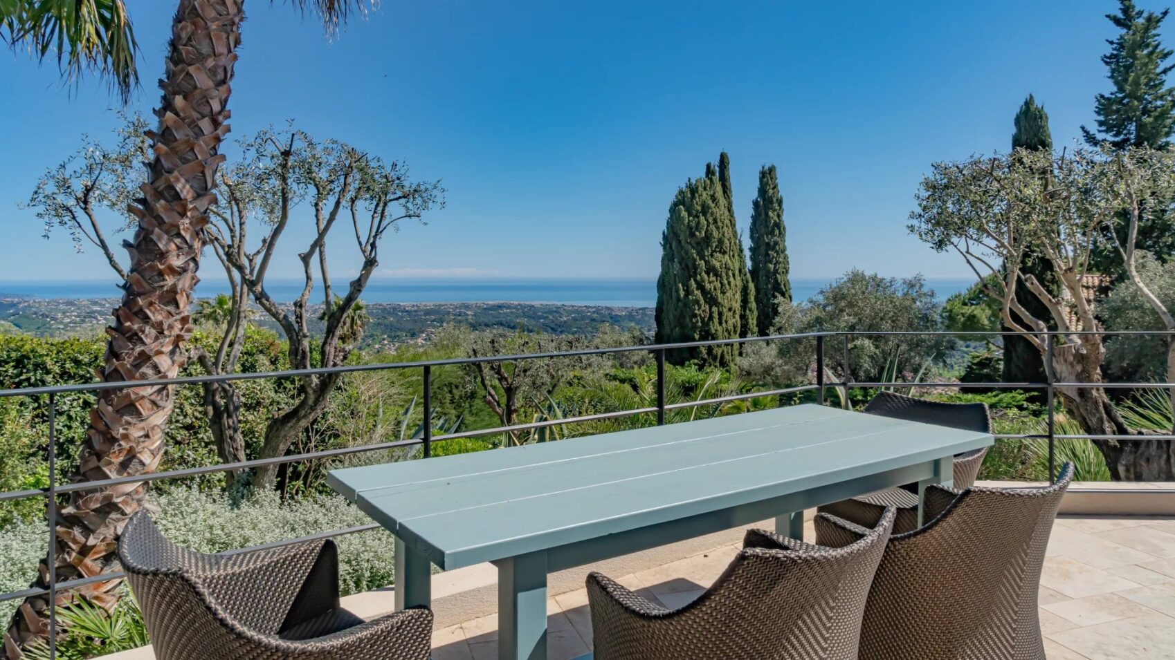 Perched in the hills above Vence, this exceptional property offers a breathtaking panoramic view of the Mediterranean, stretching from Cap Ferrat to Cap d’Antibes.