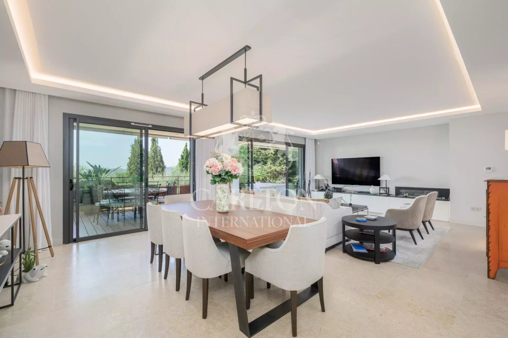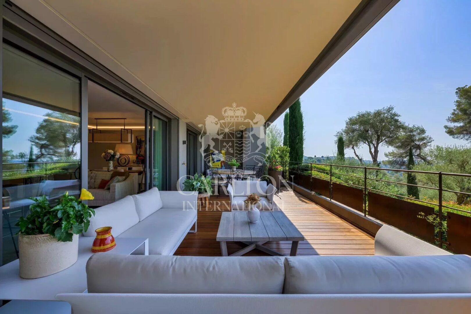Esta residencia única en Saint Paul de Vence combina en perfecta armonía elegancia, confort y prestaciones de alta gama. Situado en un entorno tranquilo y seguro en una copropiedad confidencial de sólo 18 pisos, el piso consta de un hall de entrada, una luminosa sala de estar con grandes ventanales que dan al exterior, una cocina abierta equipada con Miele de alta gama con lavadero contiguo, y tres elegantes suites, dos de las cuales tienen acceso directo a la terraza.