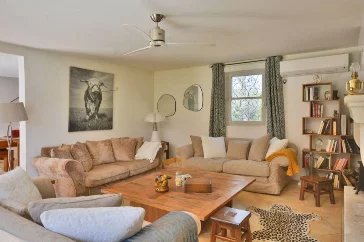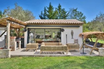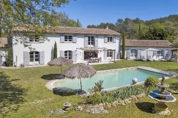 Near Valbonne: residential area, beautiful property south facing in a peaceful location enjoying a view of the countryside and the mountains offering: entrance hall, large and bright living room with fireplace, dining room, fitted kitchen, laundry room, 6 bedrooms en suite with their bathrooms including a spacious master suite on the first floor with double dressing room.