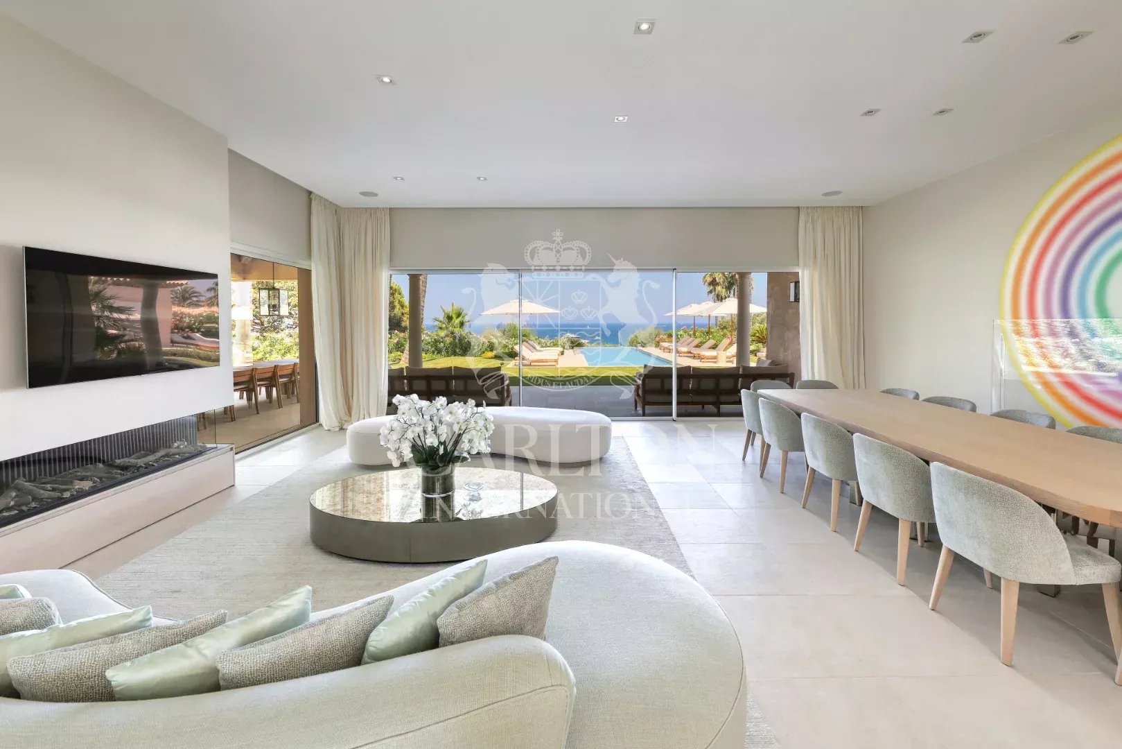 Ramatuelle – Discover this sumptuous 650 m² villa, facing the sea, offering a breathtaking panoramic view. This exceptional residence features 7 bedrooms with en-suite bathrooms and dressing rooms, an infinity pool, a fitness area, a sauna, a hammam, a spa, and a tennis court.