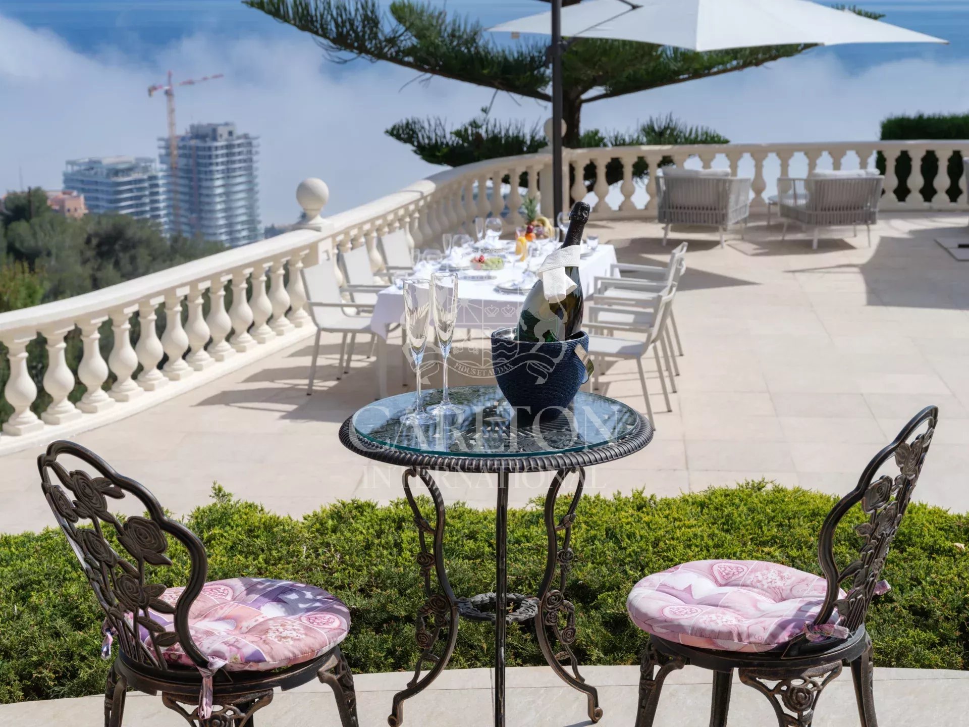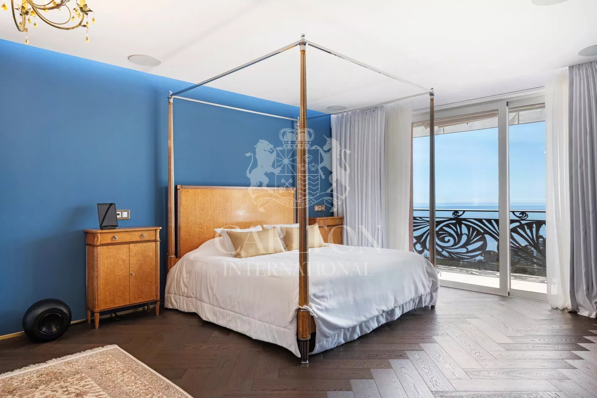 Con una superficie de 800 m2, la villa dispone de cuatro dormitorios, todos ellos orientados al sur y con vistas triples al entorno arbolado, al mar Mediterráneo y a Mónaco. Cada dormitorio da a una terraza orientada al sur, equipada con persianas eléctricas para protegerse del sol. Además, todos los dormitorios disponen de cuarto de baño con ducha.