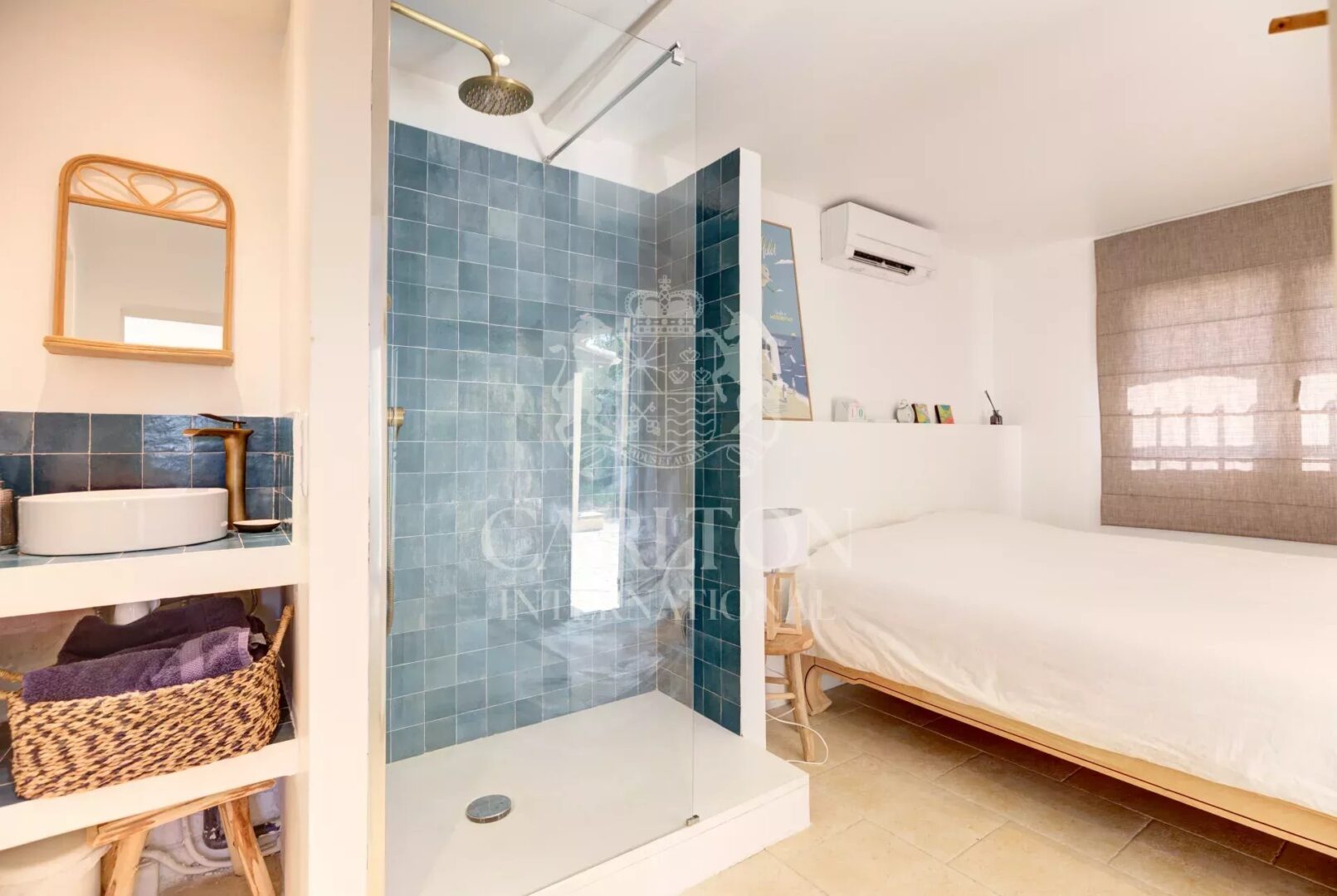Outside, the 1100m2 plot reveals a magnificent renovated swimming pool area with pool-house, summer kitchen, and barbecue, promising unforgettable moments under the Mediterranean sun. The property also includes a large outbuilding with wine cellar, garage or artist’s workshop, and a small duplex apartment to renovate, offering exceptional potential for additional projects.