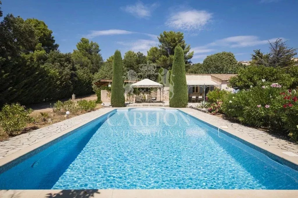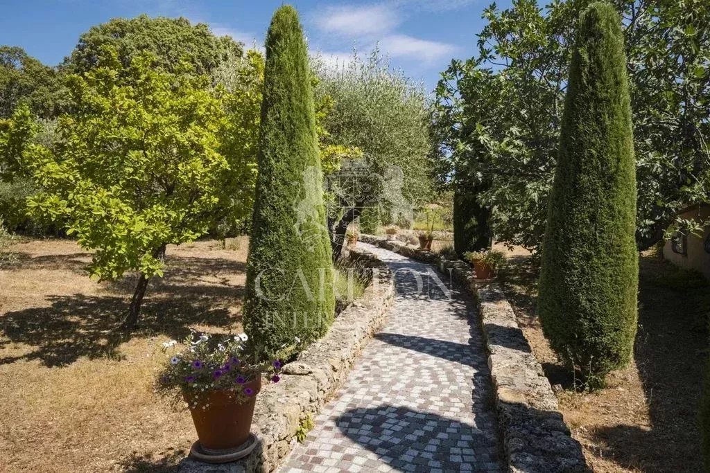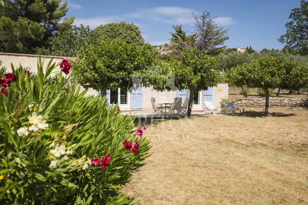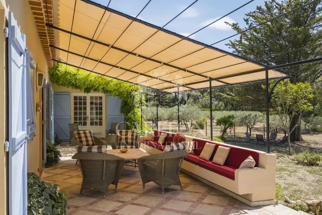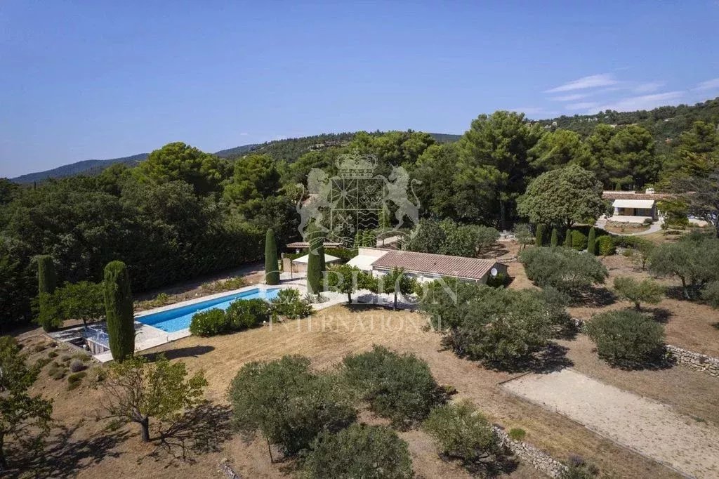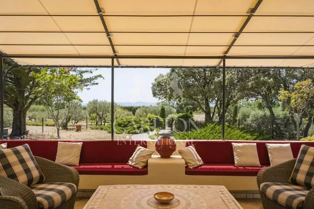 The pool has terraces around it, offering views over the olive grove with around 100 olive trees, an orchard, a small vineyard, a vegetable garden, a terrace with a BBQ/pizza oven, a pétanque court, and in the background, the hills with the beautiful village of Tourtour.