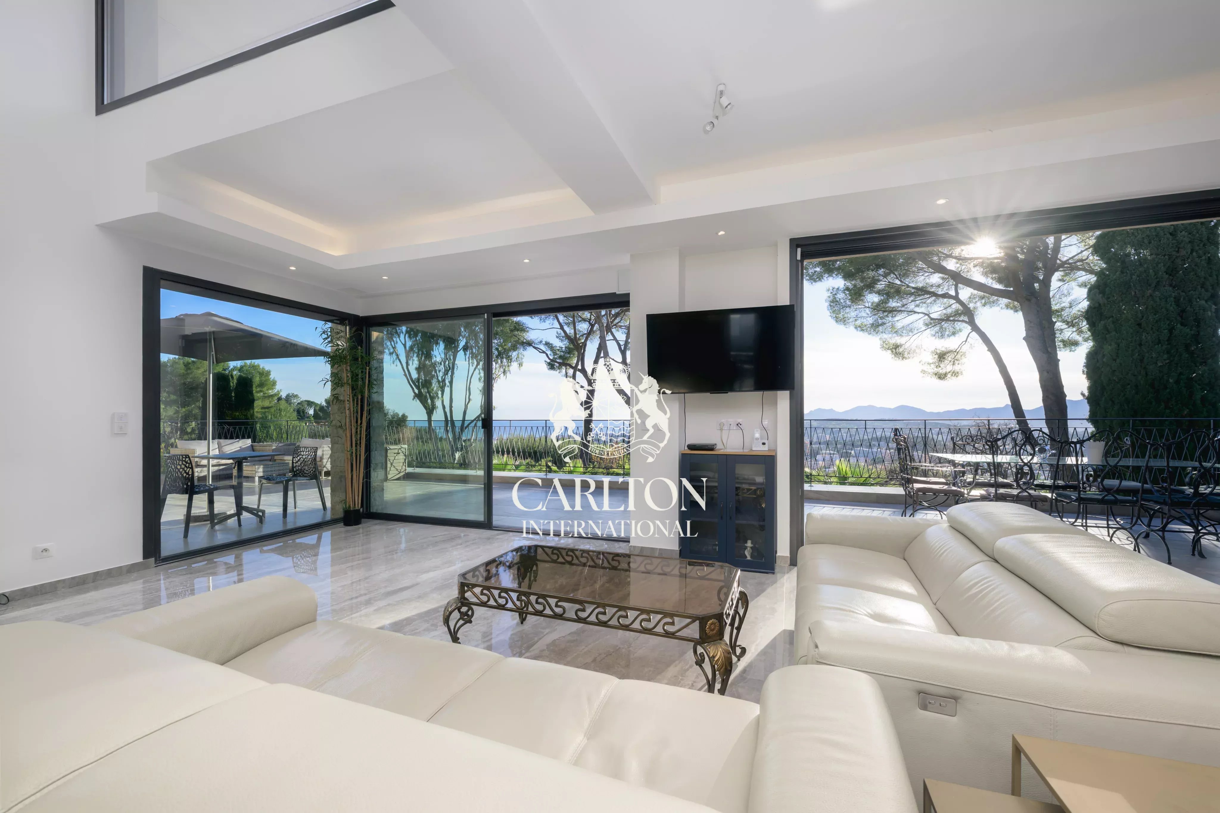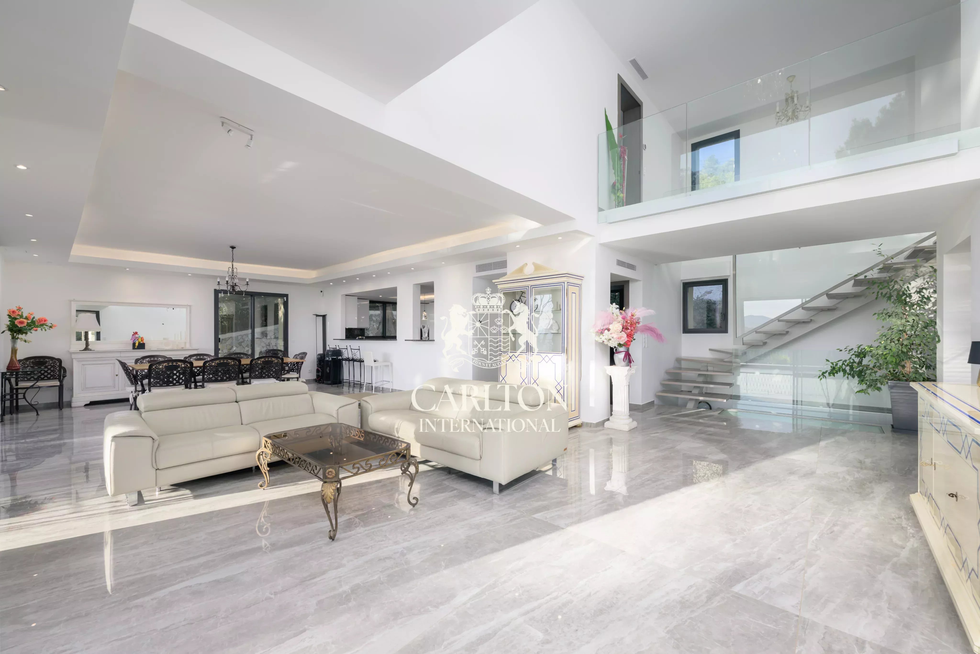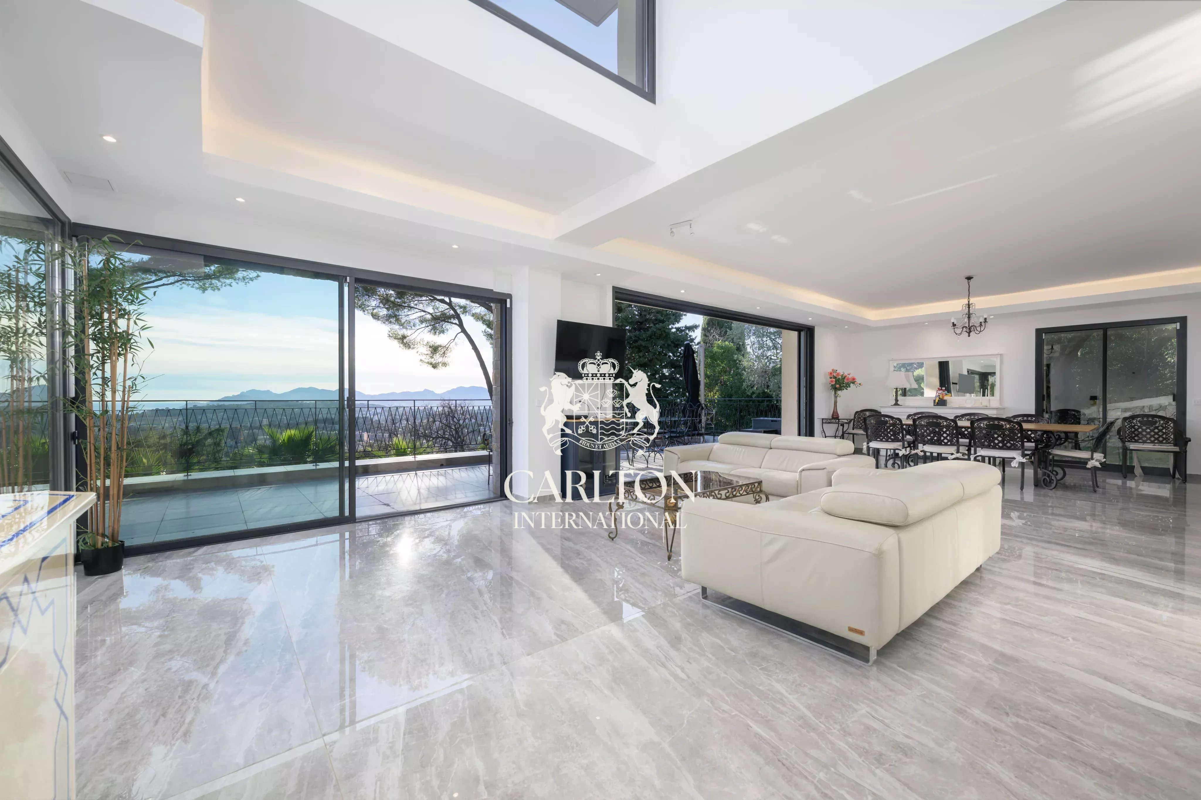 Descubra el prestigio de esta villa contemporánea de 370 m² en Mougins, joya de lujo de la Costa Azul. Ubicada en una parcela de 2130 m², esta residencia ofrece impresionantes vistas panorámicas al mar y a Cannes, al tiempo que se integra armoniosamente en su verde entorno.