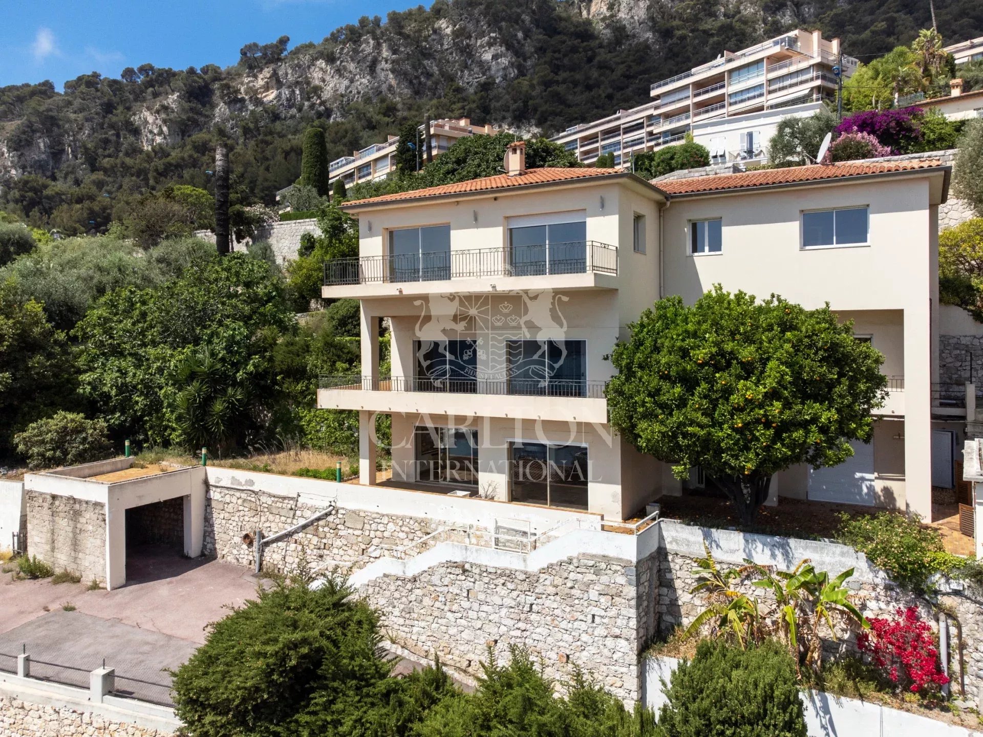 Esta es una ubicación excepcional, la propiedad ofrece aproximadamente 350m2 de espacio habitable en una parcela de 1300m2 y se beneficia de magníficas vistas sobre la bahía de Villefranche y Cap Ferrat con alojamiento en tres plantas que consta de un hall de entrada, dos salones, dos cocinas, un dormitorio principal con baño en-suite, 4 dormitorios, todos con sus propios cuartos de baño, un lavadero, sala de calderas y dependencias.