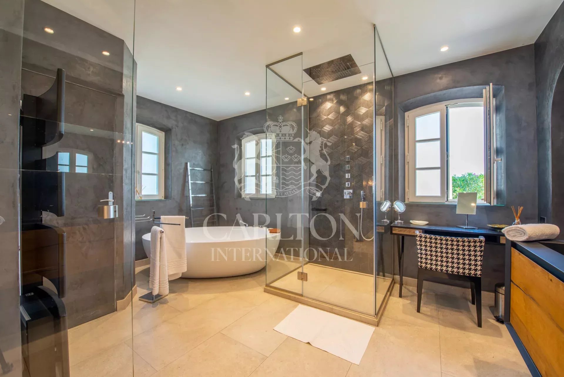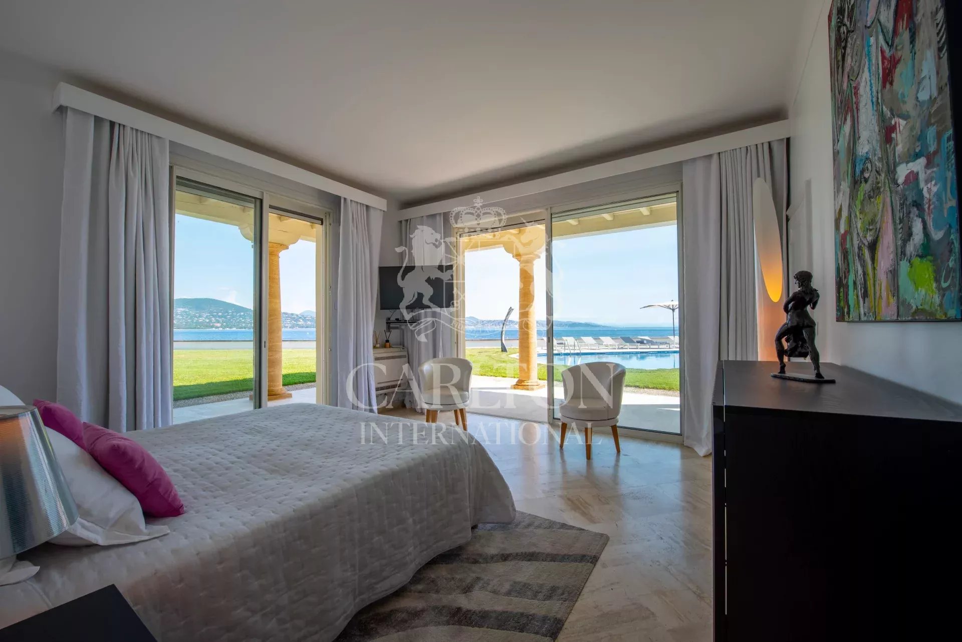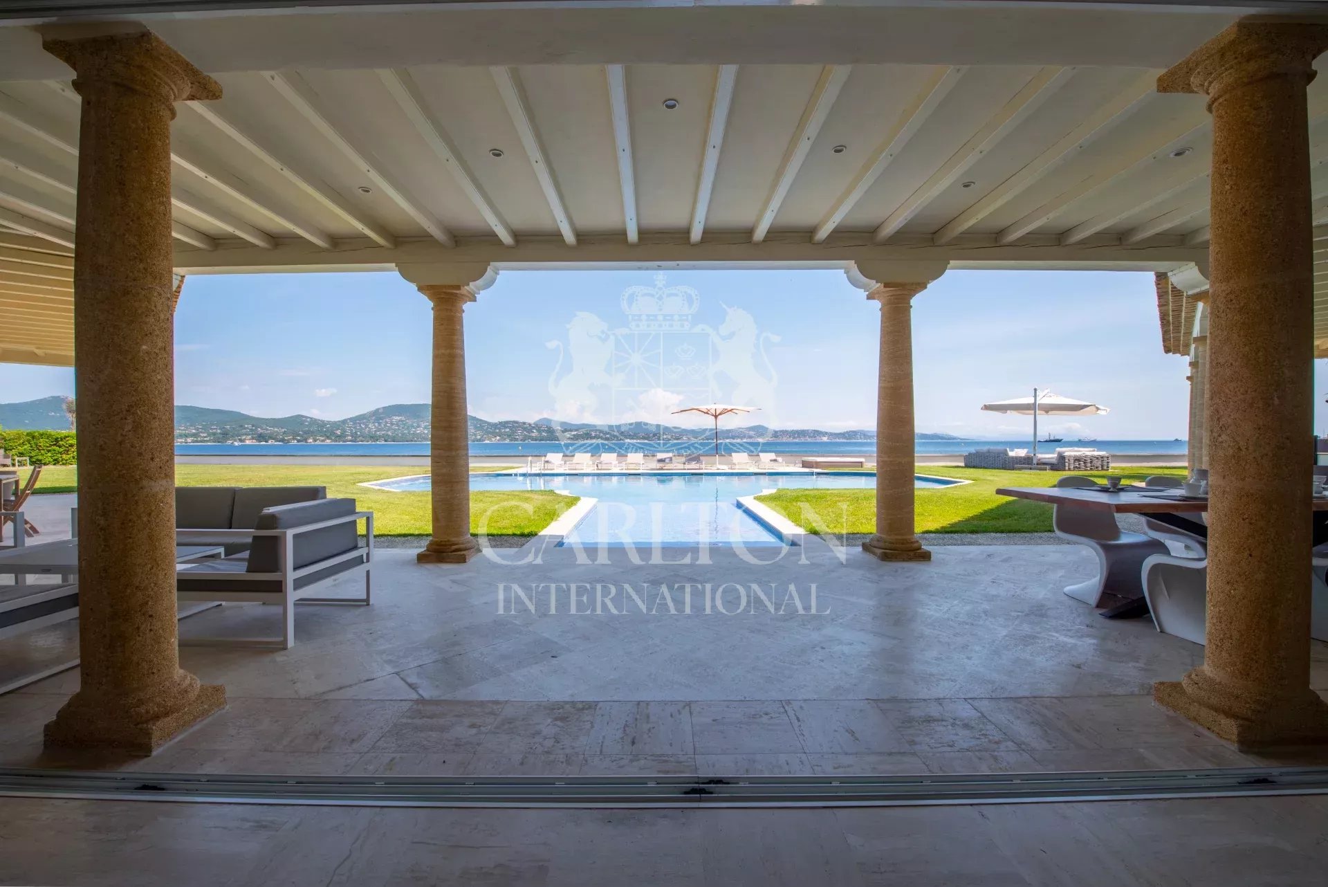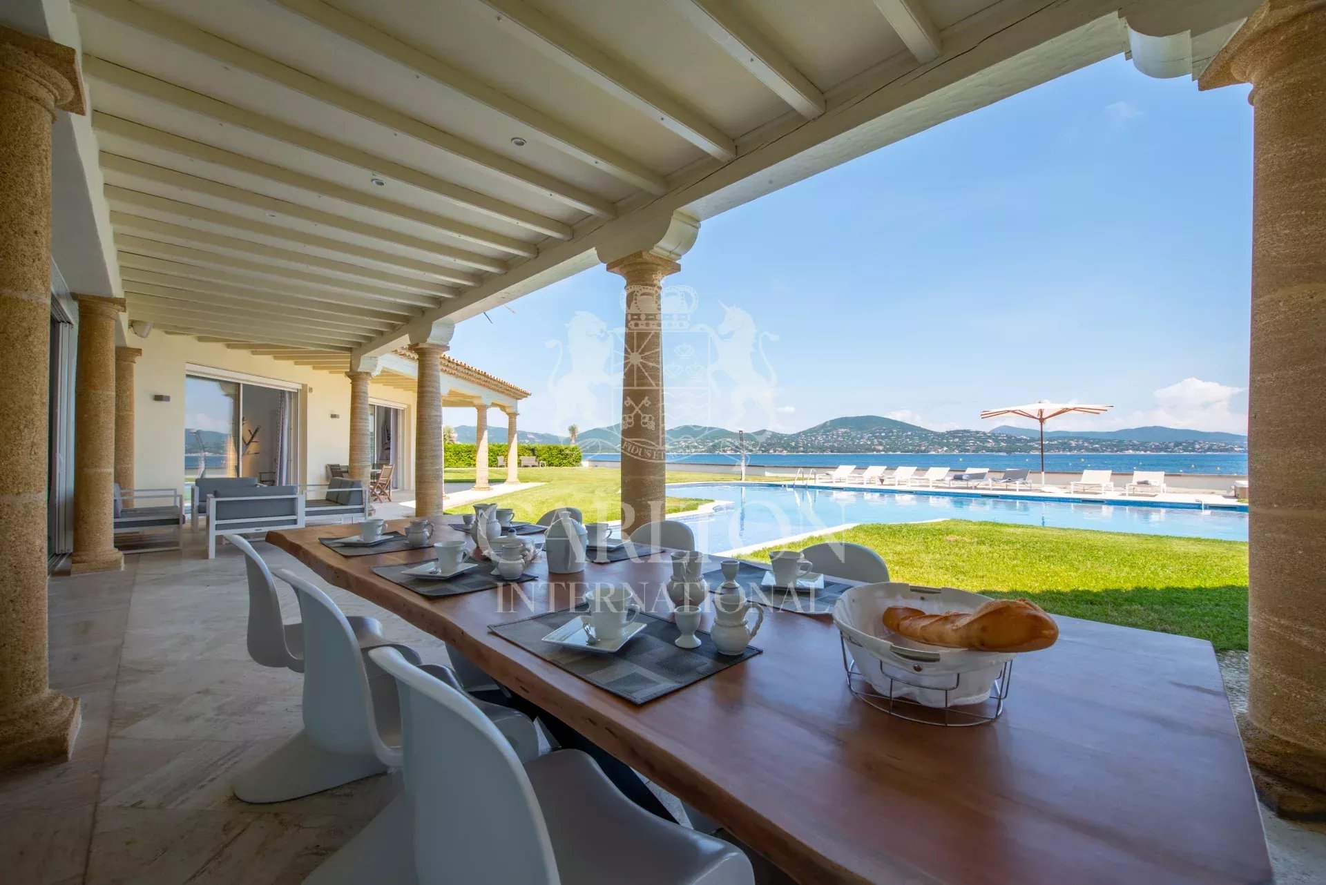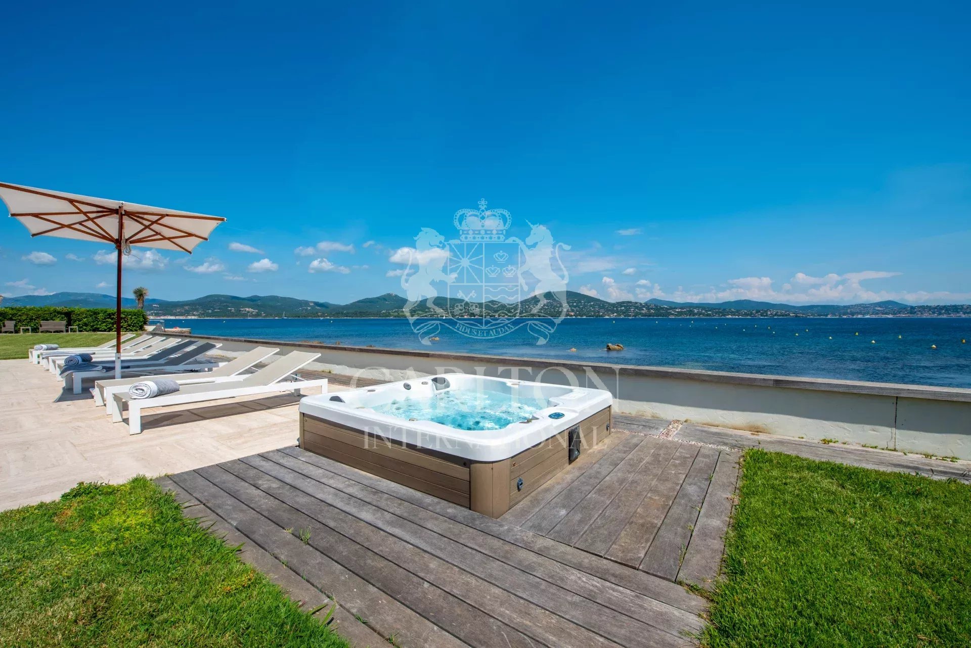 Located at the entrance to Saint Tropez, this beautiful Florentine-style villa overlooks a small beach with direct, private access. The panorama of the Gulf of Saint Tropez is magical, particularly at nightfall when the lights of the towns and boats sparkle.