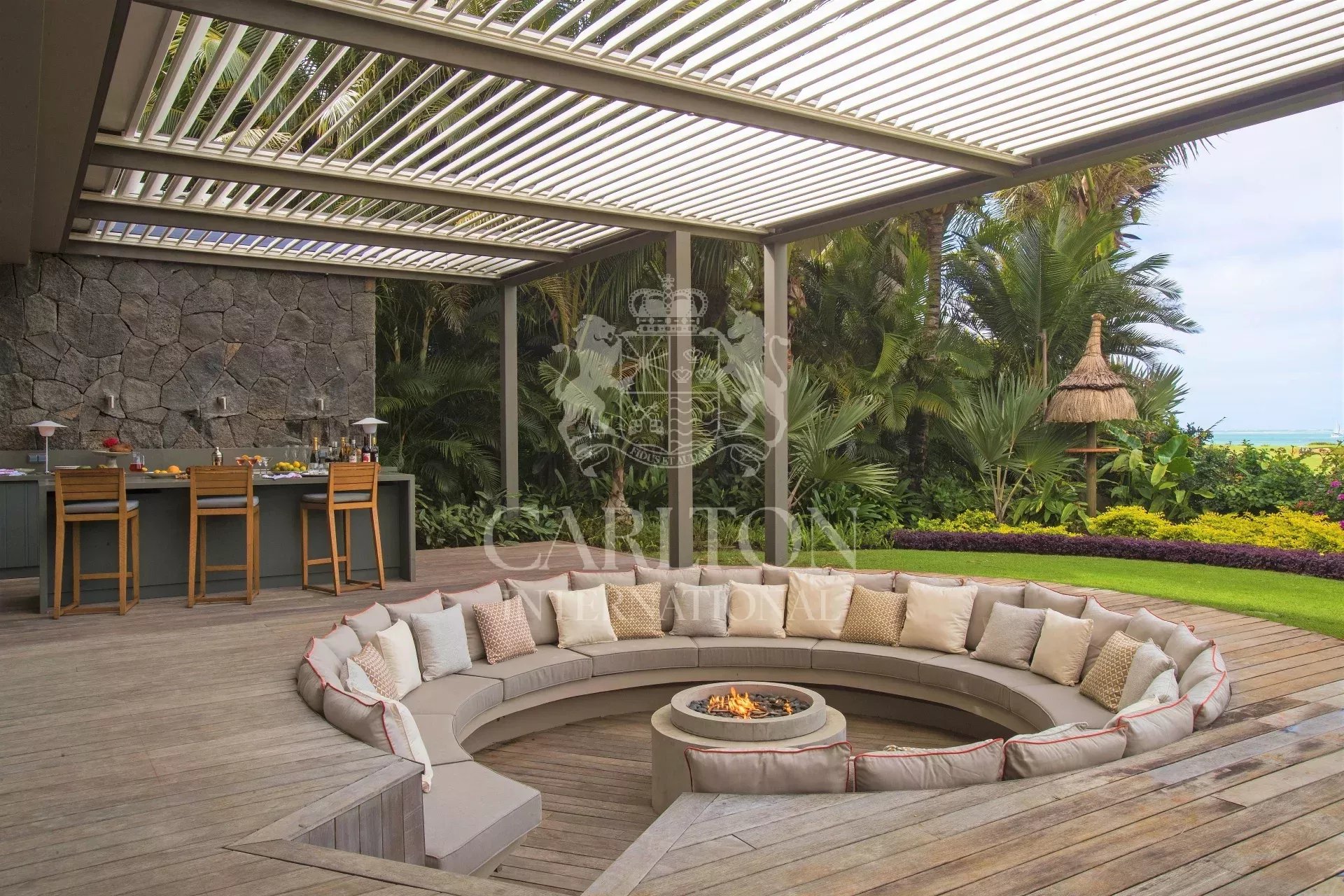 Located within the prestigious and highly sought-after Anahita Golf and Spa Resort on the East coast of Mauritius, this property combines exemplary architecture, design, and service, to give you the ultimate luxury experience. With 9,730 ft2 of beautifully designed indoor and outdoor living areas, this residence is spread between 5 linked buildings and is the perfect place to bring friends and family together. Six spacious bedrooms and a spectacular landscaped private garden with stunning 25m pool provide the ultimate opportunities for rest and relaxation. Next to the pool, the large open plan kitchen and living space is the heart of this villa. Each room has been individually decorated and locally made bespoke furniture features throughout. From the custom designed kitchen, enhanced by feature lighting, to luxurious bathrooms; the interiors at this luxury home are bespoke and exude a sense of elegance. Uniquely, this amazing villa boasts superb sea, golf, and mountain views. The generous master bedroom offers complete privacy with its own expansive terrace benefitting from the trio of outstanding views. This residence is a safe and peaceful haven in which our exceptional team provide unrivalled world class service including a Chef, Service Staff, Head Housekeeper and team. MU426