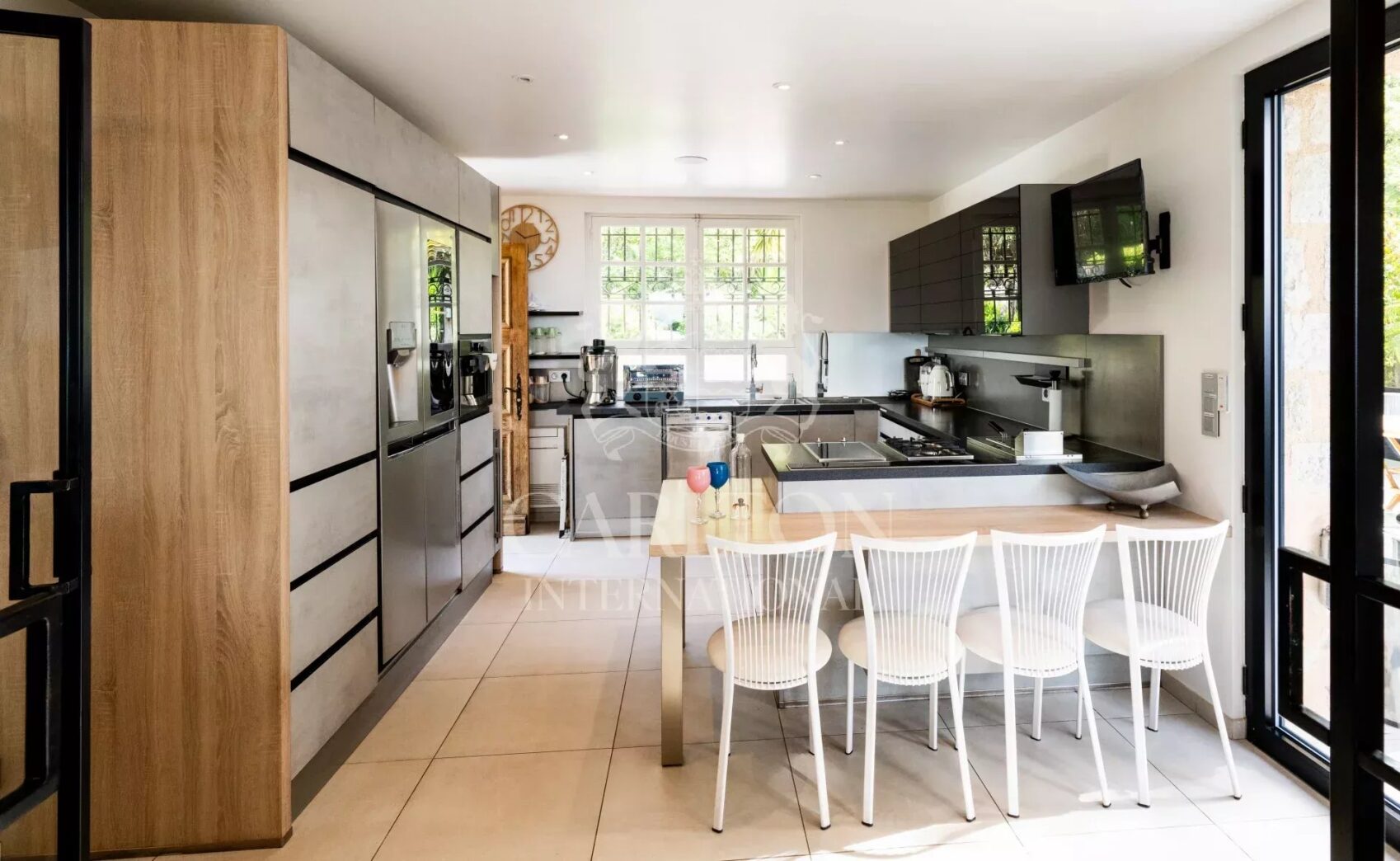 Outside, a number of lounge areas, hidden from view, invite you to get together and relax. A fully equipped outdoor kitchen, heated swimming pool and shaded terraces complete this haven of peace.