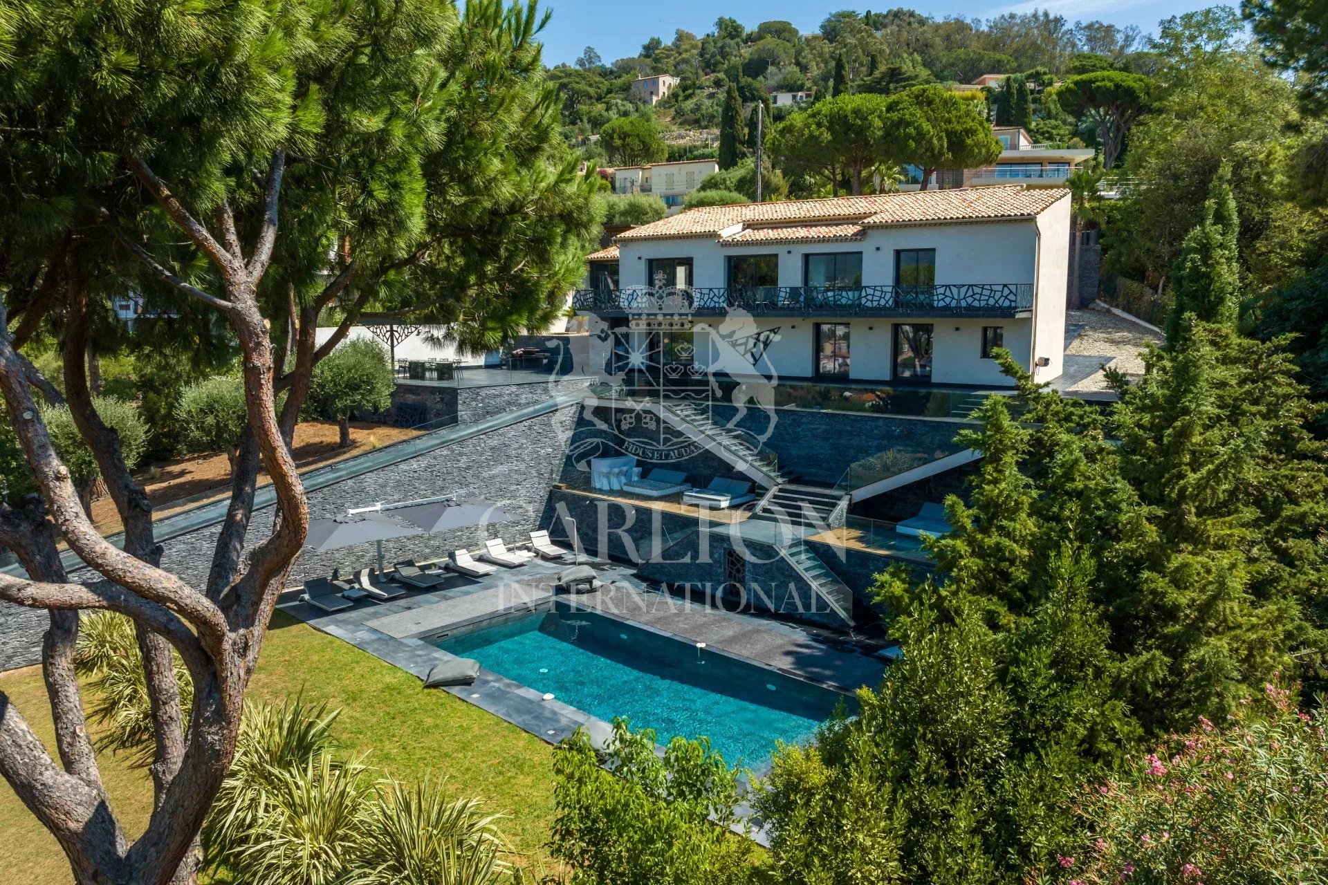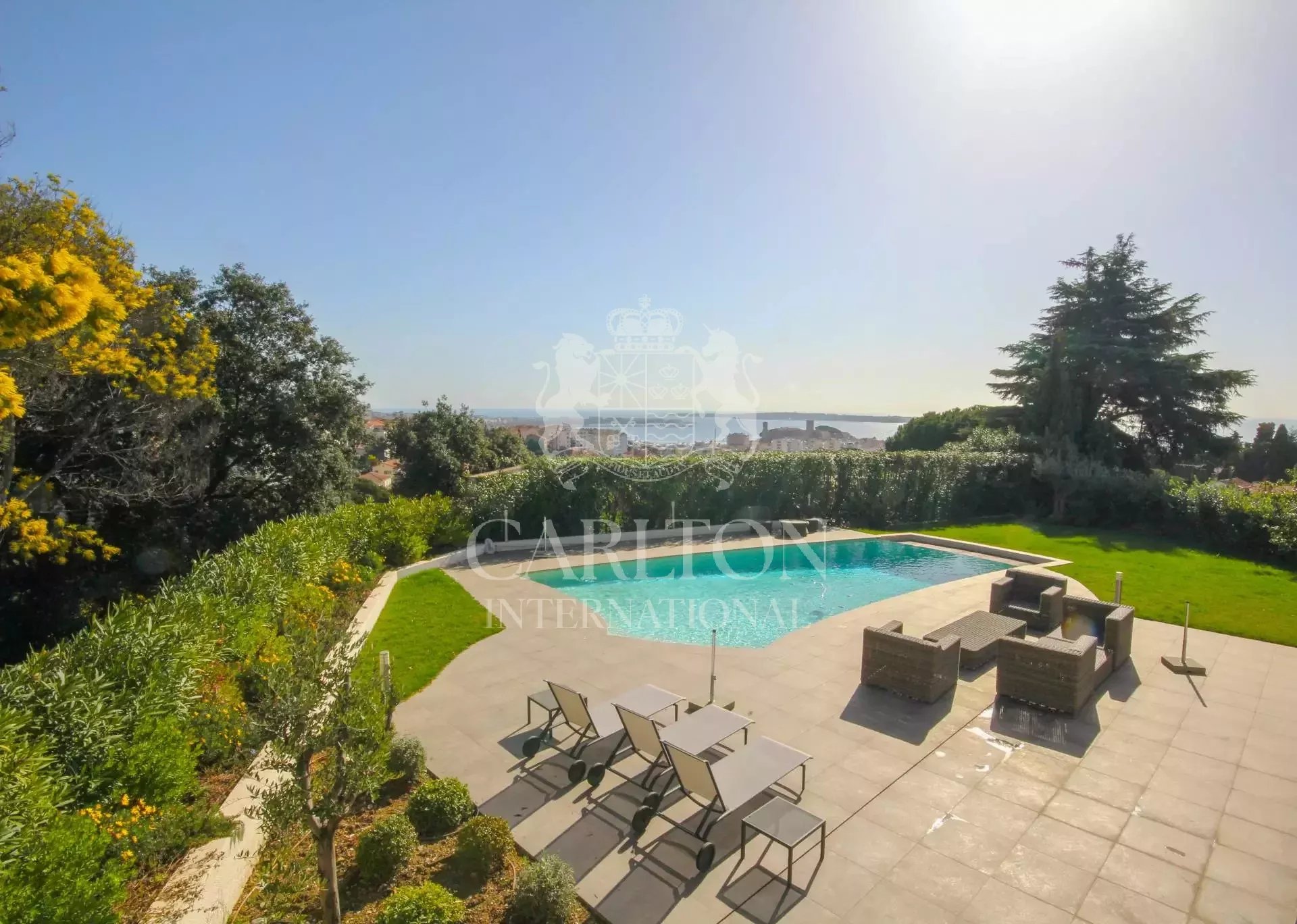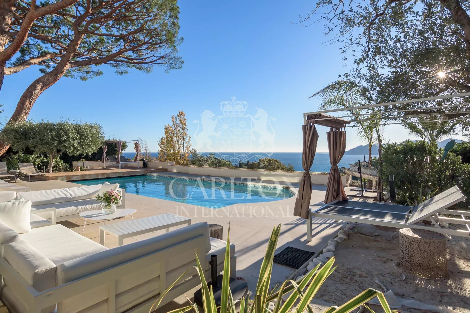 Situada nas alturas da Croix des Gardes, esta sumptuosa villa oferece vistas para o mar e um cenário idílico para umas férias de luxo e bem-estar.