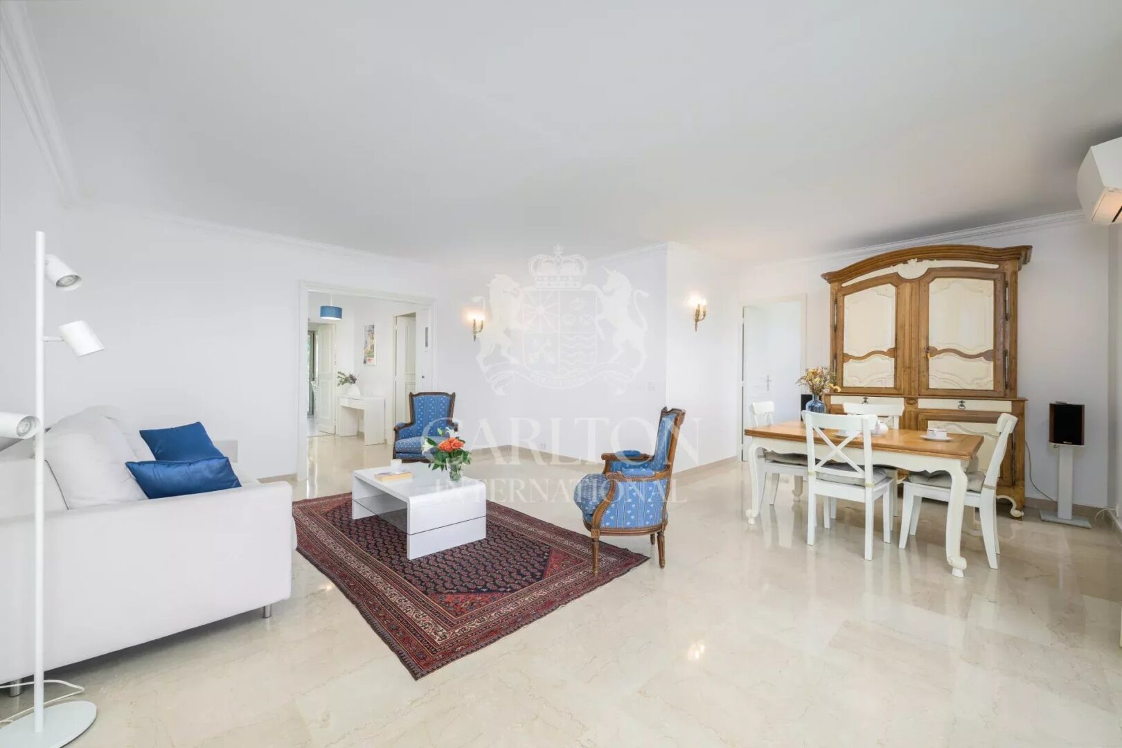 Located on the top floor of an intimate, secure residence with swimming pool and janitor, this 104 m², walk-through apartment enjoys a privileged, quiet, leafy setting, just a few minutes from the center of Cannes.