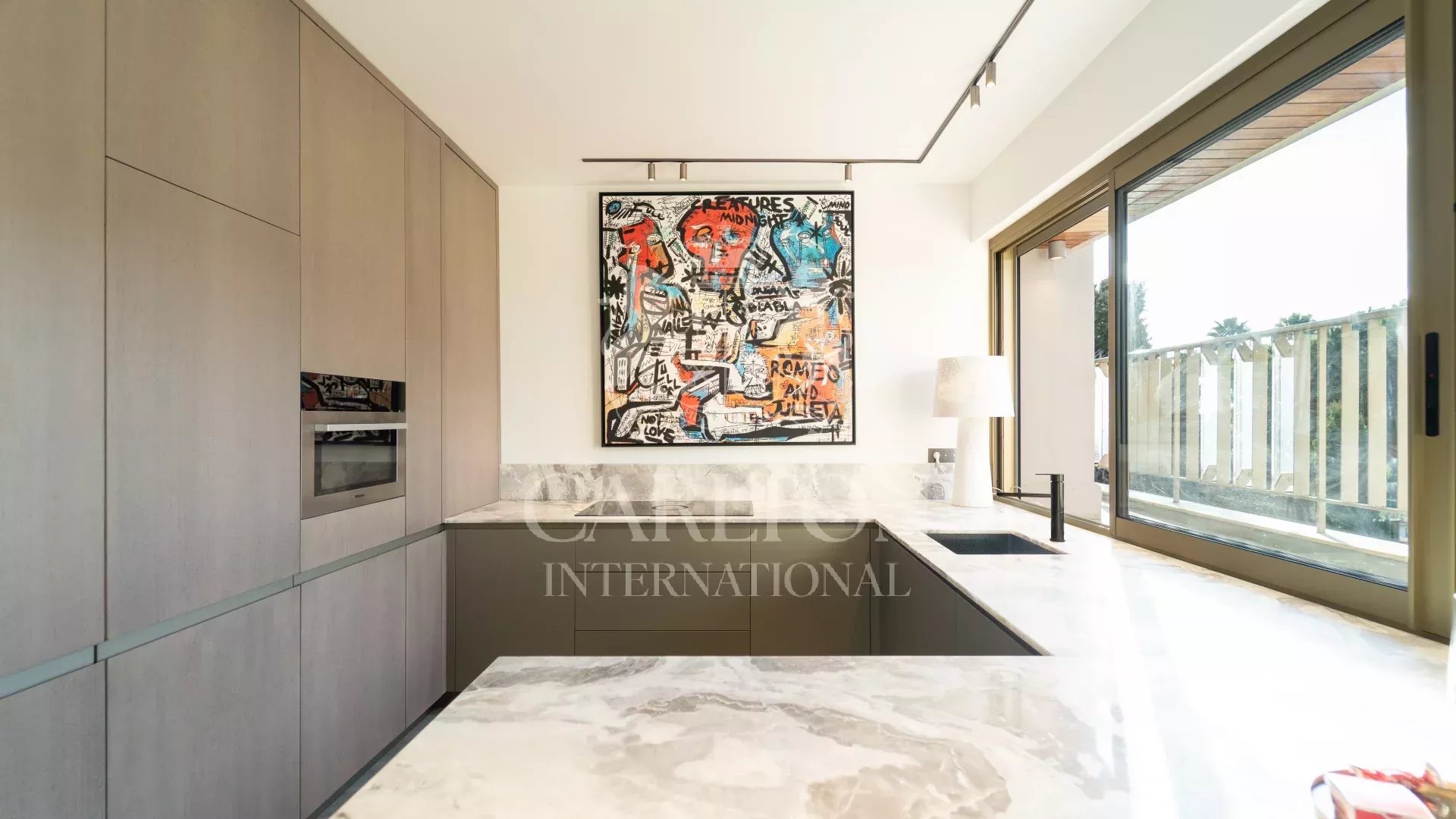 This beautifully designed 5-room apartment in a gated estate combines modern, chic decor with the highest quality materials.