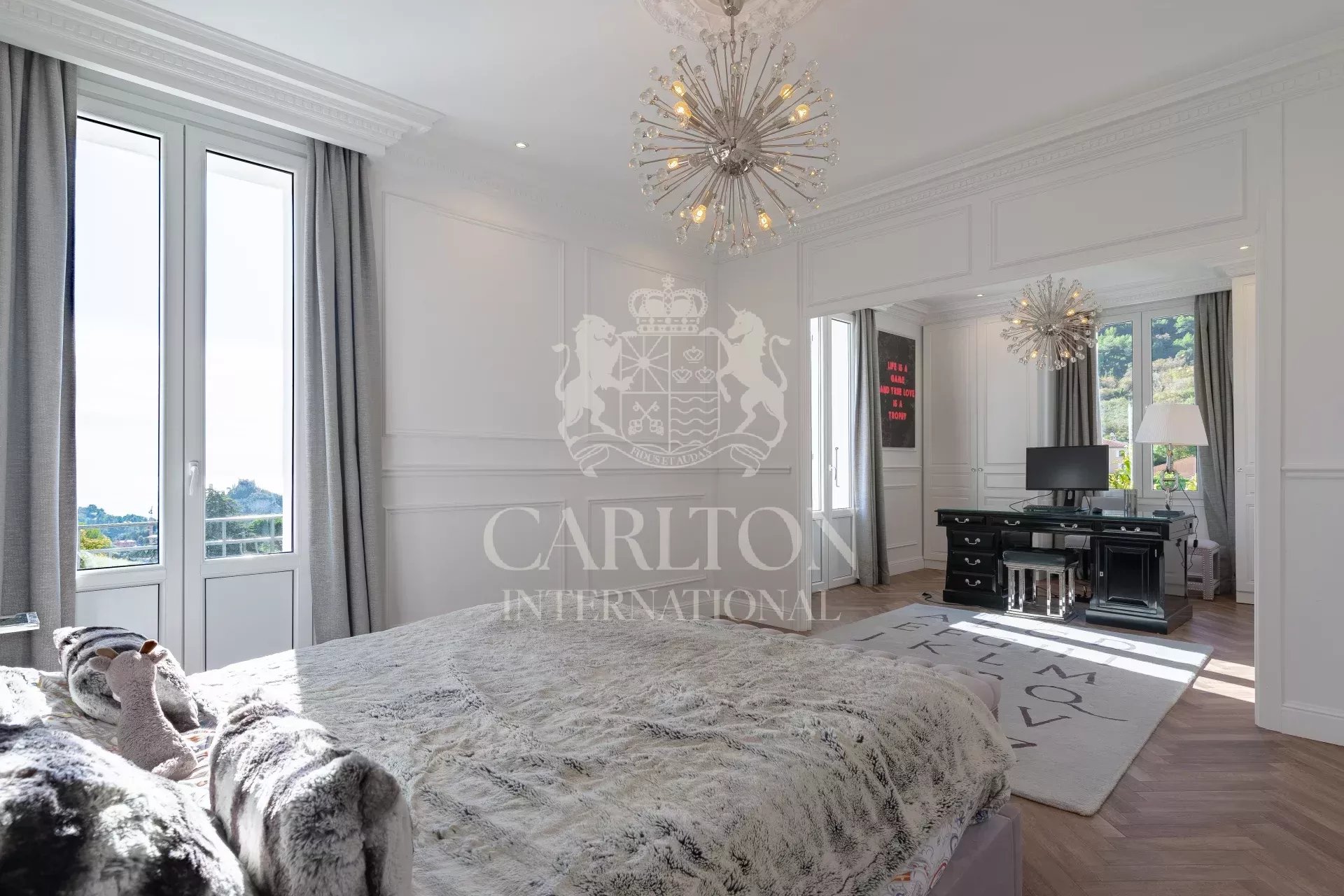 Charming villa of 280 m² built on the heights of Èze, benefiting from a view of the sea and the village. This property comprises a main house and three independent apartments, each featuring a living room with a fully equipped kitchen and a bedroom with an en-suite shower and toilet, accommodating up to 12 guests.