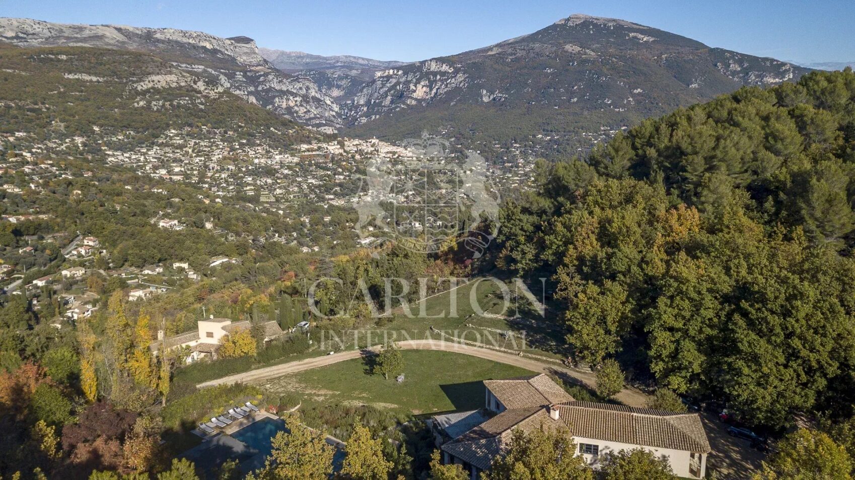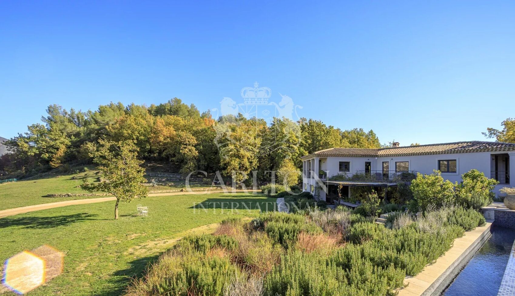In the Cannois hinterland, in absolute calm in the heart of nature, you’ll find this contemporary property of approx. 400m² with magnificent panoramic mountain views. Just a stone’s throw from the village and shops, this fully-renovated house is set in approx. 7,000 m² of grounds, with a heated infinity pool and large pool house for sunbathing.