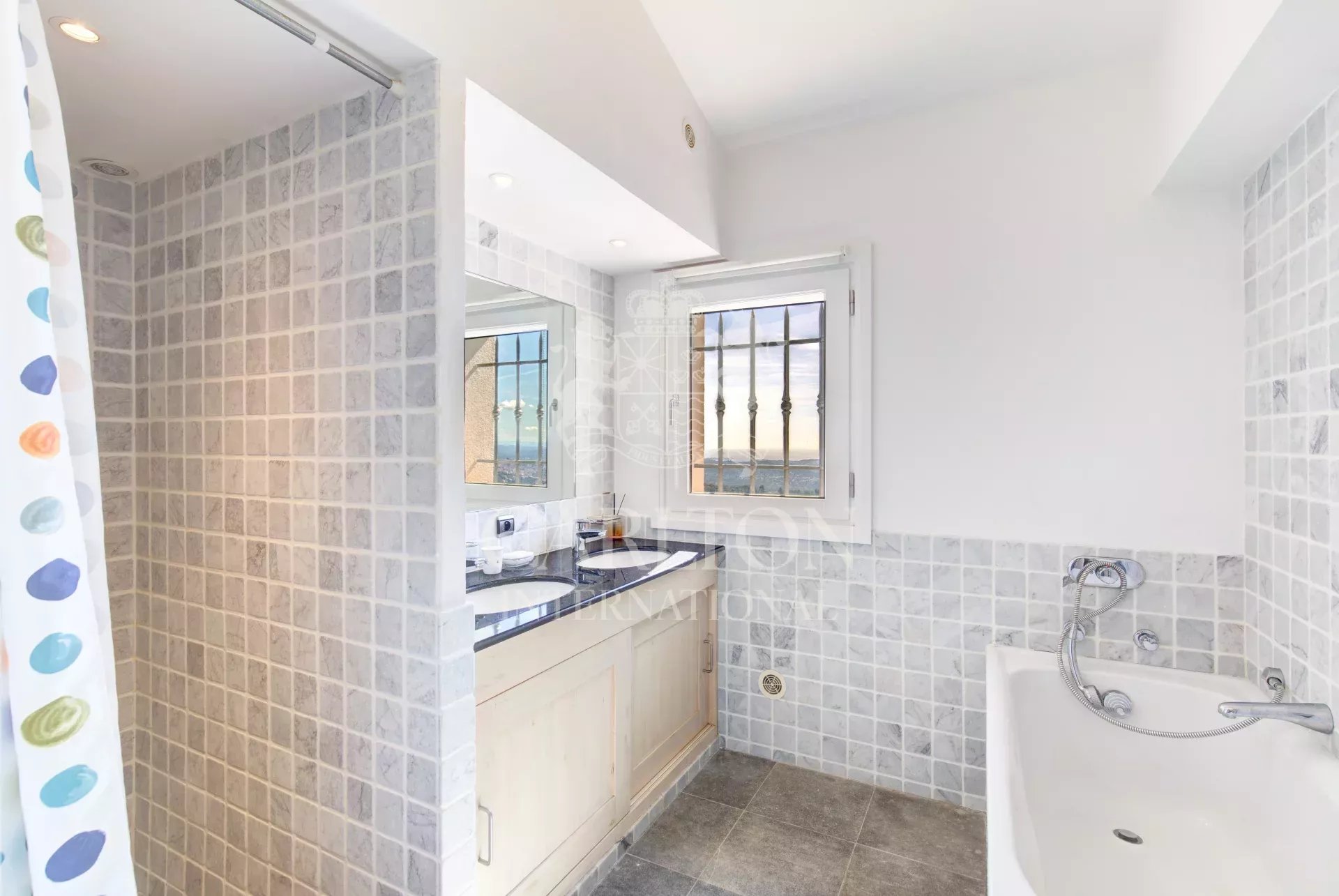 10-15 minutes on foot from the village, shops, and restaurants, and about 30-40 minutes by car from the airport, Nice, and Cannes.
