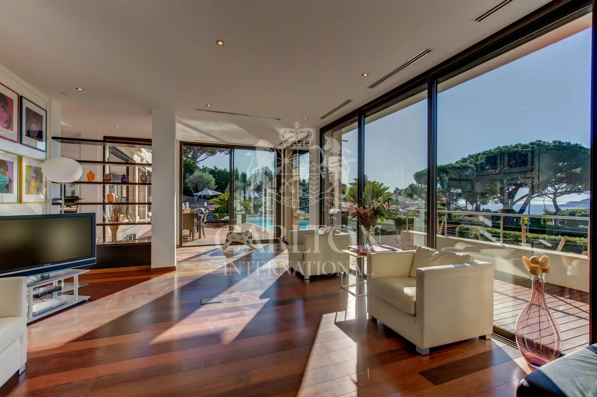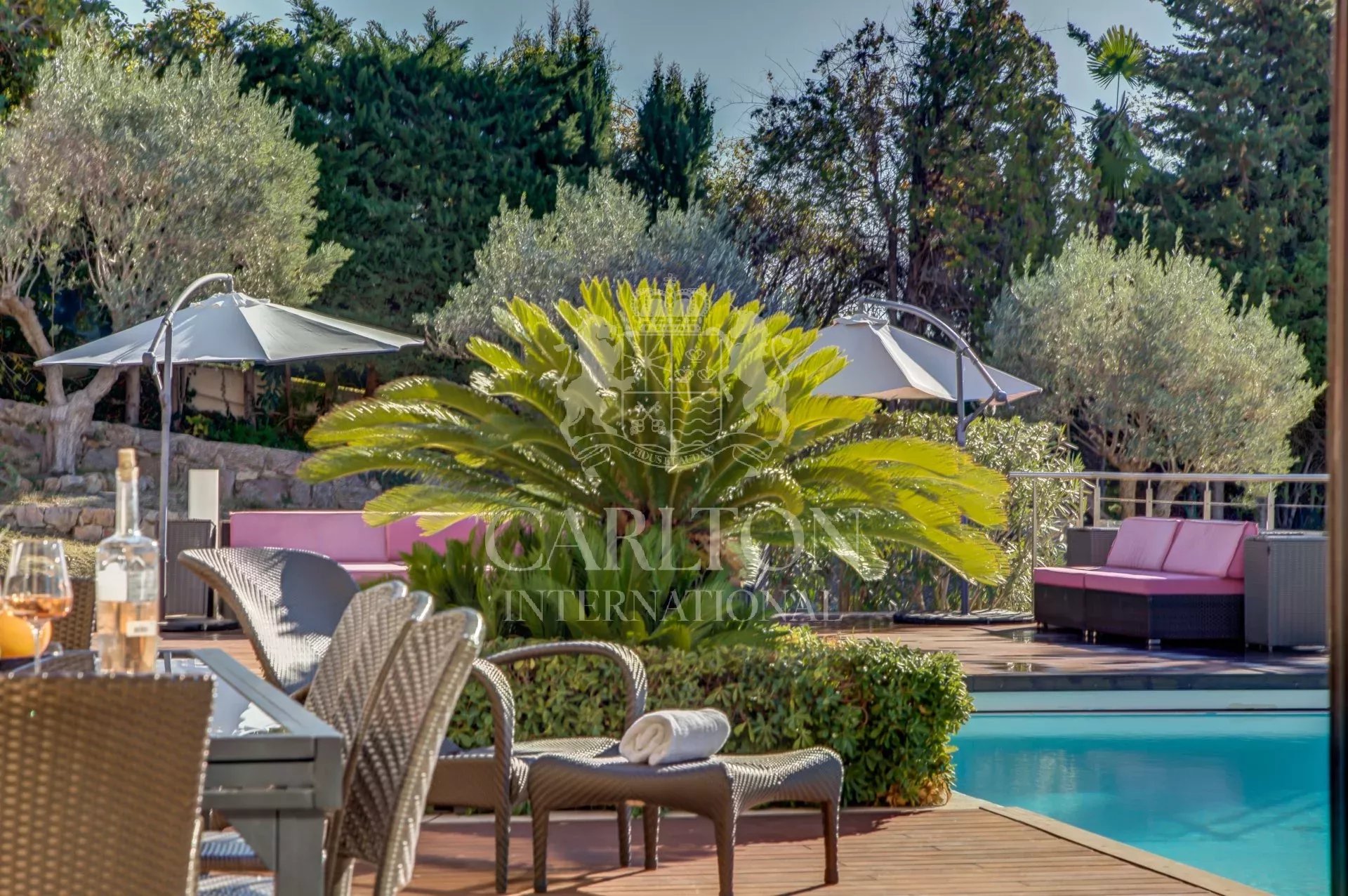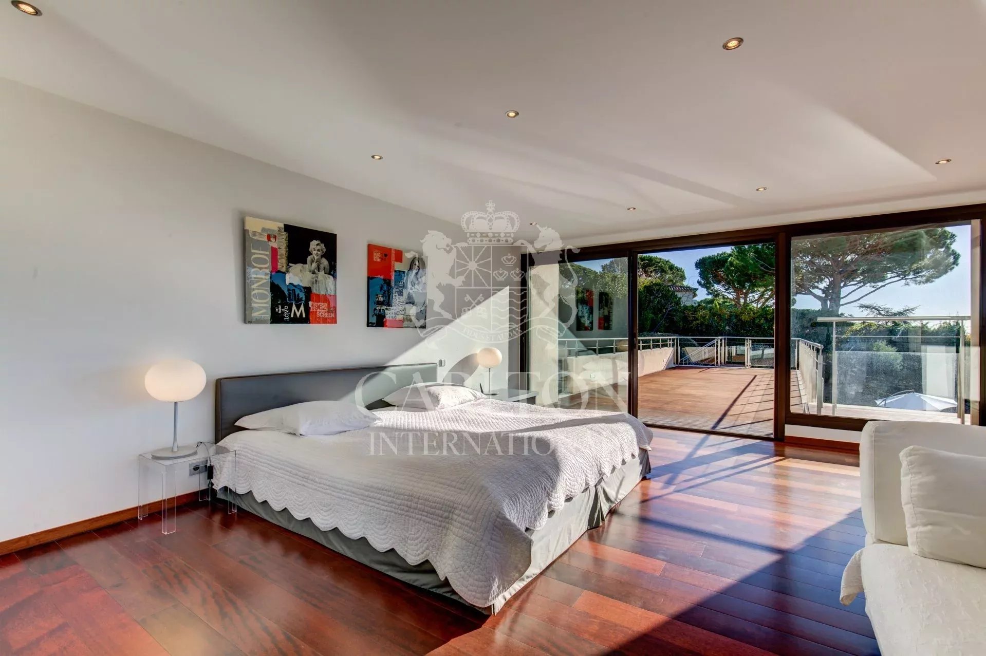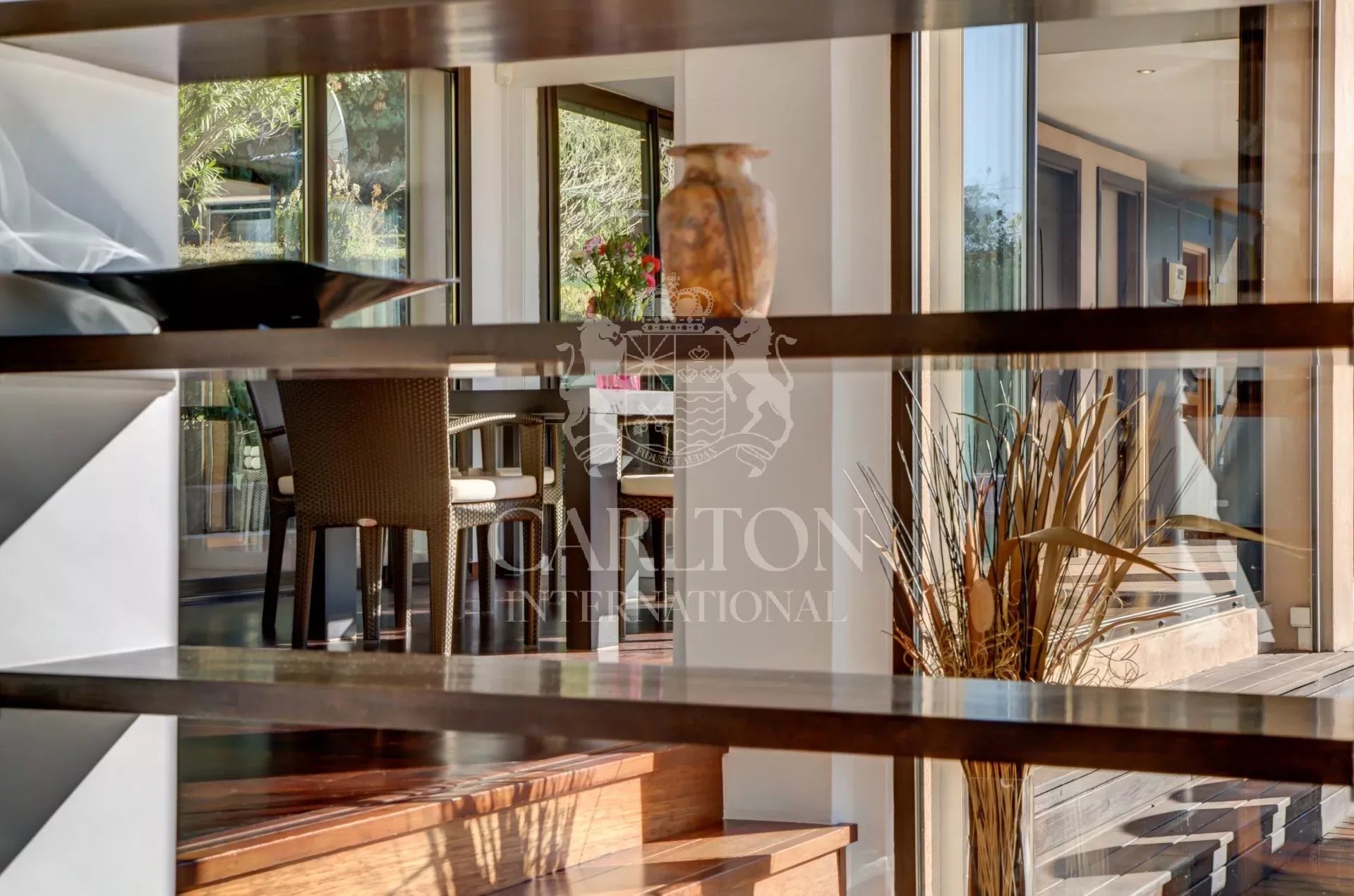 Bonita moradia moderna com cerca de 350 m² situada no bairro de Croix des Gardes, com bonitas vistas para o mar. Totalmente climatizada, esta moradia tem 4 quartos e um escritório que pode ser convertido num quarto com uma casa de banho com duche para até 10 pessoas. As salas de receção abrem-se para a piscina rodeada por um belo terraço e o jardim de 2.500m². O quarto principal de 38m² está situado no primeiro andar e tem um grande terraço privado com vista para o mar. Sala de jogos, sauna, estacionamento.
