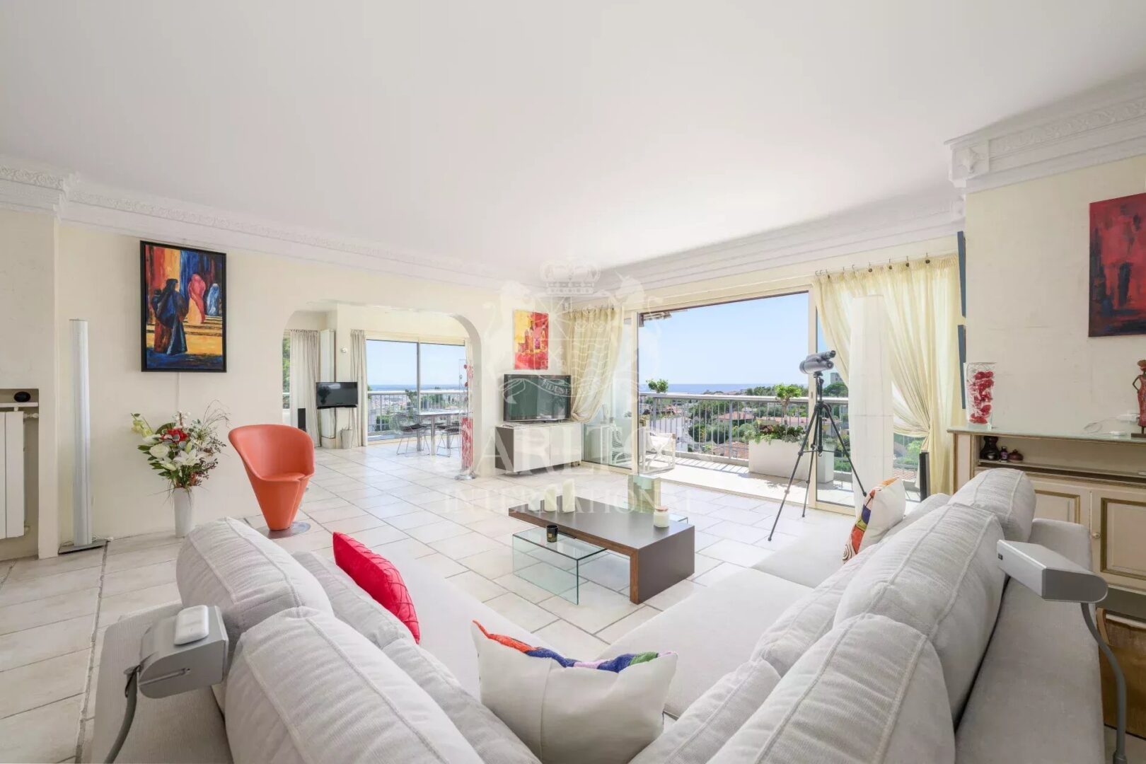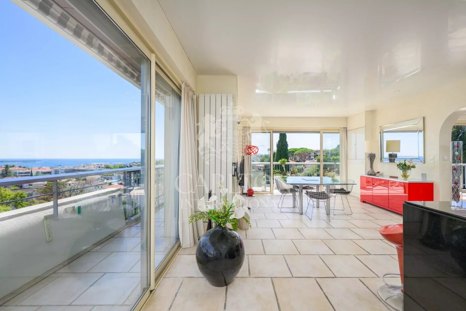 A magnificent corner apartment, crowned by a vast panoramic terrace offering breathtaking views of the Lérins islands, the Bay of Cannes and its hills.