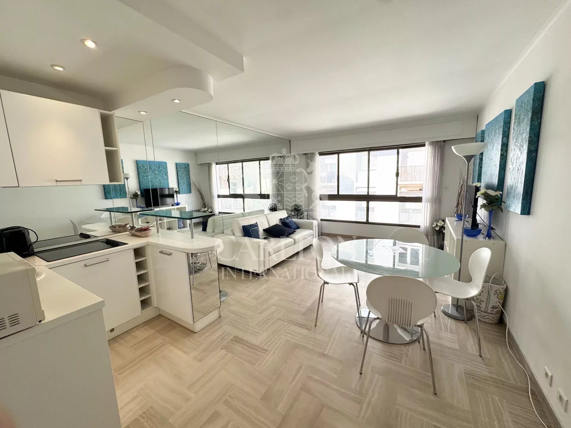 Localizado na prestigiada residência Le Gray d’Albion, idealmente situada apenas a 5 minutos a pé da Croisette e com fácil acesso a lojas e comodidades, este belo apartamento com 2 quartos, situado no 3ᵉ piso com elevador, oferece um ambiente de vida procurado mesmo no coração de Cannes.