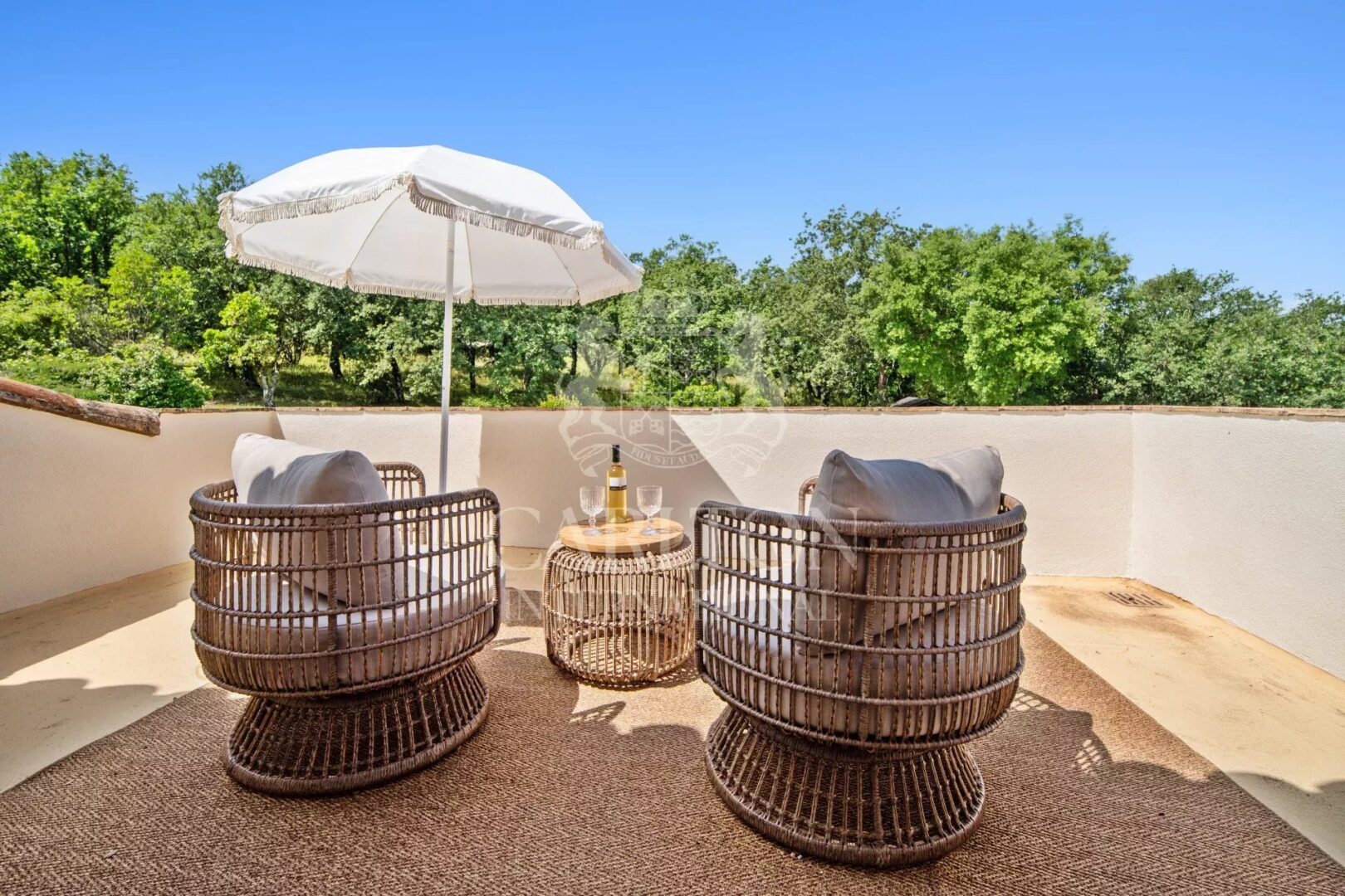 A separate guest house completes the property and includes a bright living room with a fully equipped open kitchen, a shower room with toilet, a generous mezzanine with two beds and two private terraces available to guests.