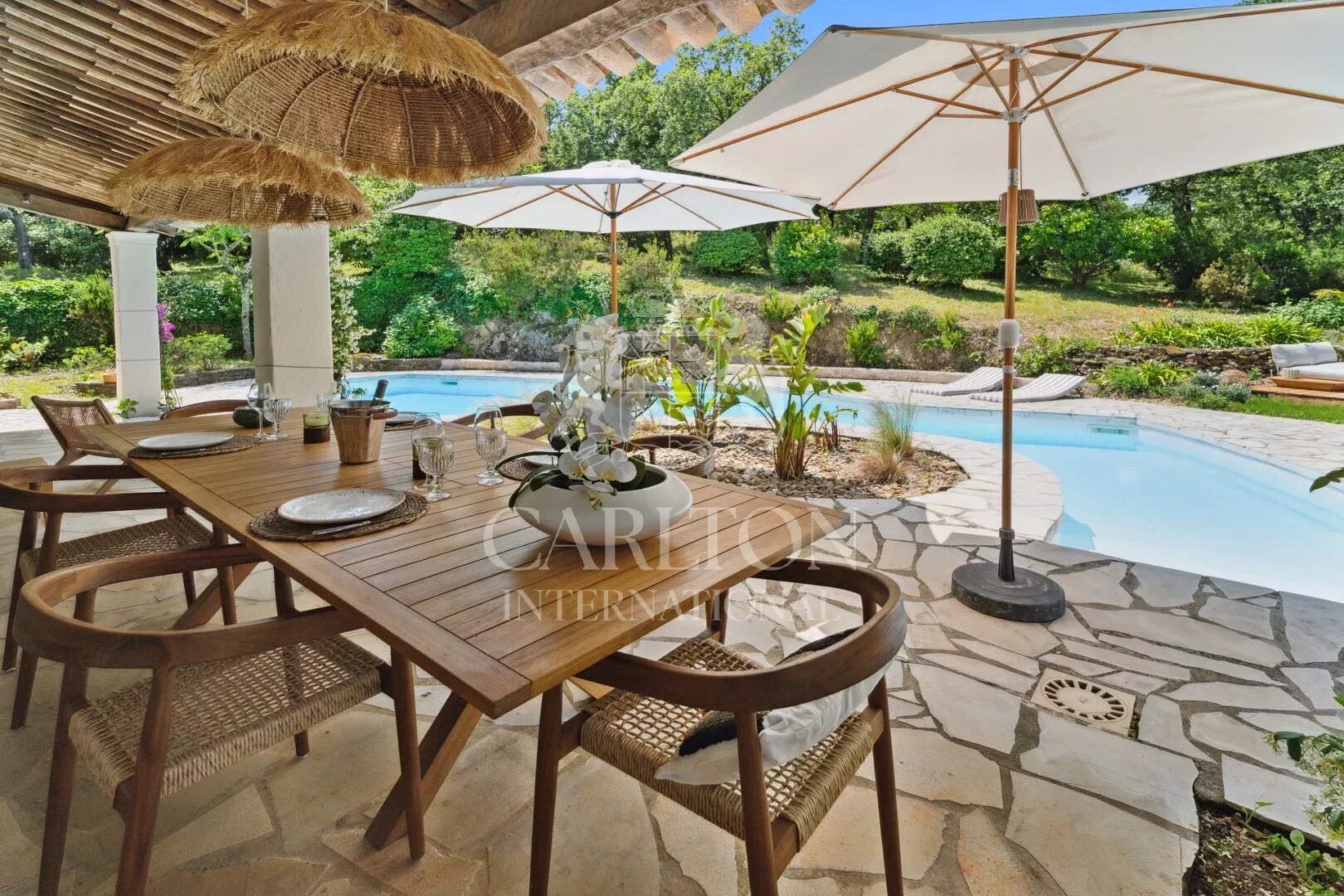 A charming neo-Provençal-style property, combining timeless elegance and serene comfort. Located just 900 meters from the heart of the village, this exceptional residence embodies a perfect harmony between Provençal character and contemporary luxury. Nestled in a landscaped garden, the property features a heatable swimming pool and an outdoor spa, ideal for relaxing. The interior has been completely renovated with great attention to detail, showcasing refined decor that enhances the peaceful and warm atmosphere.