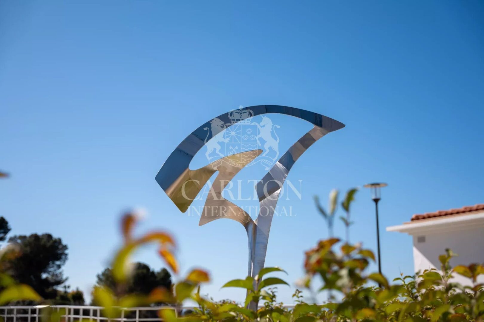 The residence also features a swimming pool elegantly integrated into a lush Mediterranean garden, enhanced green spaces and an Andalusian patio for unique moments of relaxation. The sleek, contemporary architecture blends perfectly into the natural environment of a preserved olive grove.