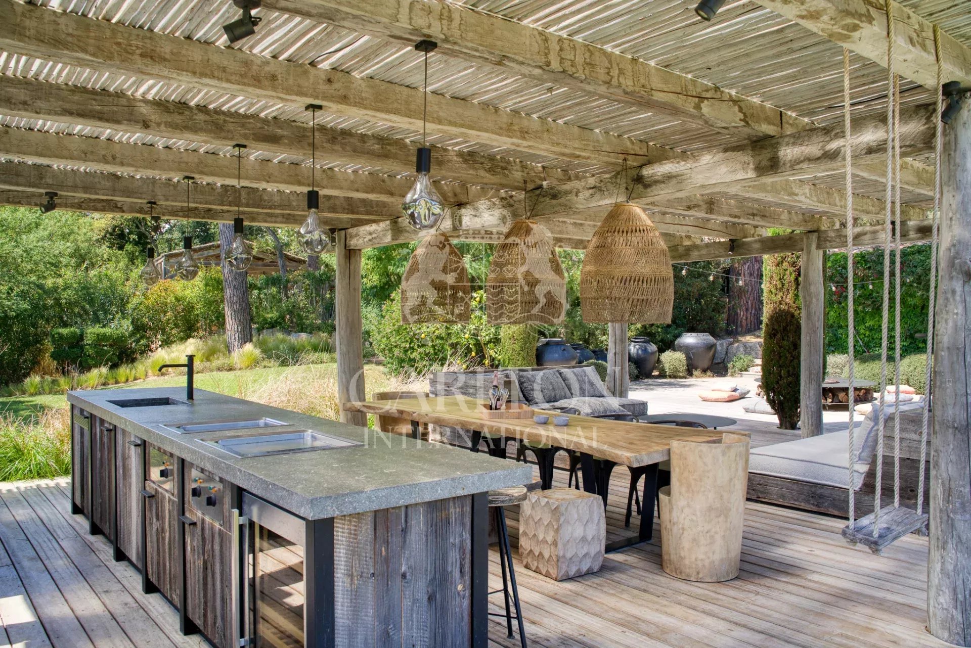 Ramatuelle – Nestled between vineyards and hills, this beautifully decorated 350 m² villa is set in 6,000 m² of landscaped grounds.