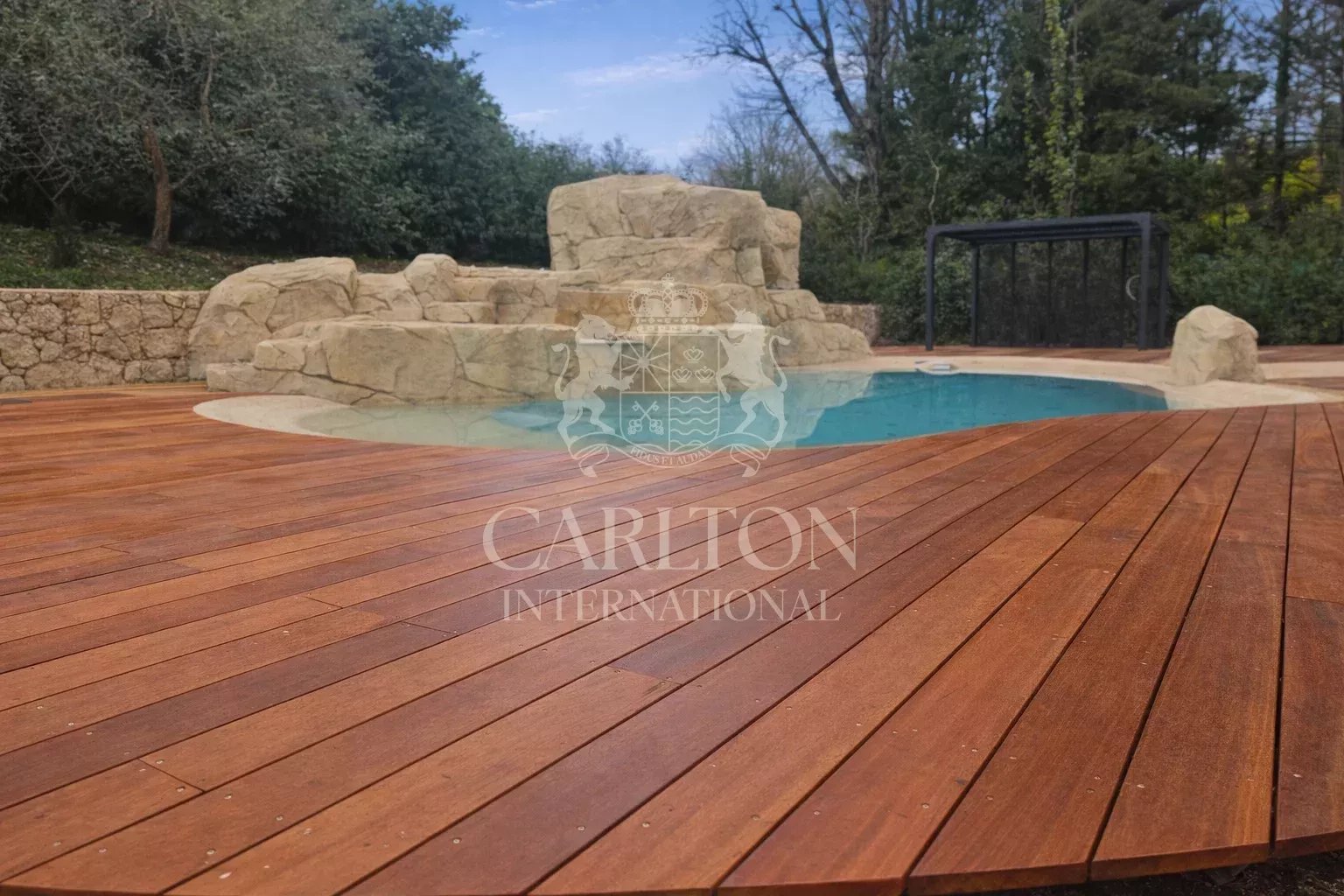 Set on 1,978 m² of flat landscaped grounds, it boasts a beautiful lagoon pool that blends harmoniously into the garden.