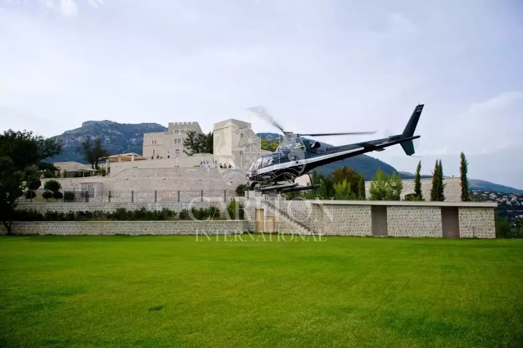 Just 15 minutes from Nice airport, this 11th-century château is an ancient fortress used to defend the south of France. The ruins of this building have been lovingly and tastefully renovated into a luxurious residence with 13 ensuite bedrooms. Built on a hill, the château offers breathtaking views over the surrounding countryside from the snow-capped Alps to the Mediterranean Sea. The 3-hectare estate includes a heliport, and the Château is surrounded by numerous terraces and terraced gardens leading to a beautiful relaxation area featuring a heated infinity pool (18m x 9m) with pool house, Jacuzzi, sauna and hammam. The château, served by an elevator, has been tastefully decorated and comfortably furnished. An on-site janitor lives in a separate house. The château is an ideal venue for private stays, weddings, conferences or retreats.