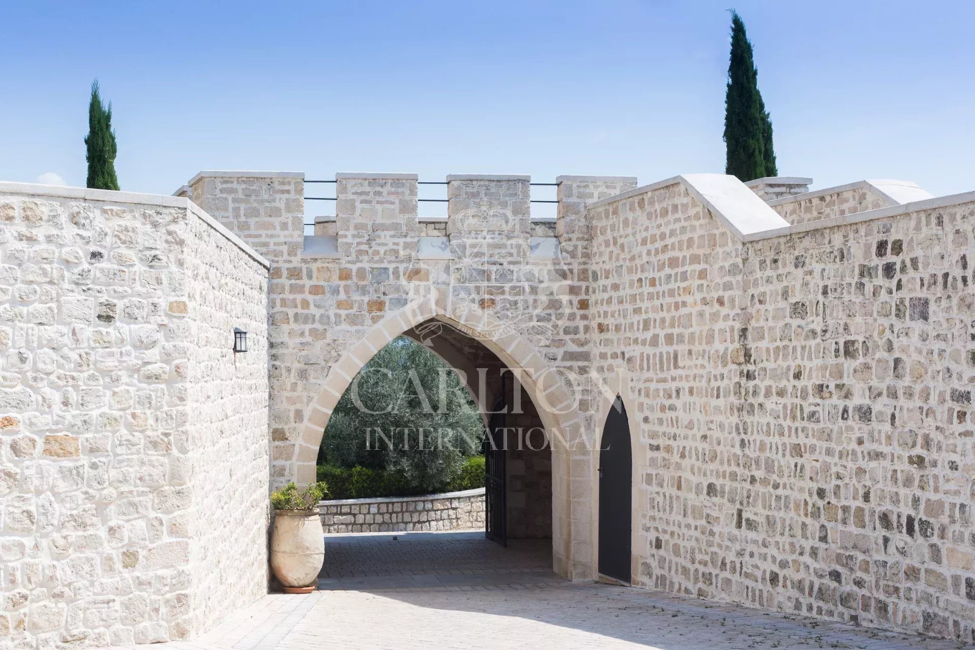 It includes a living room, dining room, 2 independent fully-equipped kitchens, 12 ensuite bedrooms each with extra-wide beds and shower rooms equipped with bidets, double basins and large showers, 8 of which also have a bathtub. Vast garage and solarium on the roof.