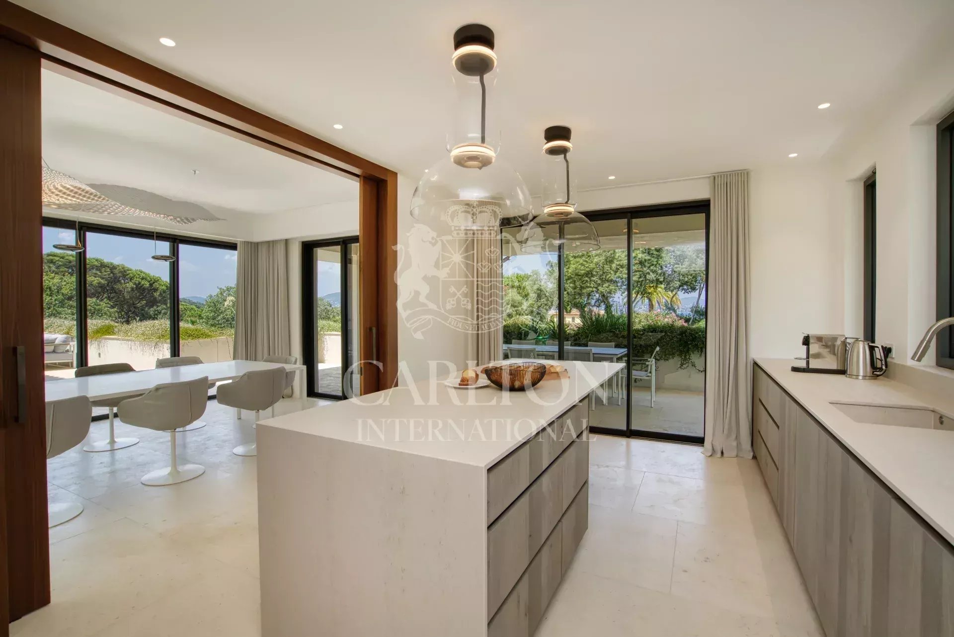 Saint-Tropez – Enter this haven of peace where luxury meets nature. This new contemporary villa has five bedrooms, including a sumptuous master suite. The kitchen and dining room open on to a vast living room bathed in light. Out of sight, the heated swimming pool promises moments of peace and serenity.