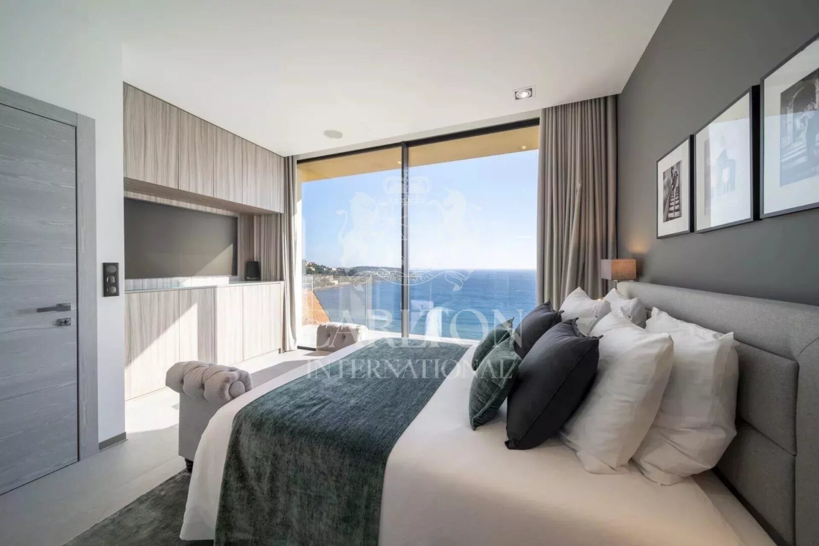 This rare property enjoys one of the most breathtaking sea views on the entire French Riviera. Ideally located just minutes from the beaches of Golfe Bleu and Monaco, this contemporary villa with high-end amenities offers a unique lifestyle, combining luxury, privacy, and comfort.